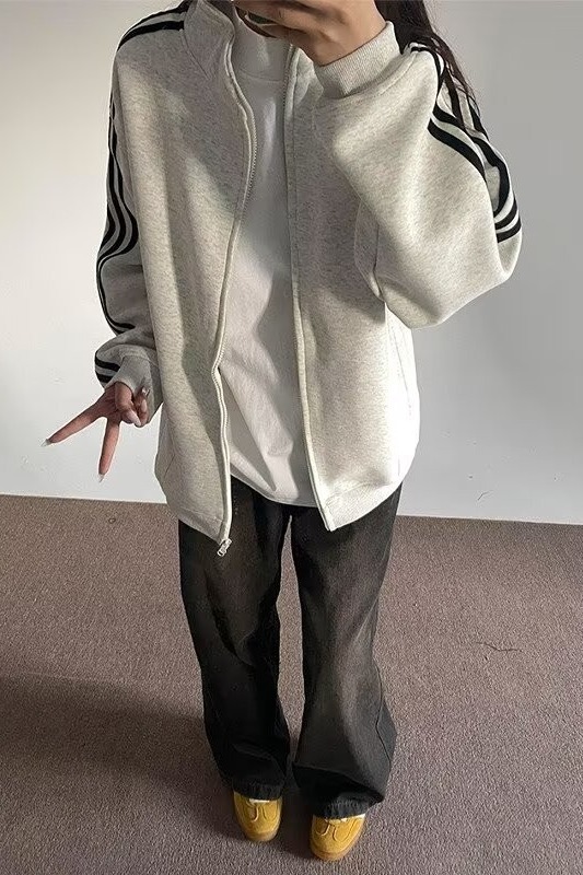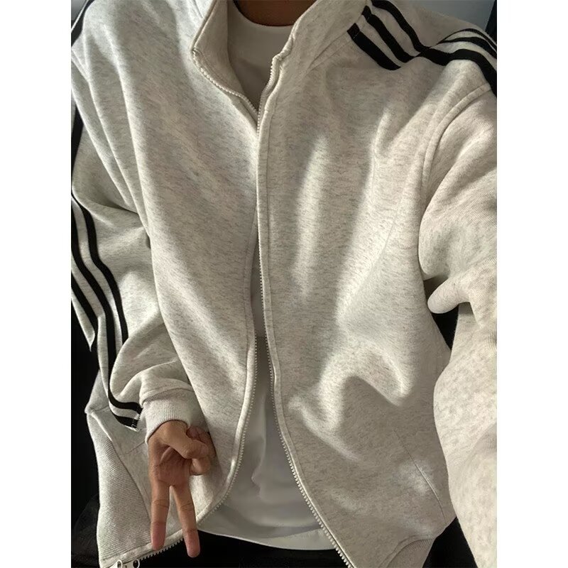 미국식 레트로 3 바 카디건 스웨터 2025 가을 패션 브랜드 Ins 느슨한 더블 헤드 지퍼 캐주얼 재킷 남성용