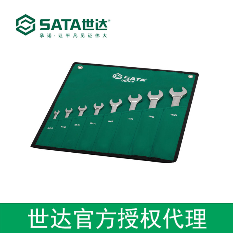 Shida 공인 sata 도구 8 조각 완전히 닦은 더블 오픈 엔드 렌치 세트 08009