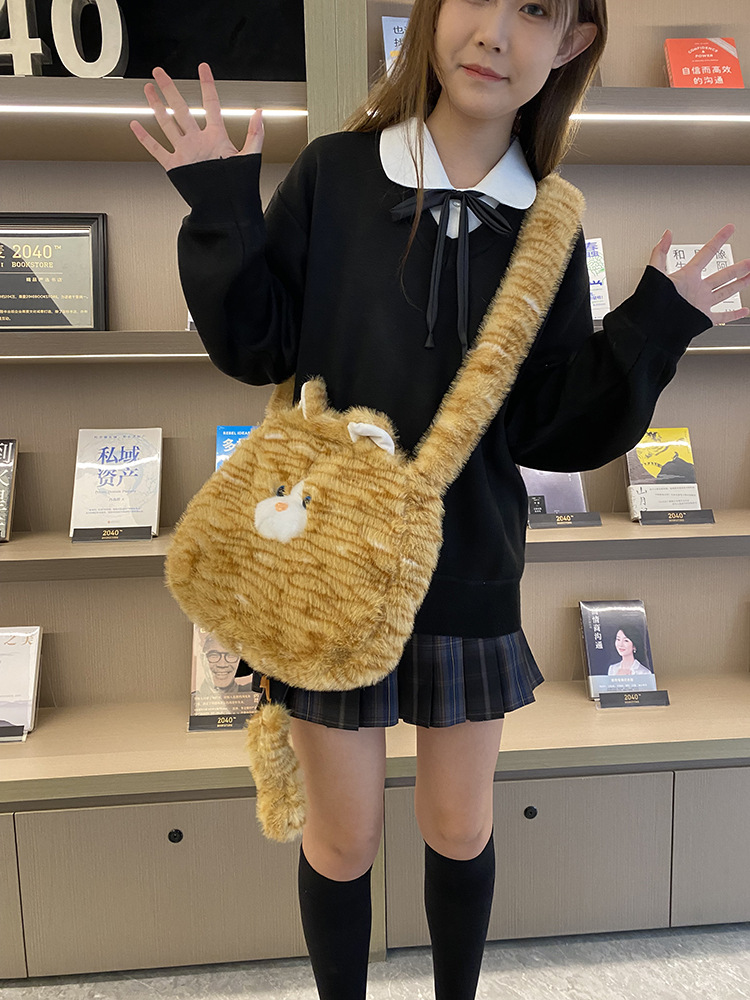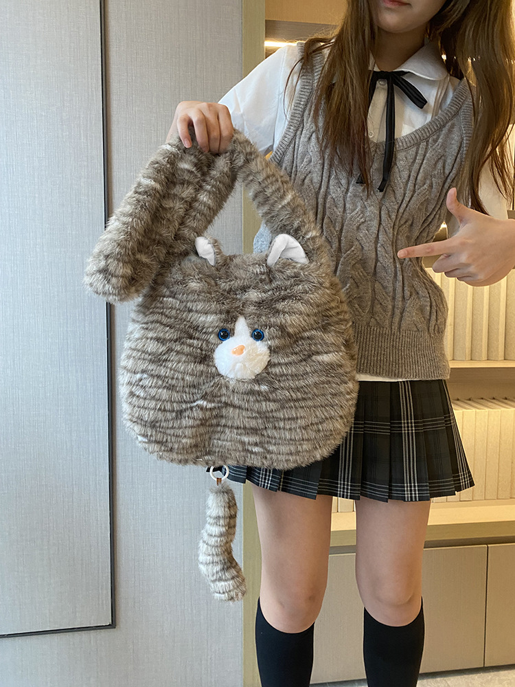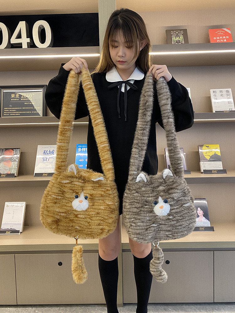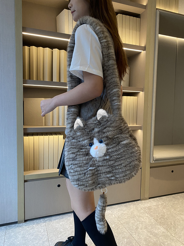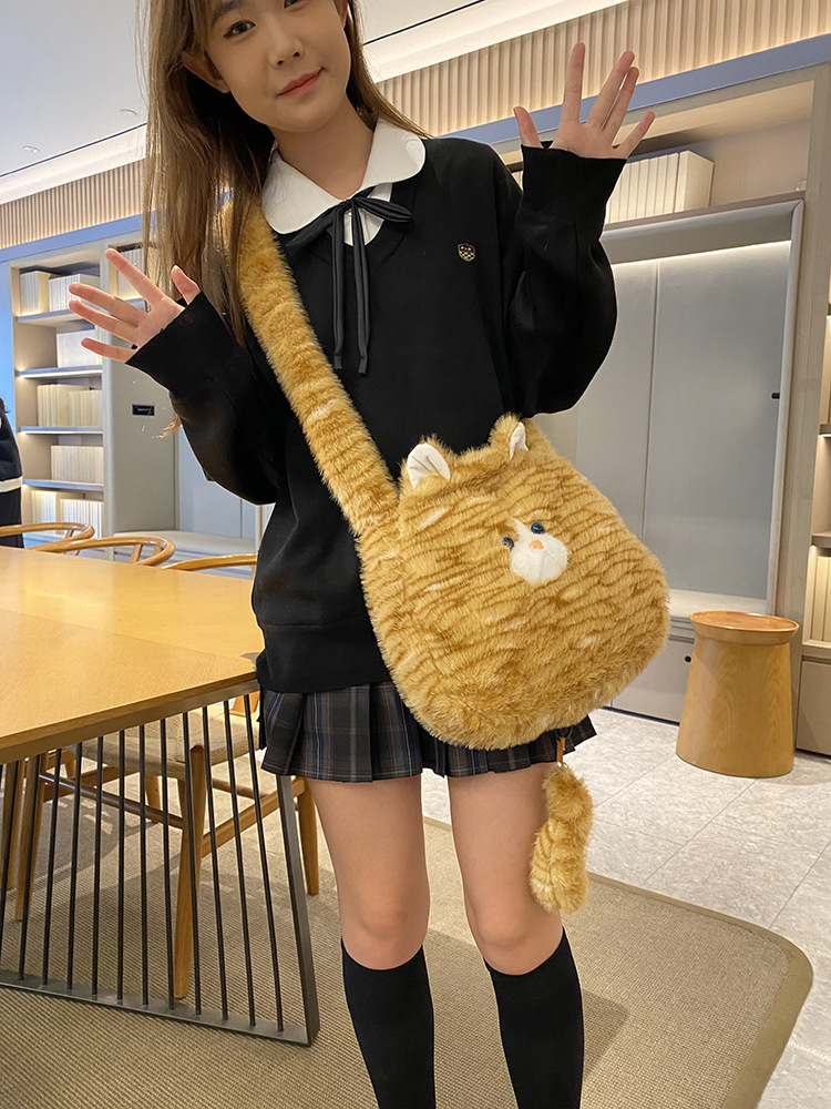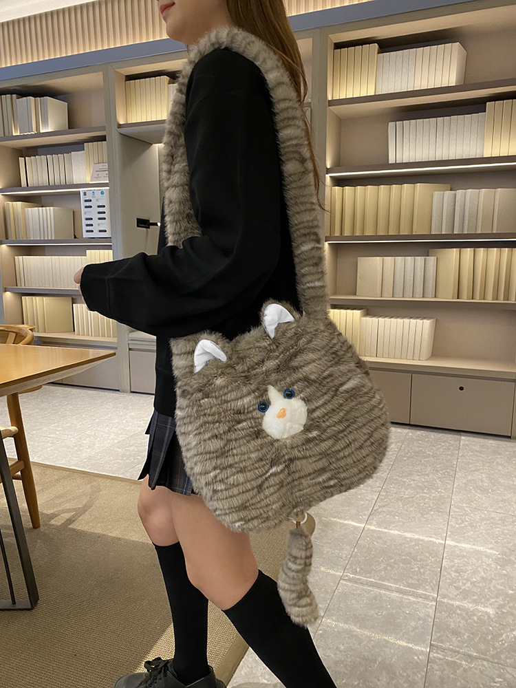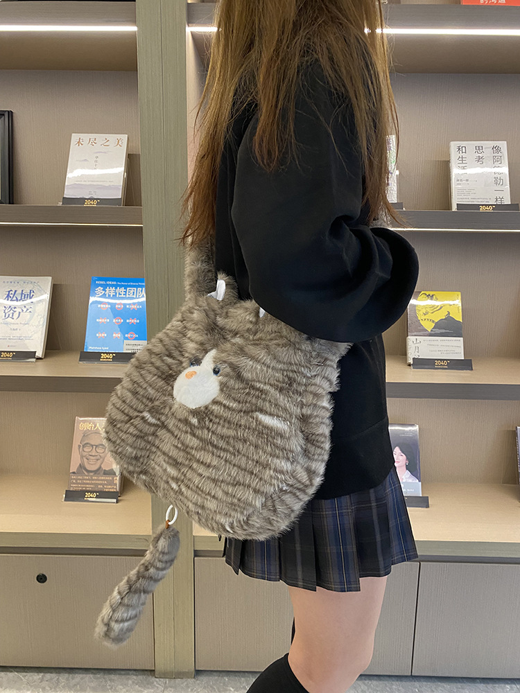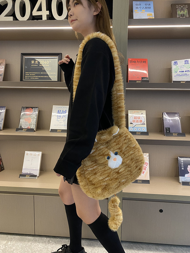 귀여운 봉제 키티 메신저 가방 소녀의 새로운 여성 Instagram 스타일 소녀의 부드러운 귀여운 모피 대용량 어깨 가방스토어 가기