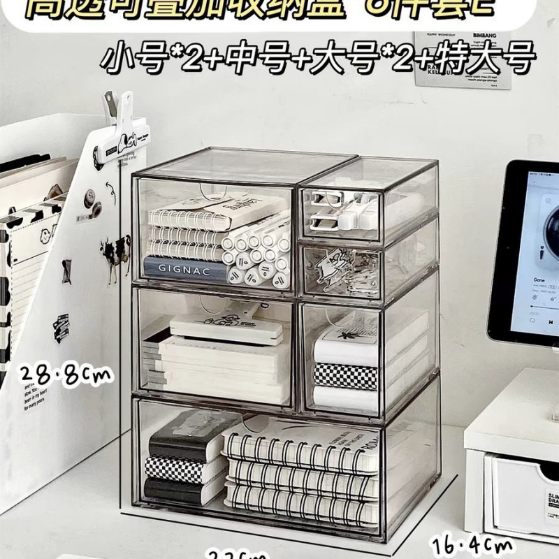 데스크탑 저장 상자 서랍 유형 아크릴 투명 다층 문구 주최자 사무실 책상 랙 기숙사스토어 가기
