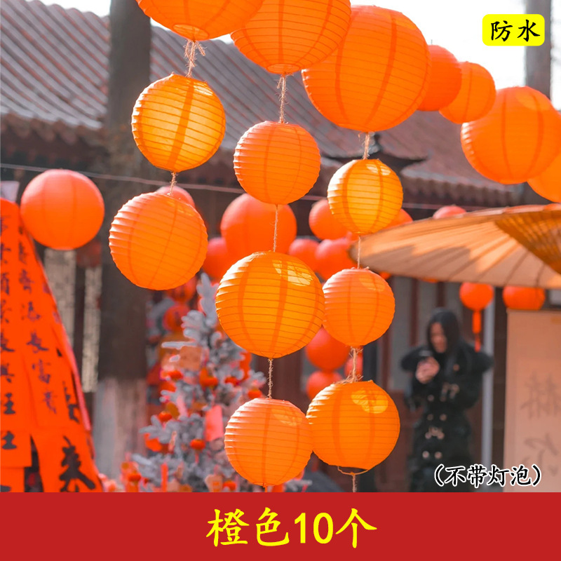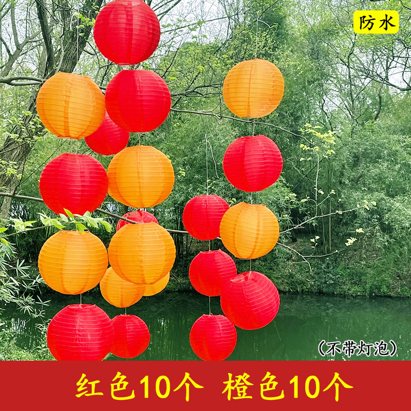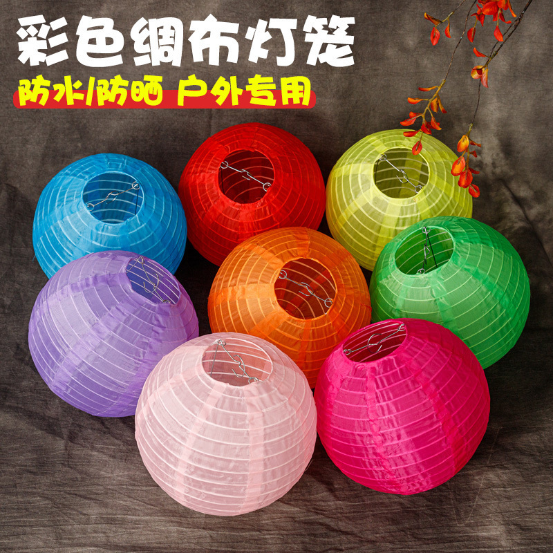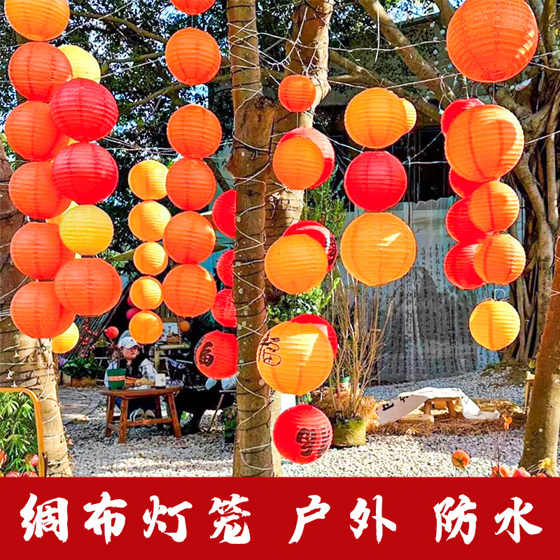 새해 야외 다채로운 라운드 새틴 랜턴 코트야드 거리 방수 실크 랜턴 장식 교수형 고대 스타일 랜턴