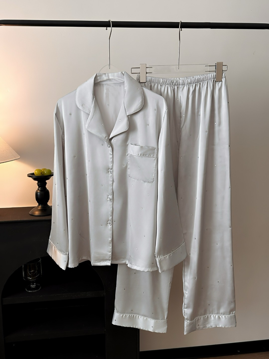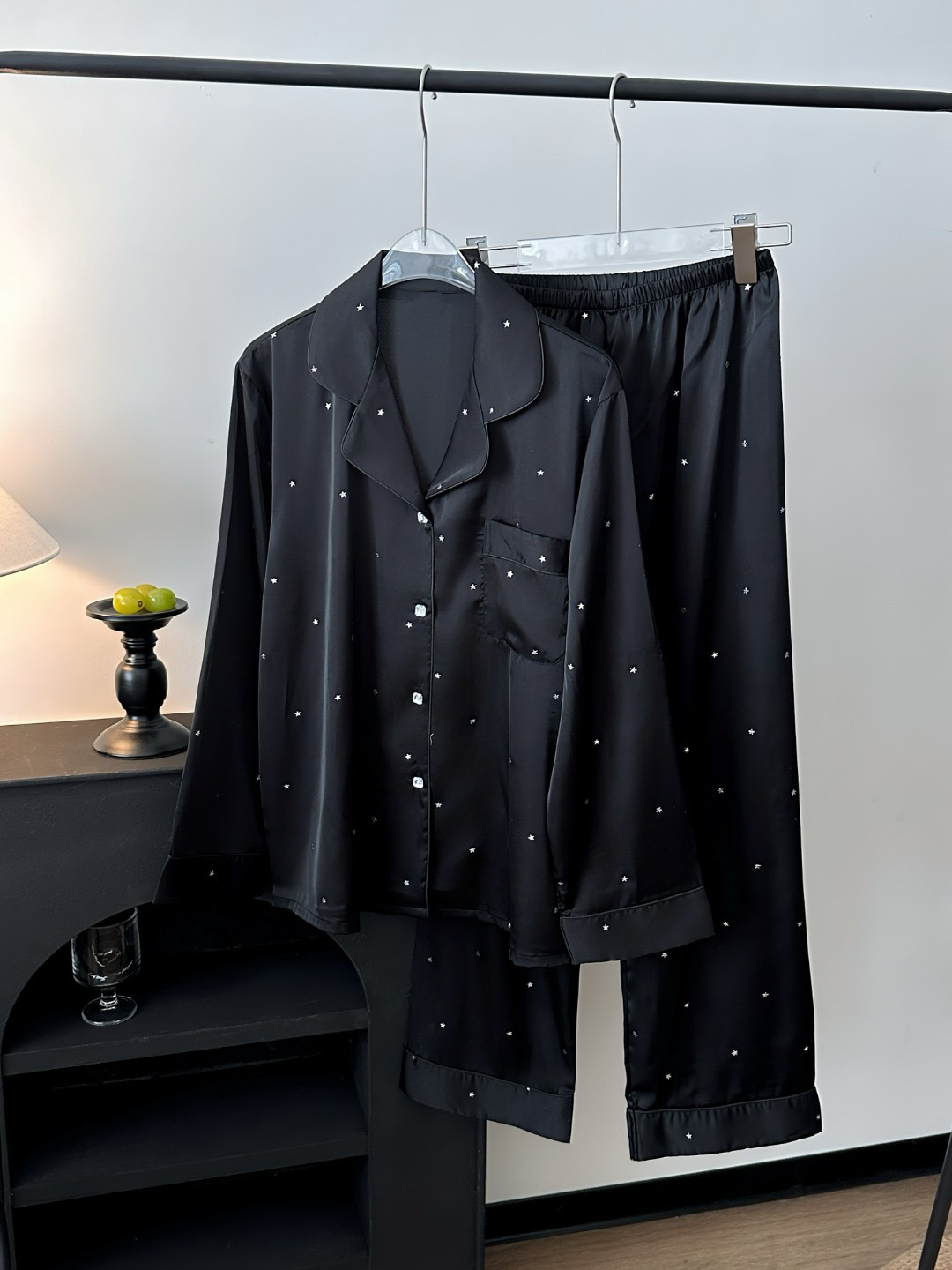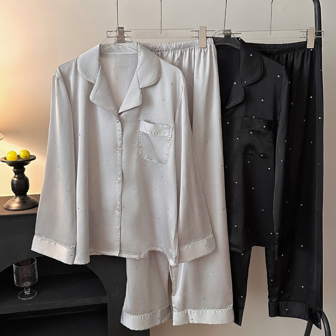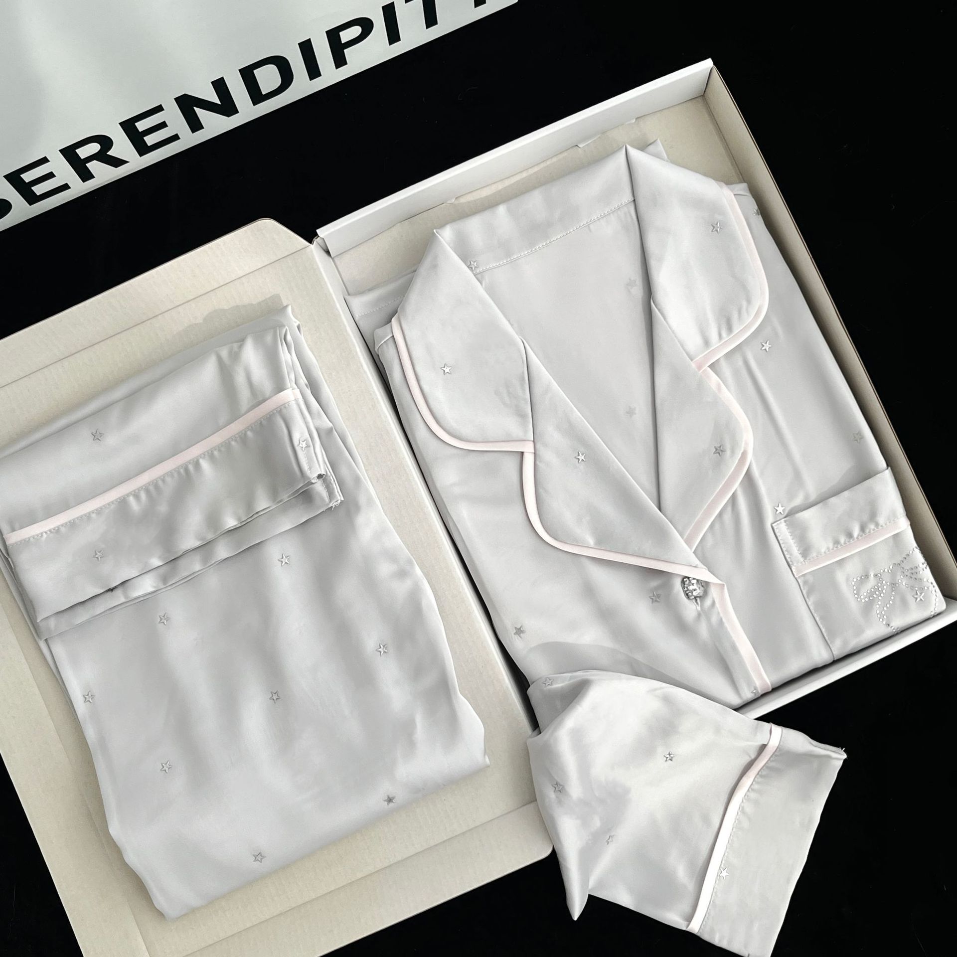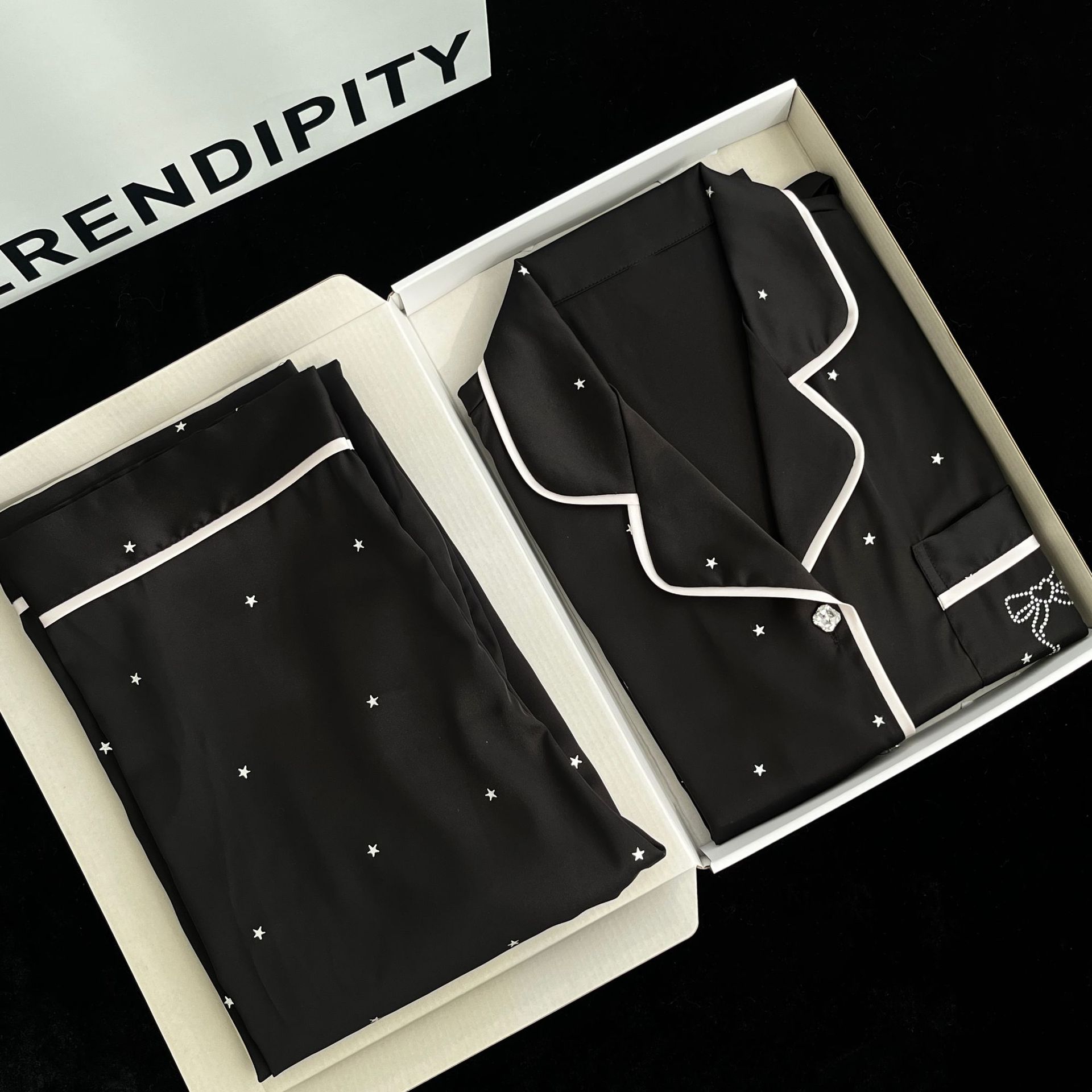 [드렁큰 싱헤] 2025 년 봄 · 여름 새 아이스 실크 파자마 여성 하이 엔드 인스타그램 스타일 스타 프린트 홈 옷스토어 가기