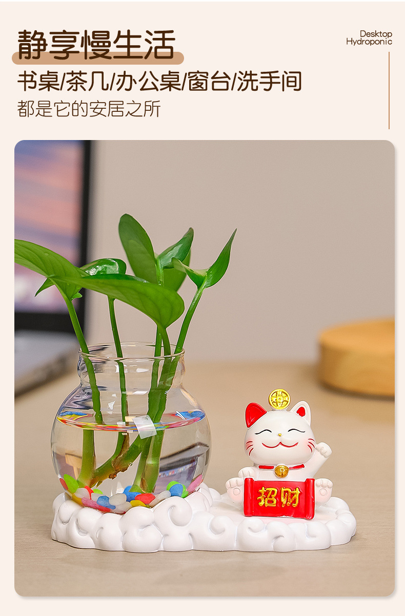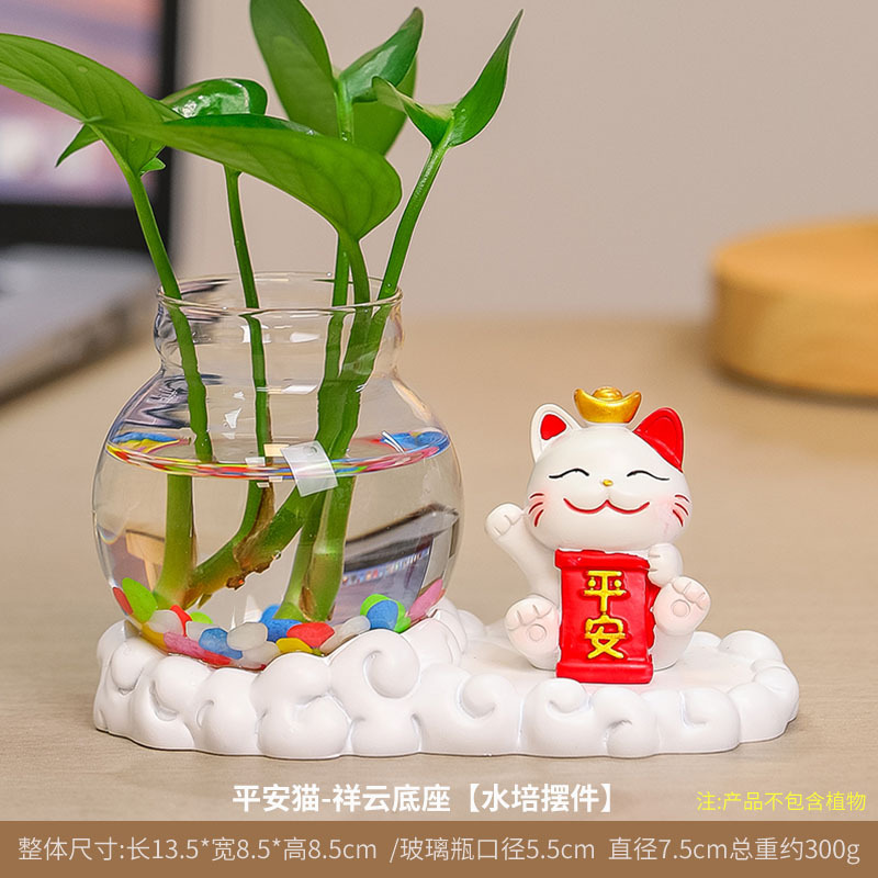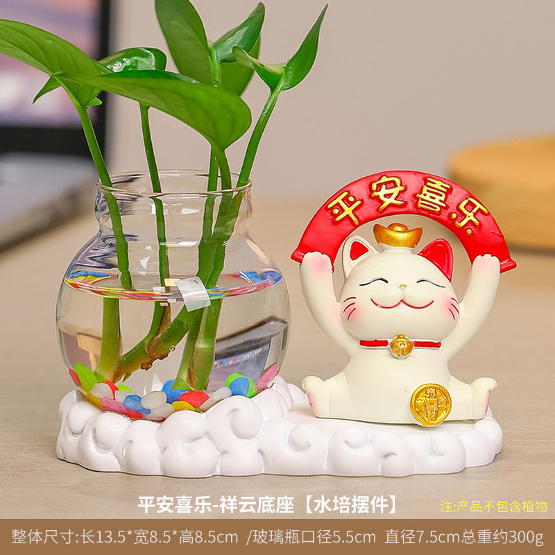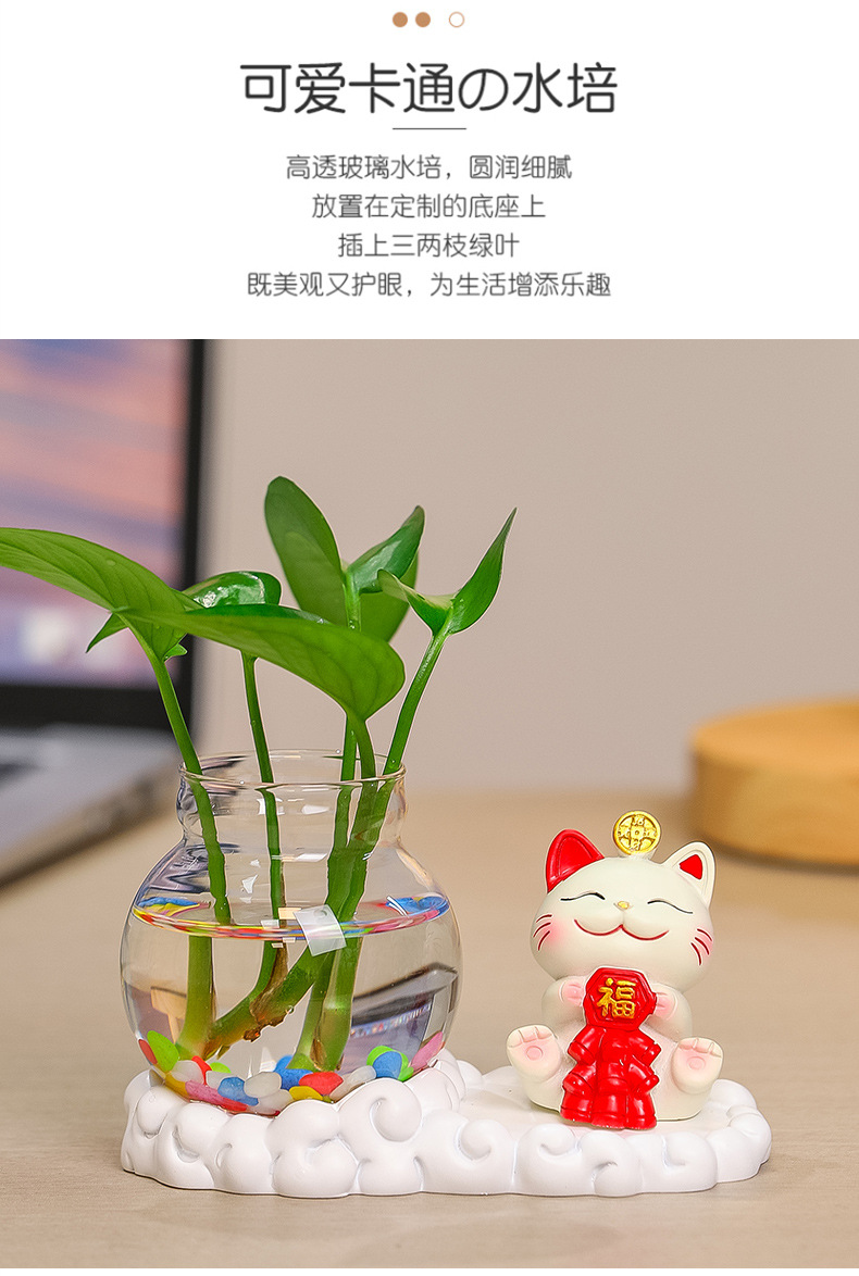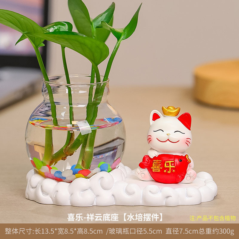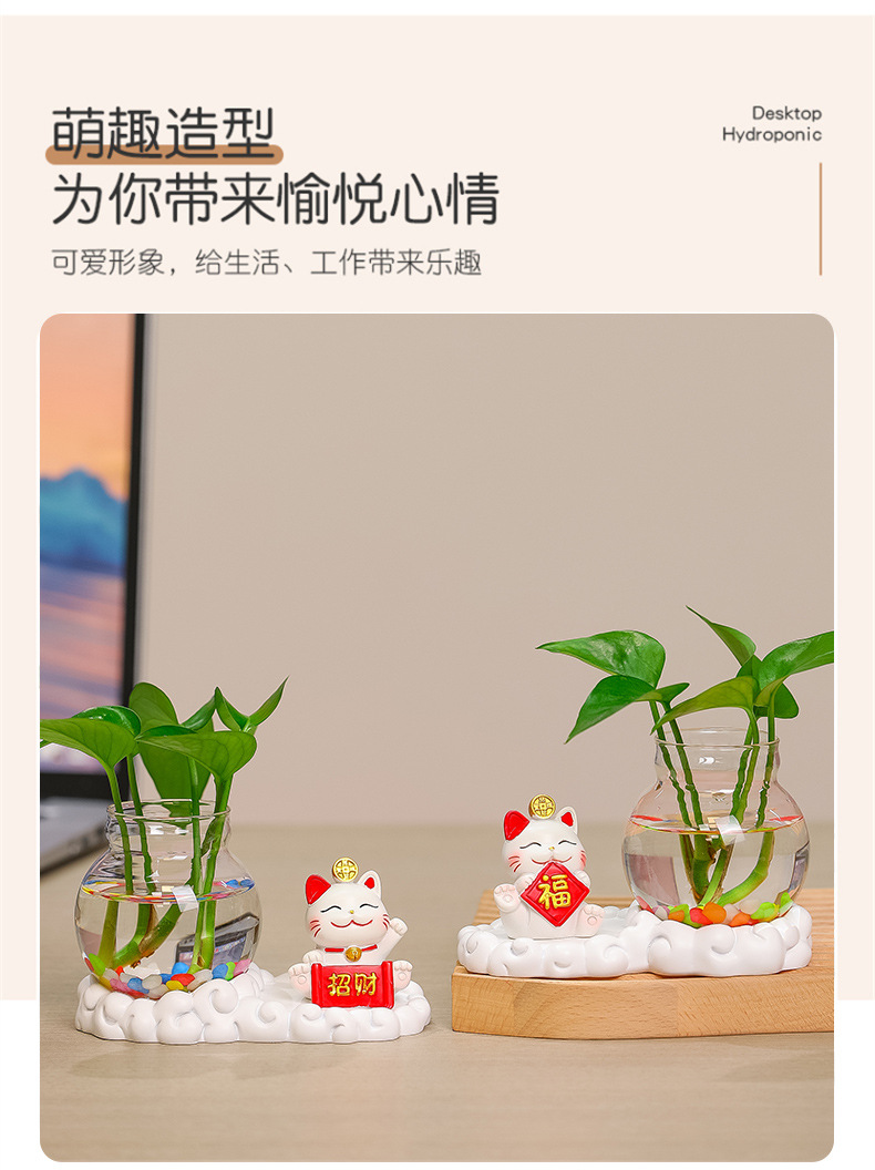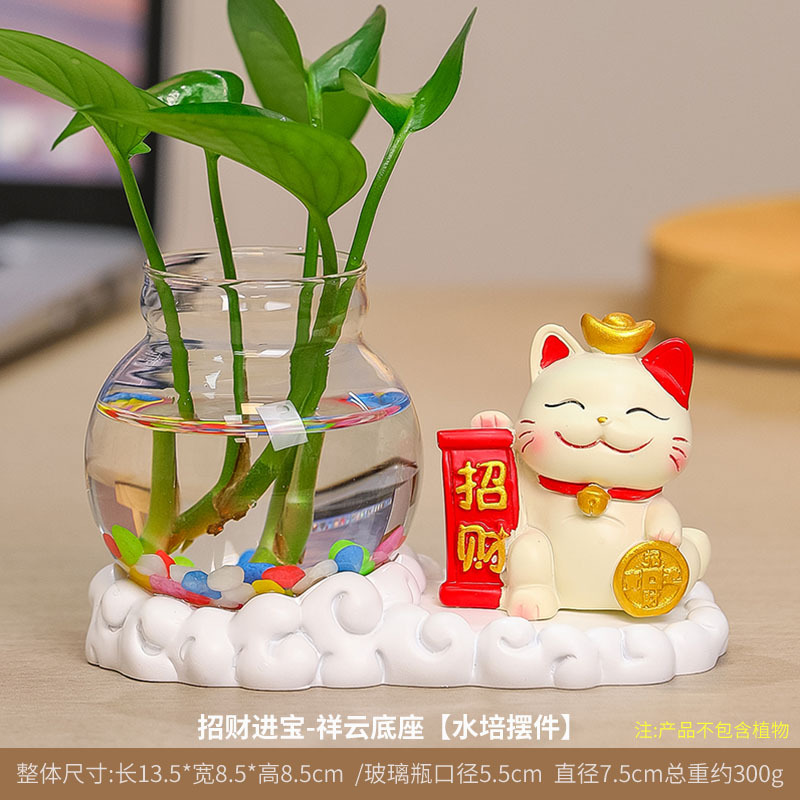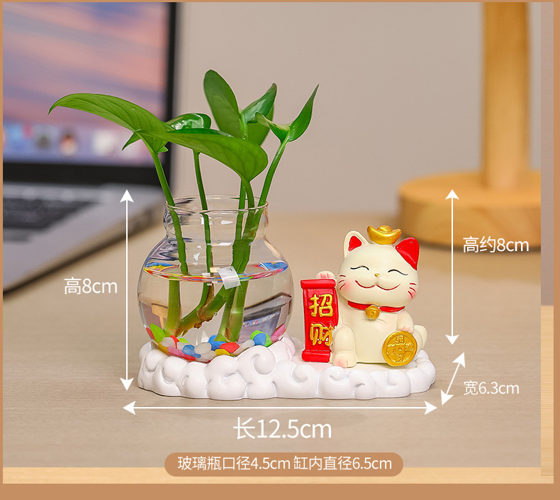 행운의 고양이 수경 창조적 인 선물 사무실 물 녹색 꽃 꽃병 귀여운 새로운 중국 차 테이블 꽃 정렬 장식스토어 가기