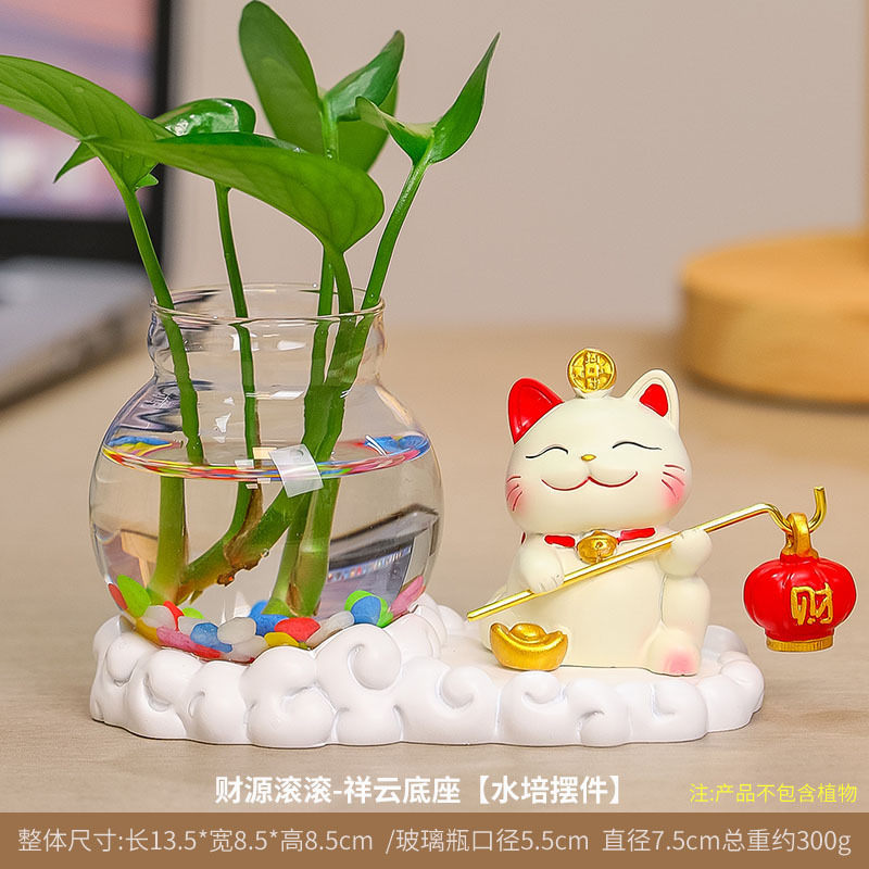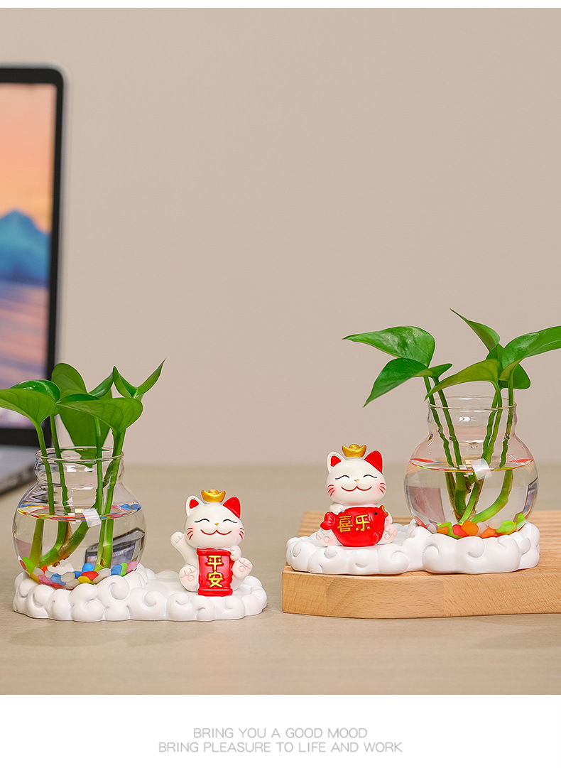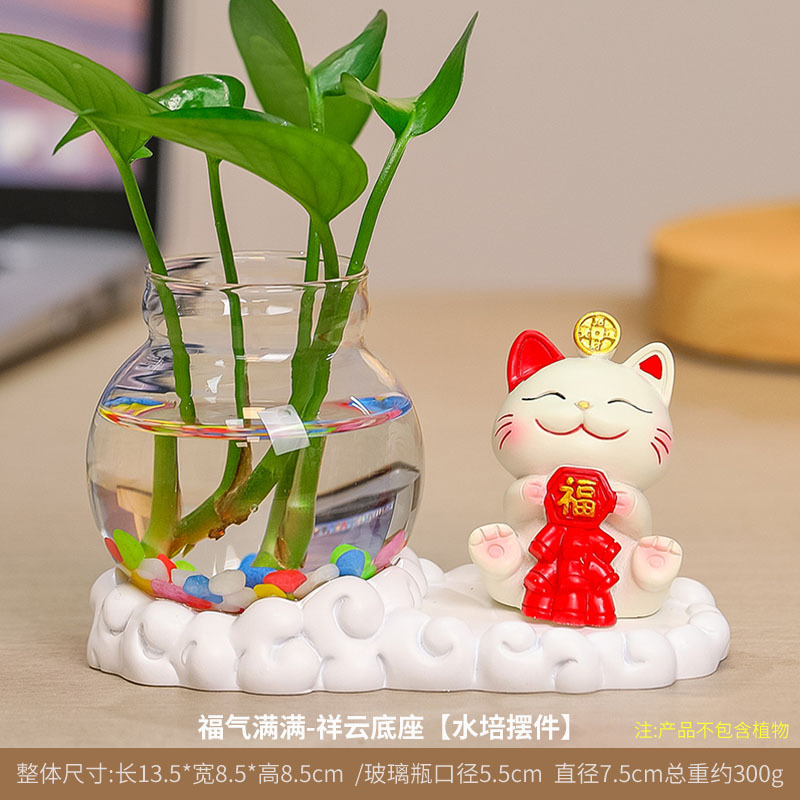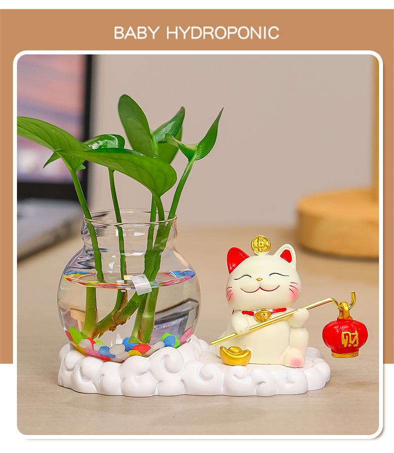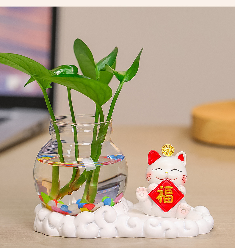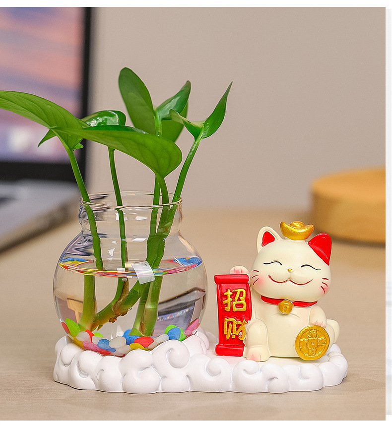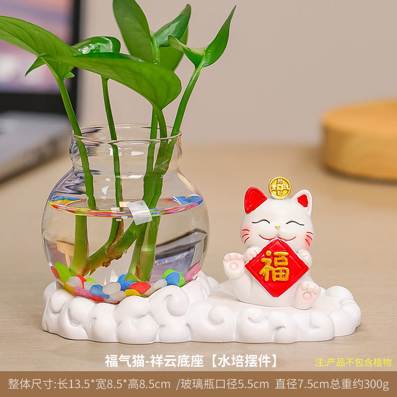 행운의 고양이 수경 창조적 인 선물 사무실 물 녹색 꽃 꽃병 귀여운 새로운 중국 차 테이블 꽃 정렬 장식