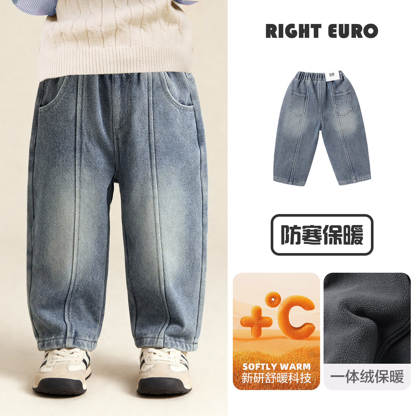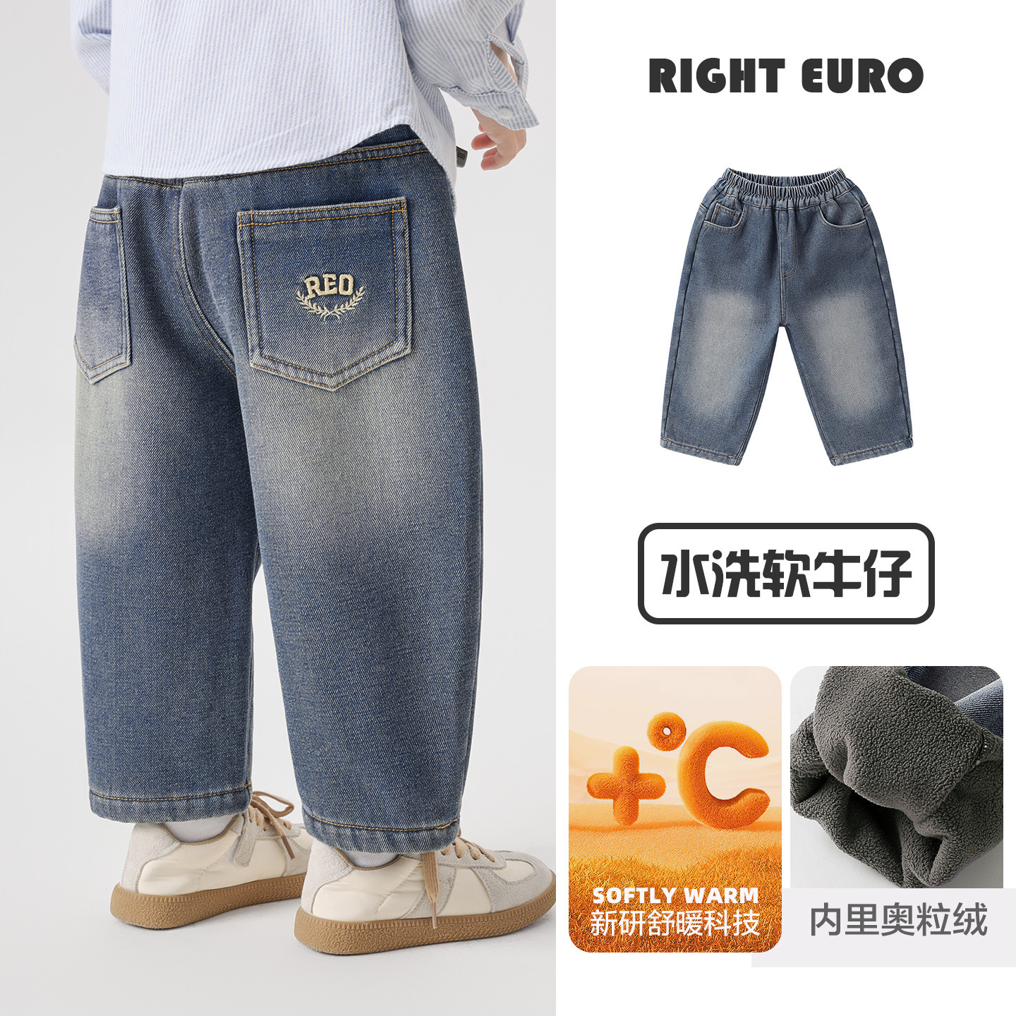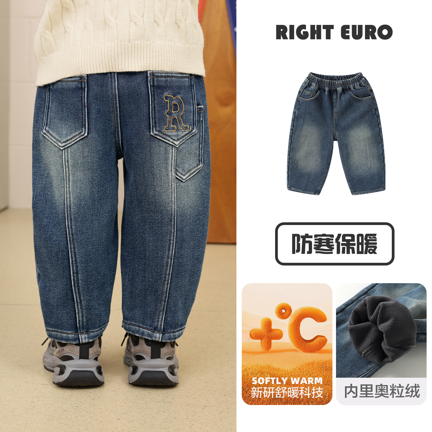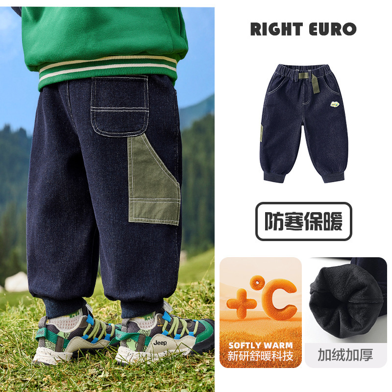 유럽풍 남아용 데님 팬츠 가을 겨울 기모 바지 2025 신상 아동복 유아 남아 가을 겨울 트렌드