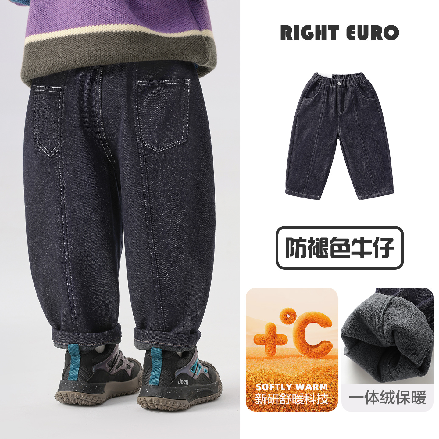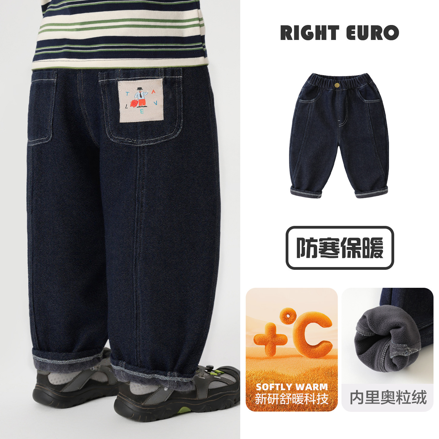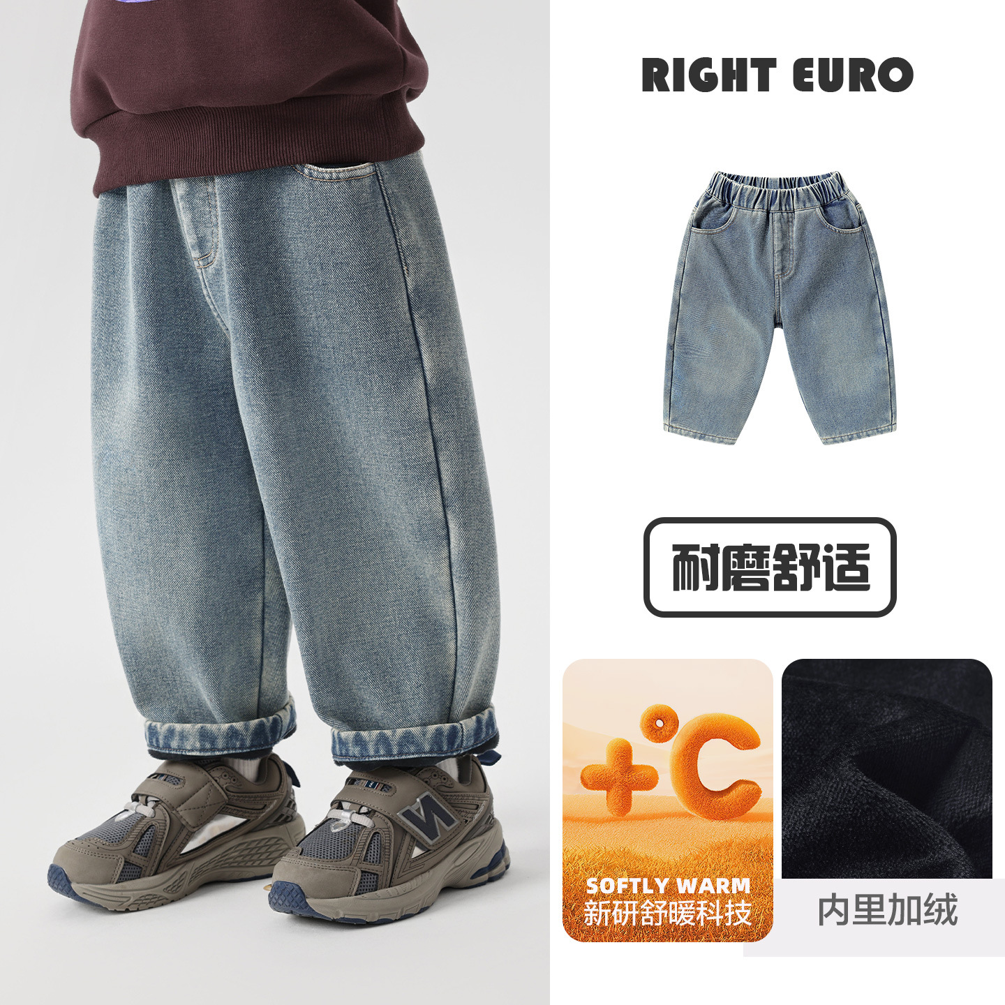 유럽풍 남아용 데님 팬츠 가을 겨울 기모 바지 2025 신상 아동복 유아 남아 가을 겨울 트렌드