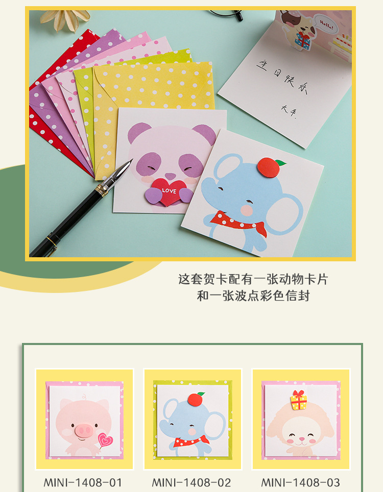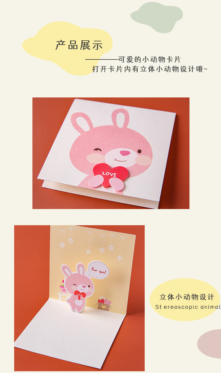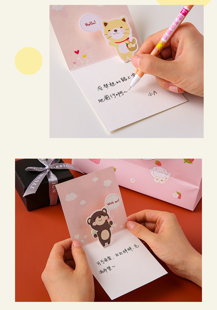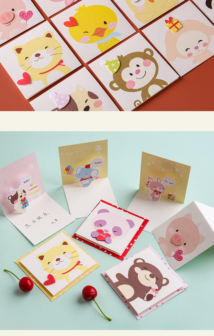 창조적 인 만화 3D 스테레오 생일 인사말 카드 봉투 유치원 어린이 축복 메시지 선물 필기 작은 카드