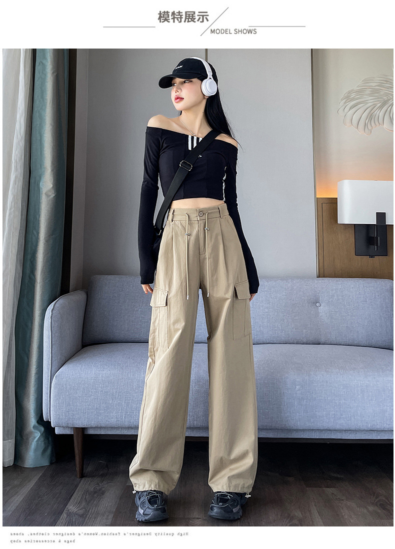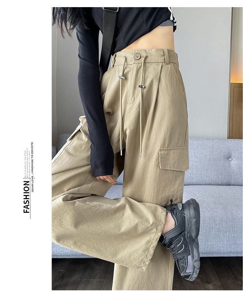 여성을위한 도매 미국 작업복 가을 새로운 복고풍 높은 허리 넓은 다리 drawstring 몸집이 작은 발 등반 스포츠 바지스토어 가기