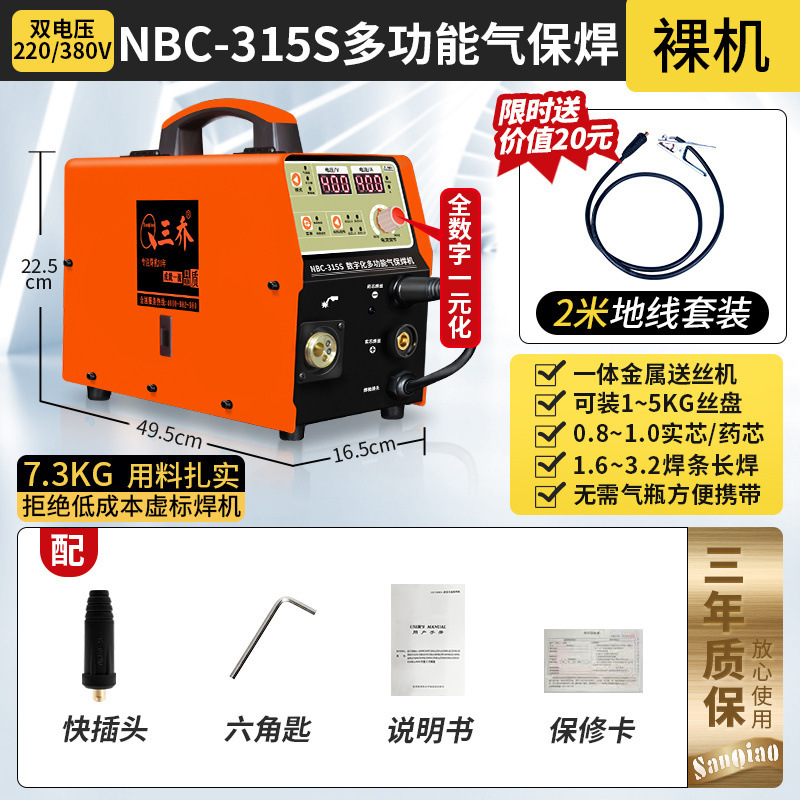Sanqiao 가스가없는 2 보호 용접 기계 315s 이중 전압 통합 작은 전기 용접 기계 가정용 이산화탄소 가스 4 사용