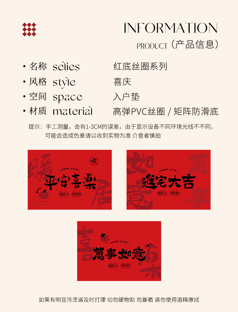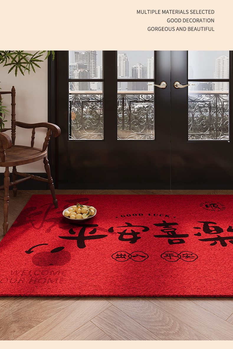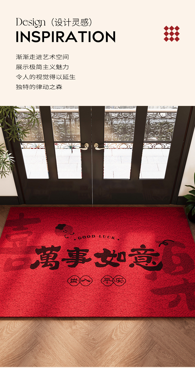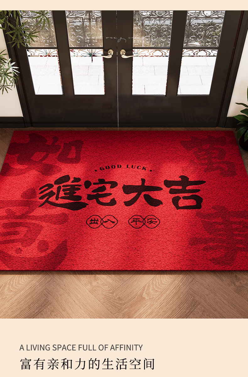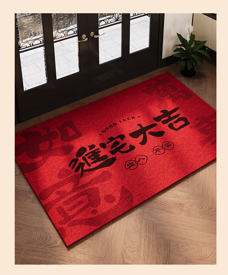 2025 년 새해 입구 문 매트 레드 실크 서클 입구 문 매트 입구 입구 홈 축제 먼지 제거 카펫스토어 가기