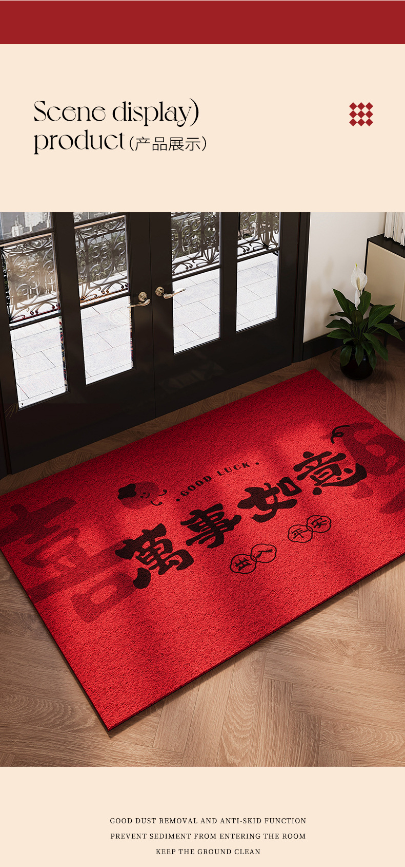 • S 빨간색 바닥 실크 서클 - 모든 일이 잘 될 것입니다 - 집에 들어오면 행운을 니다