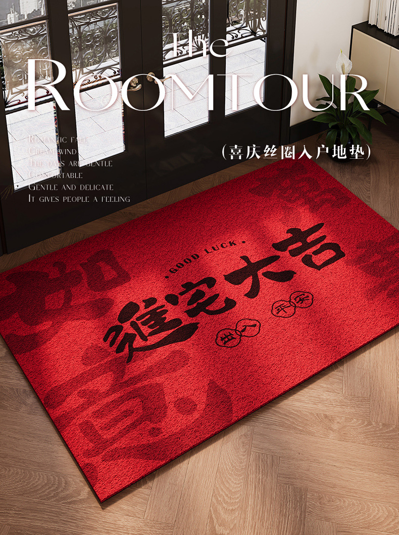 2025 년 새해 입구 문 매트 레드 실크 서클 입구 문 매트 입구 입구 홈 축제 먼지 제거 카펫