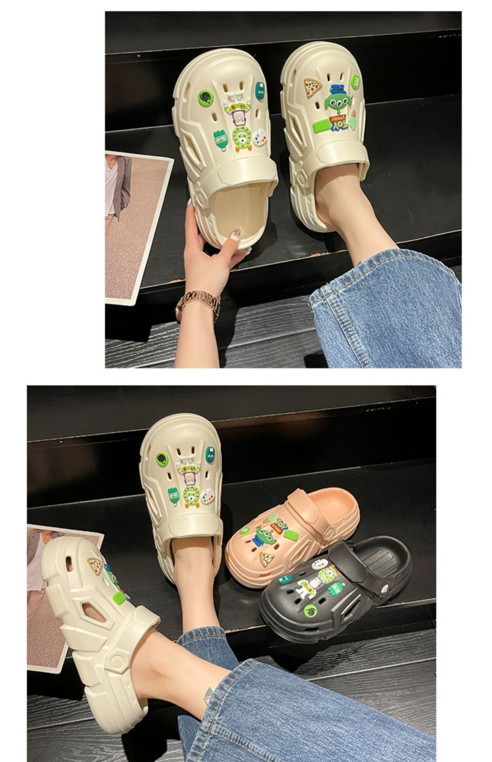 2025년 여름 여성용 핫템 통굽 슬리퍼, 두꺼운 밑창으로 걷는 느낌이 좋은 야외/해변용 커플 스타일 앞코가 막힌 슬리퍼 도매스토어 가기