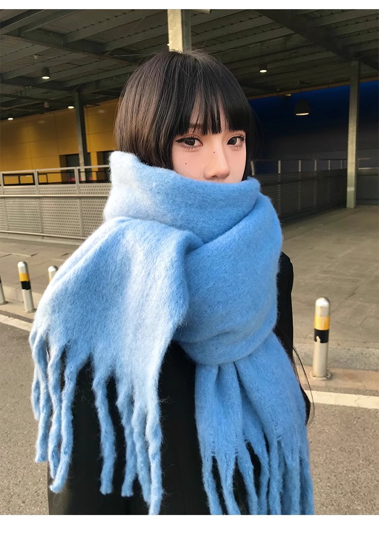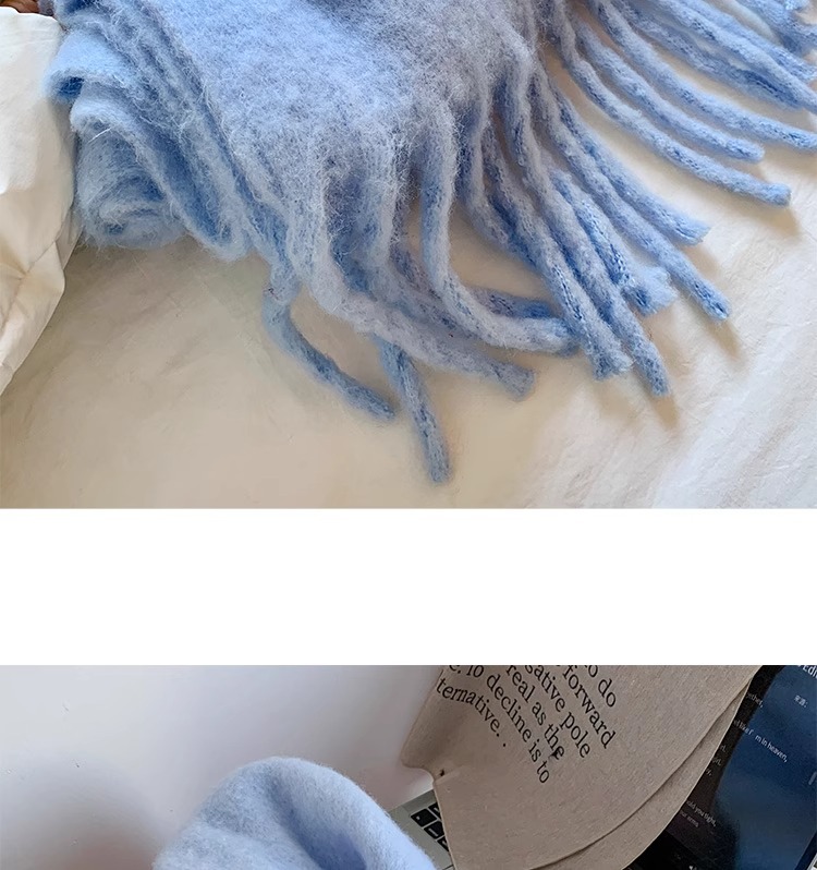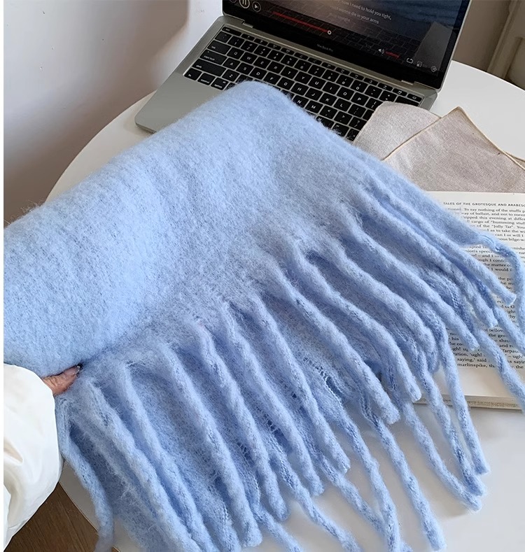 클라인 블루 니트 스카프 여자 겨울 하이 엔드 두껍고 따뜻하고 차가운 모헤어 올 매치 스카프 목도리스토어 가기
