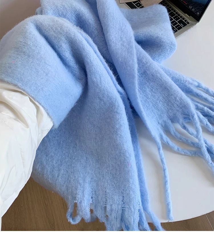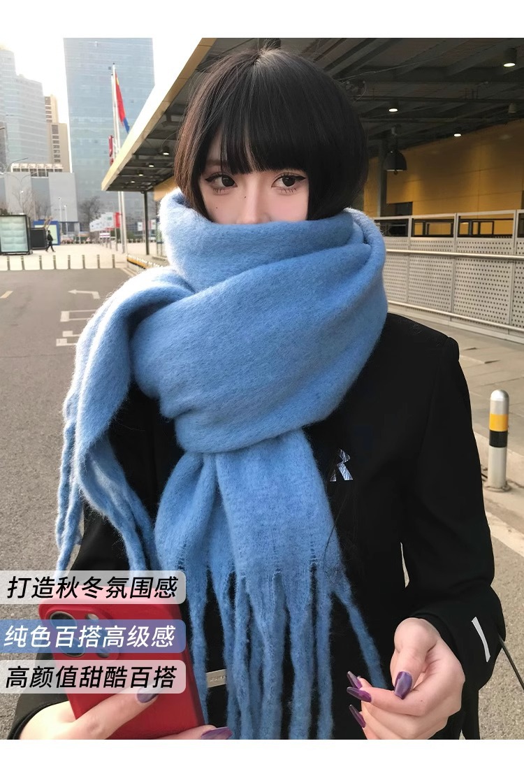 클라인 블루 니트 스카프 여자 겨울 하이 엔드 두껍고 따뜻하고 차가운 모헤어 올 매치 스카프 목도리