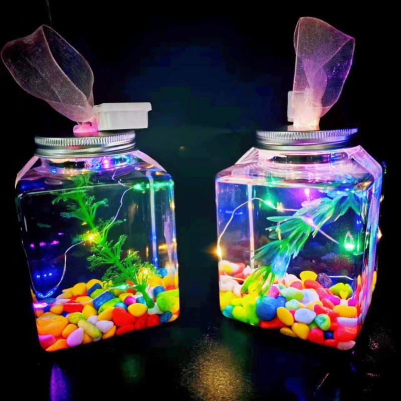그물 붉은 빛나는 금붕어 병 어린이 마구간 거북이 항아리 휴대용 투명 플라스틱 작은 물고기 병 항아리 생선 야외 도매스토어 가기