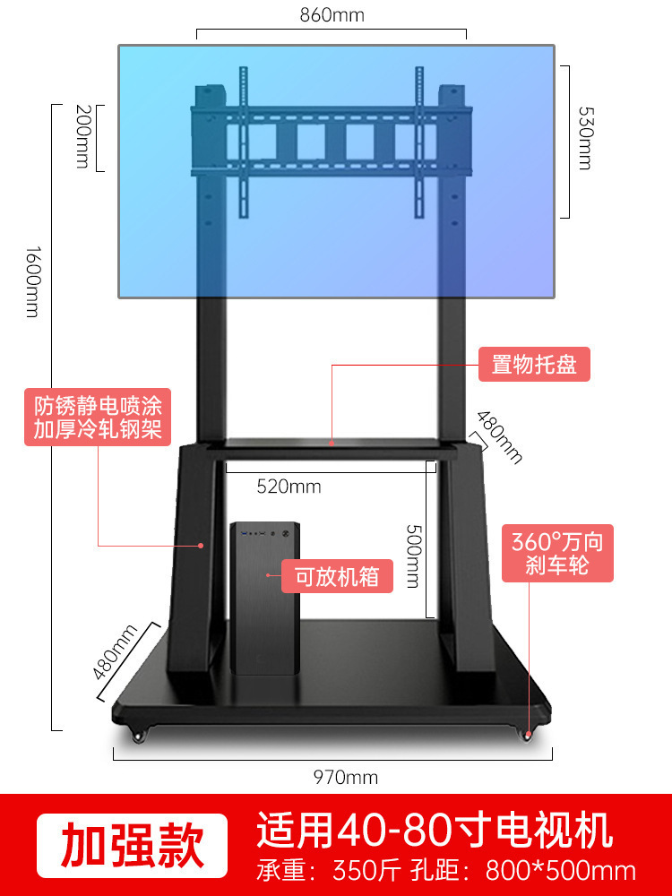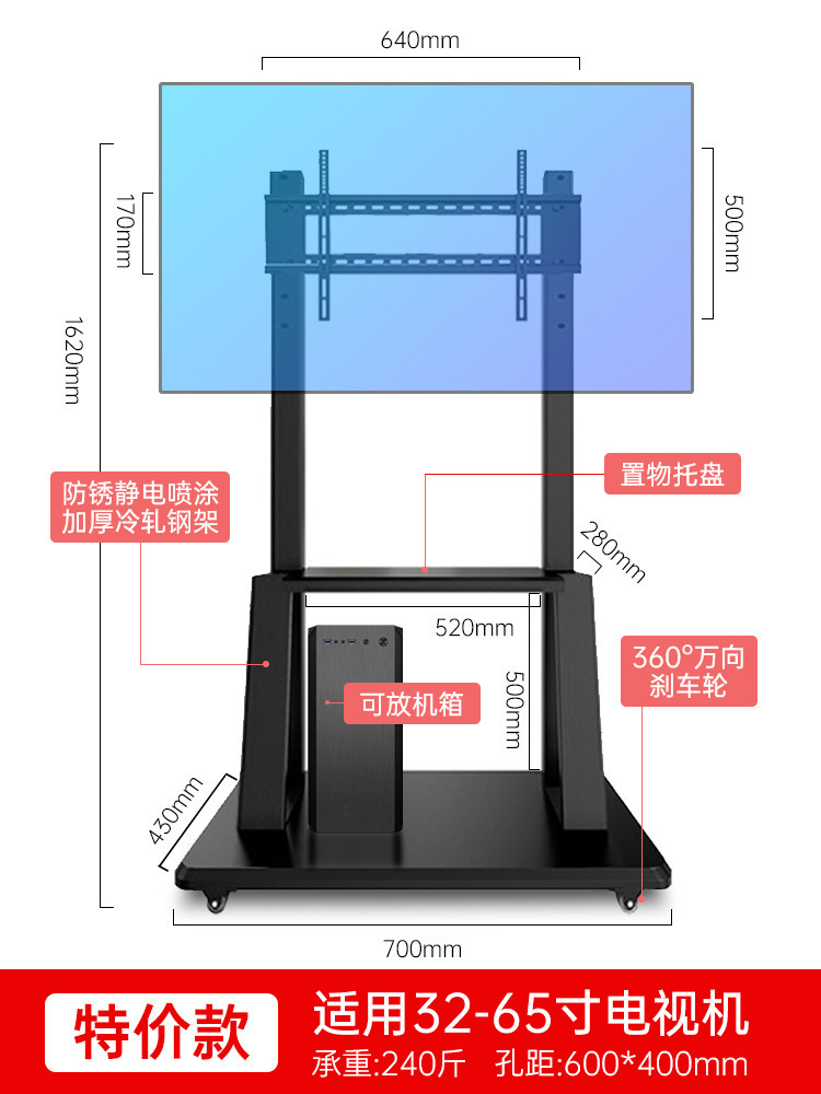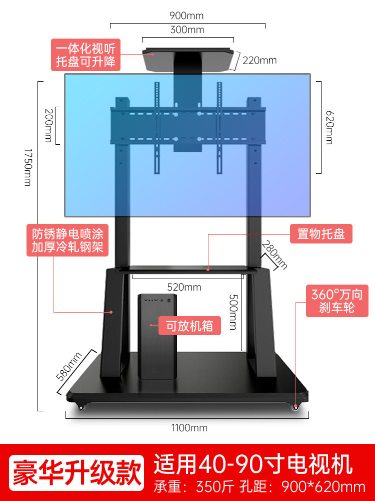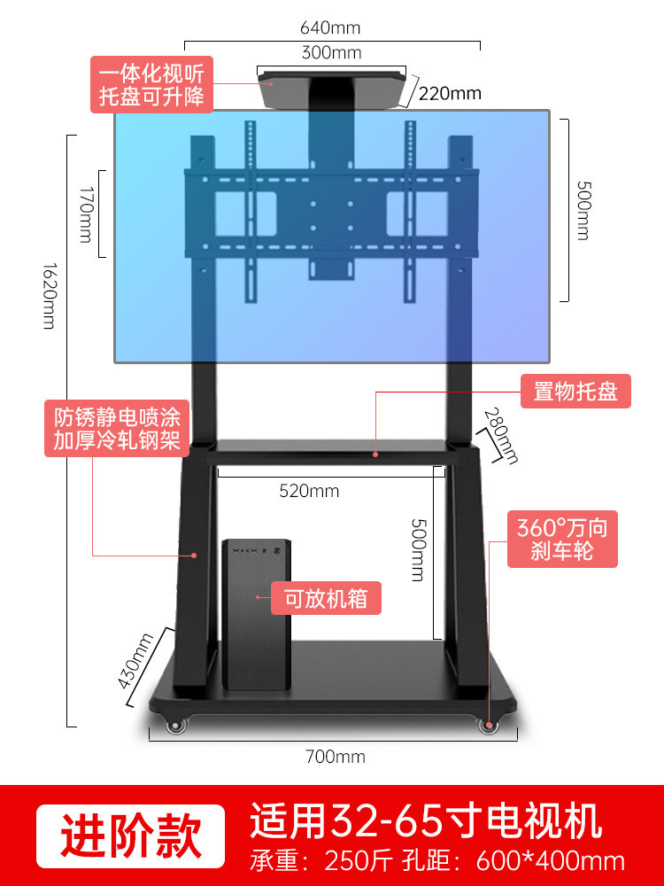 유니버설 두꺼운 TV 플로어 스탠드 이동식 휠 옷걸이 라이브 교육 컨퍼런스 올인원 카트스토어 가기