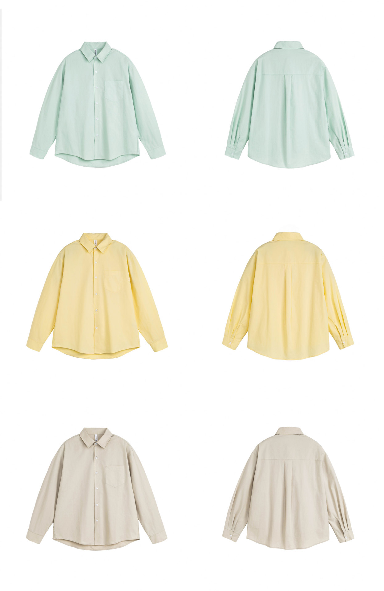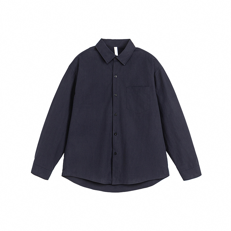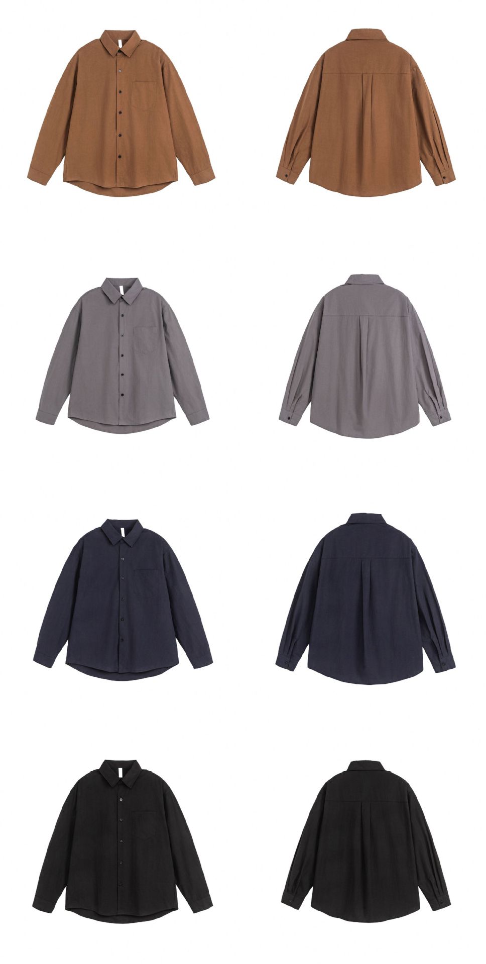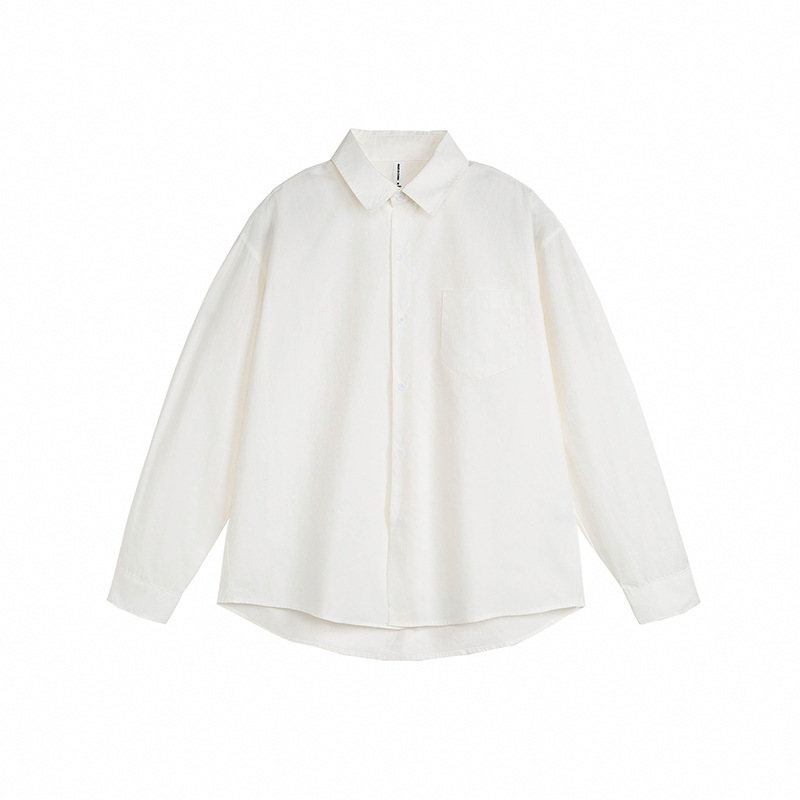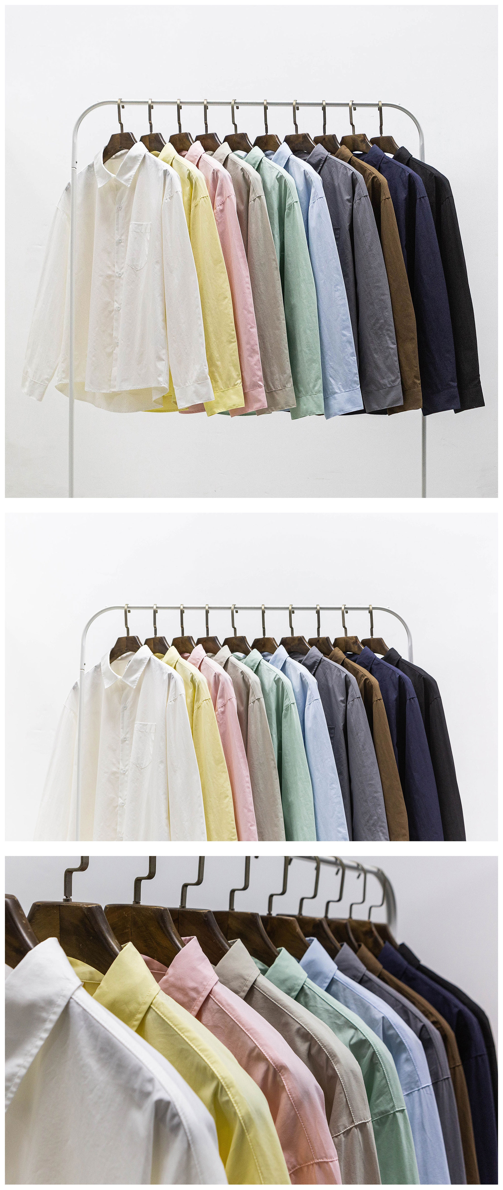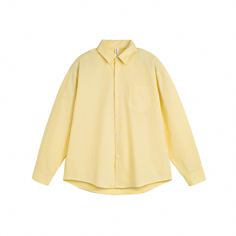Yun En 봄, 가을 일본 복고풍 긴팔 셔츠 남성과 여성을위한 단색 느슨한 옷깃 셔츠 간단한 패션상의스토어 가기