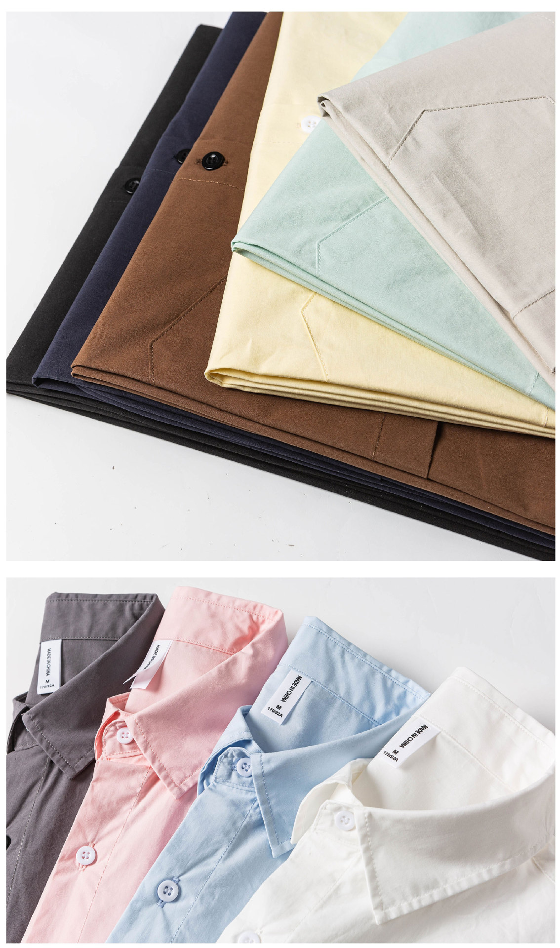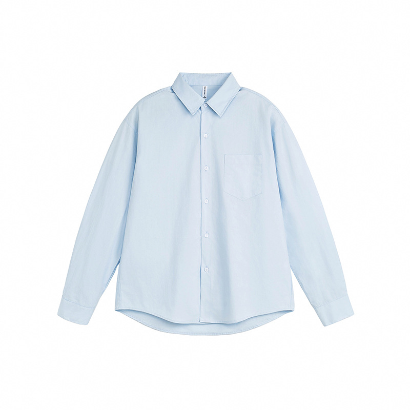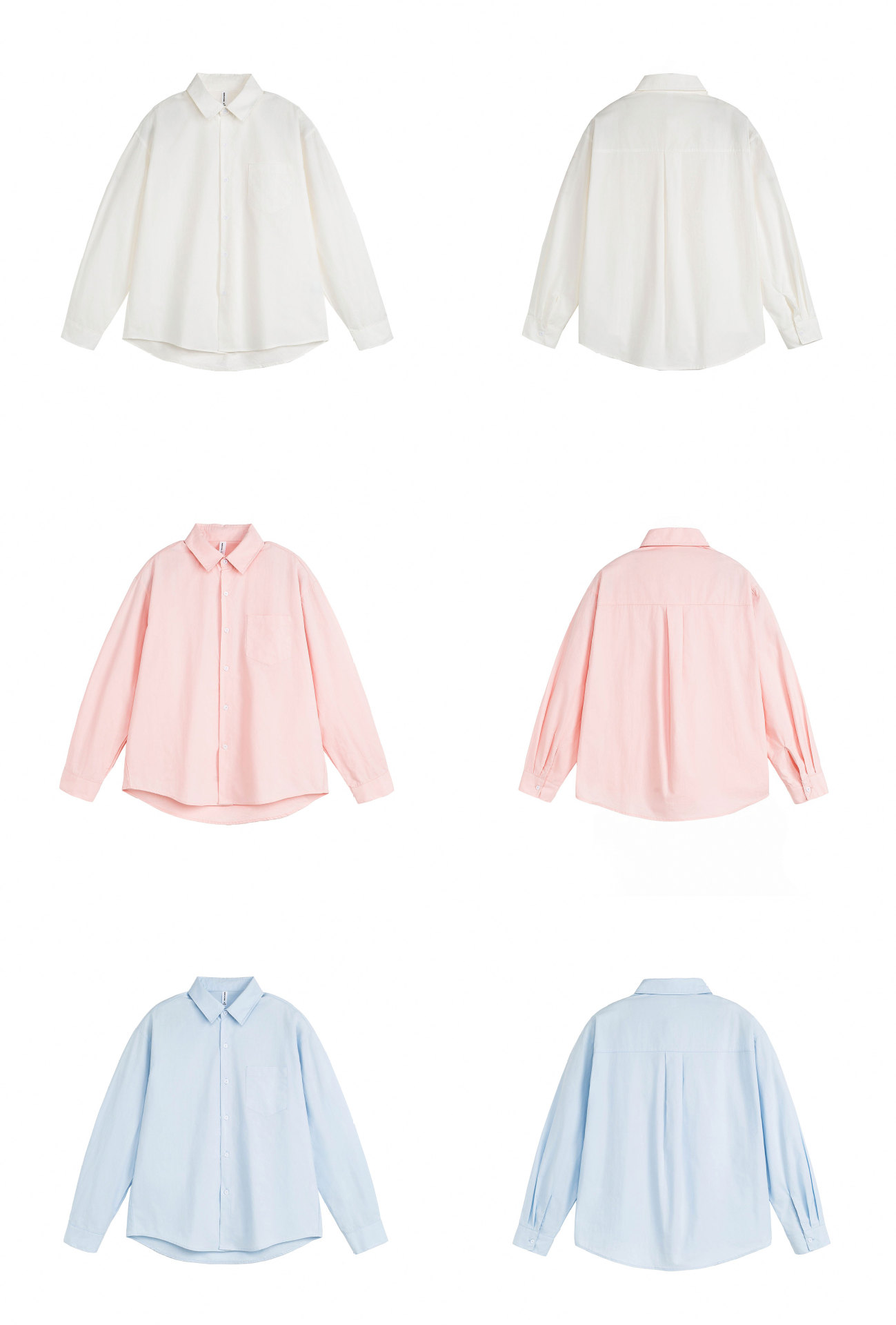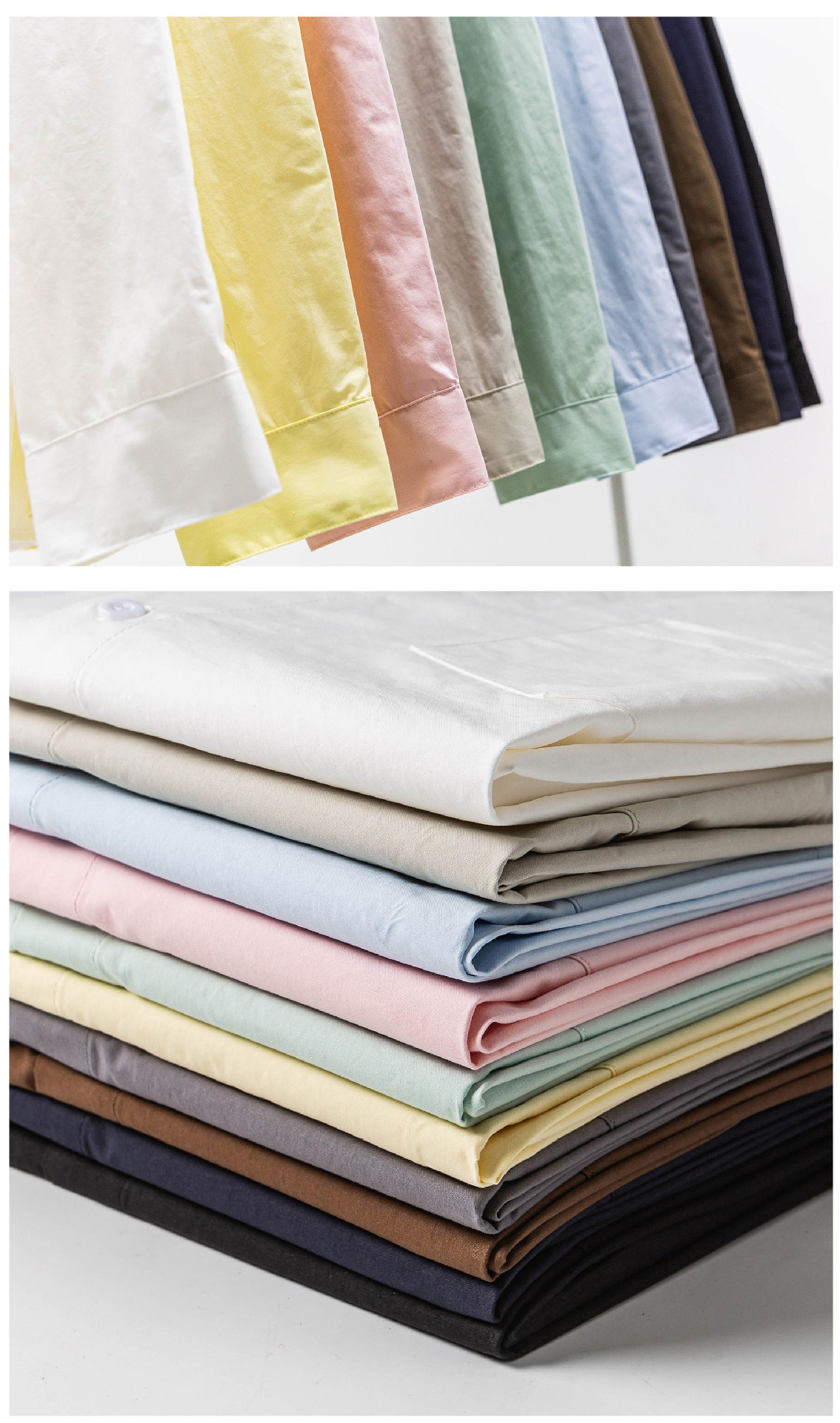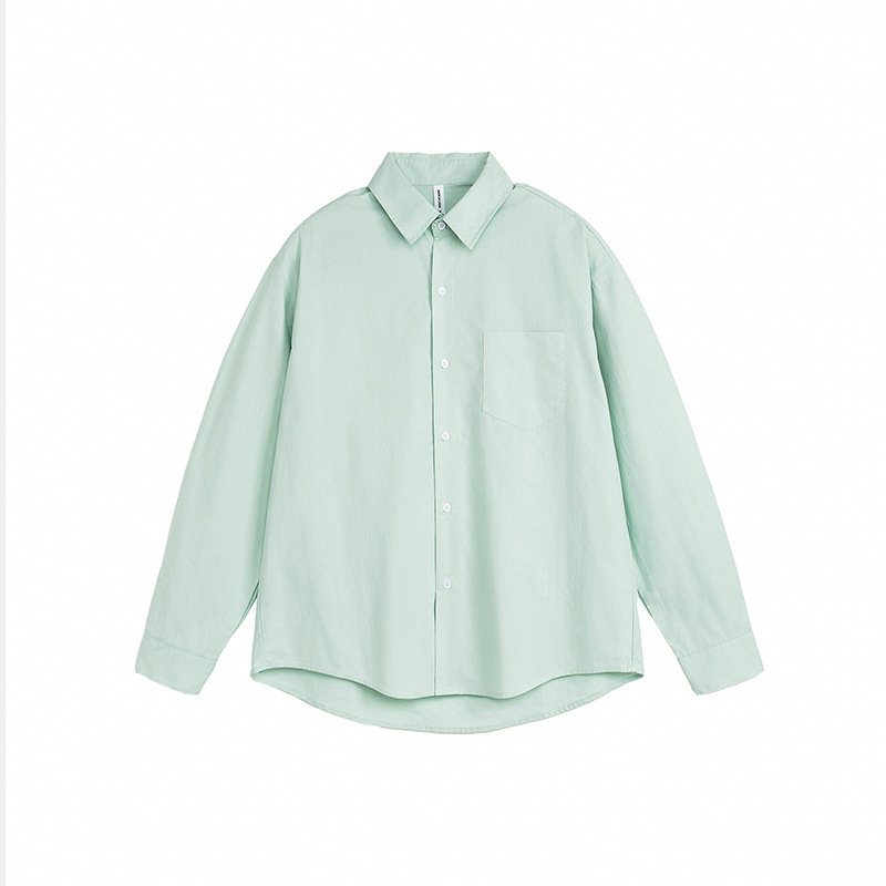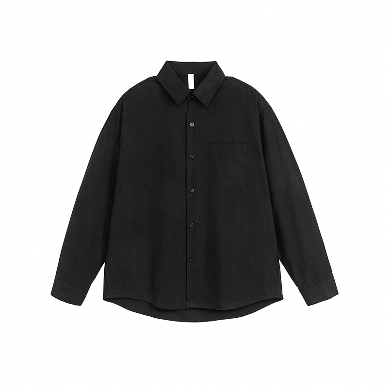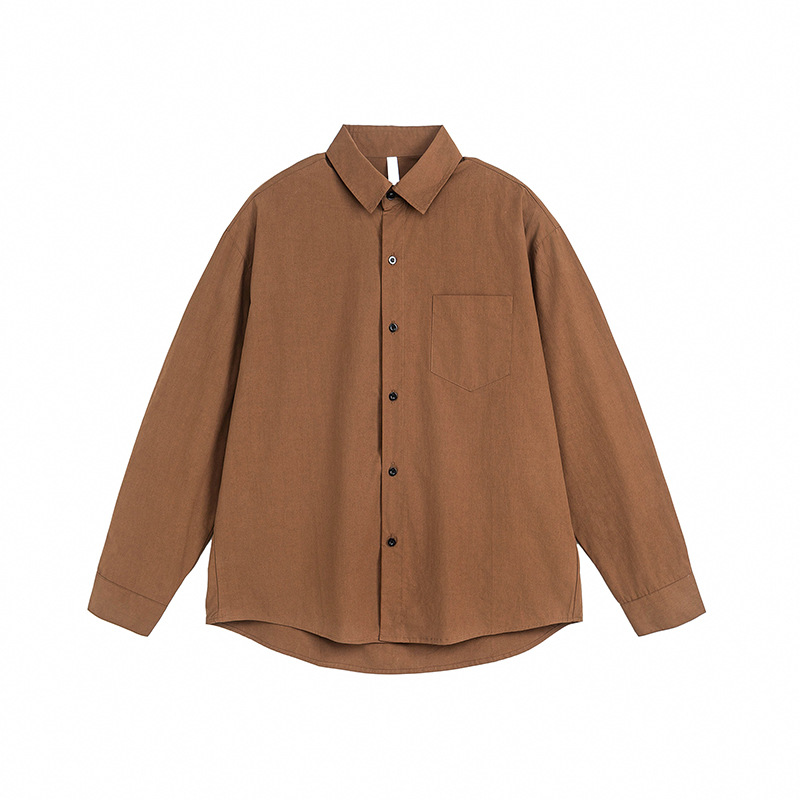 Yun En 봄, 가을 일본 복고풍 긴팔 셔츠 남성과 여성을위한 단색 느슨한 옷깃 셔츠 간단한 패션상의스토어 가기