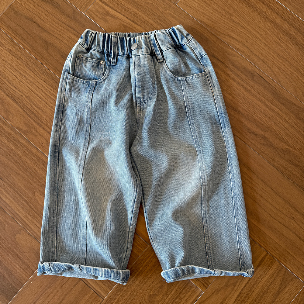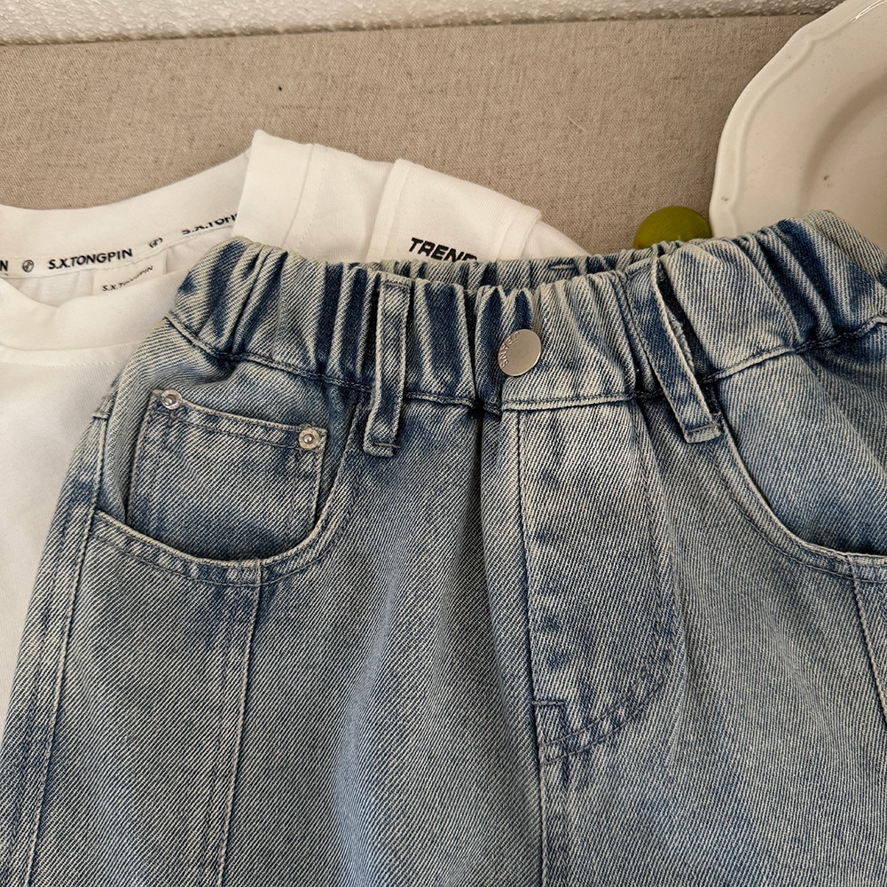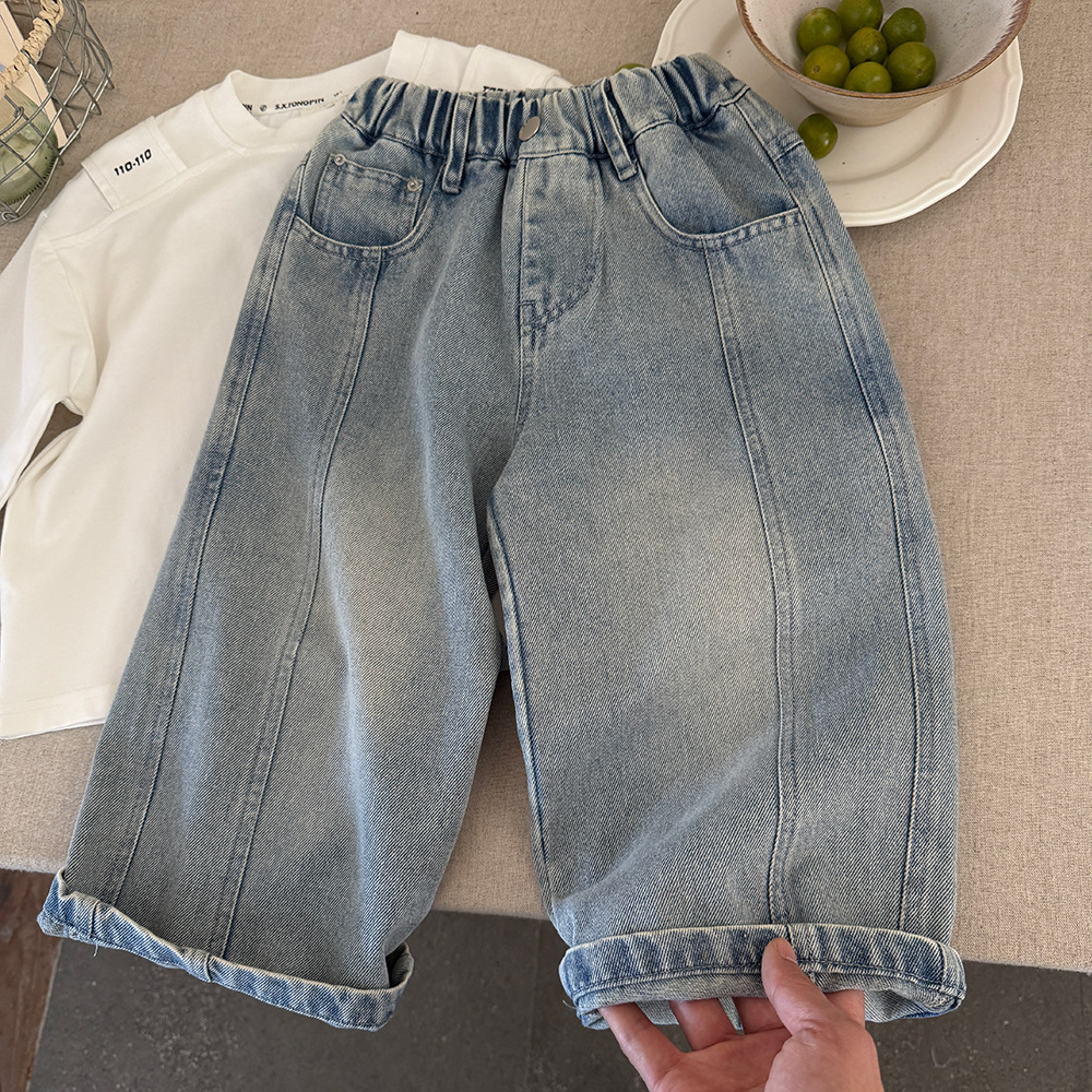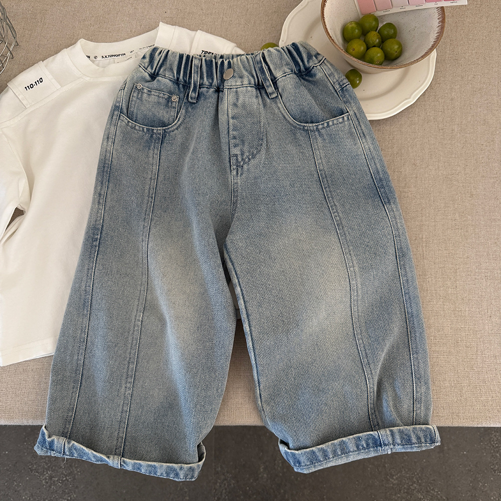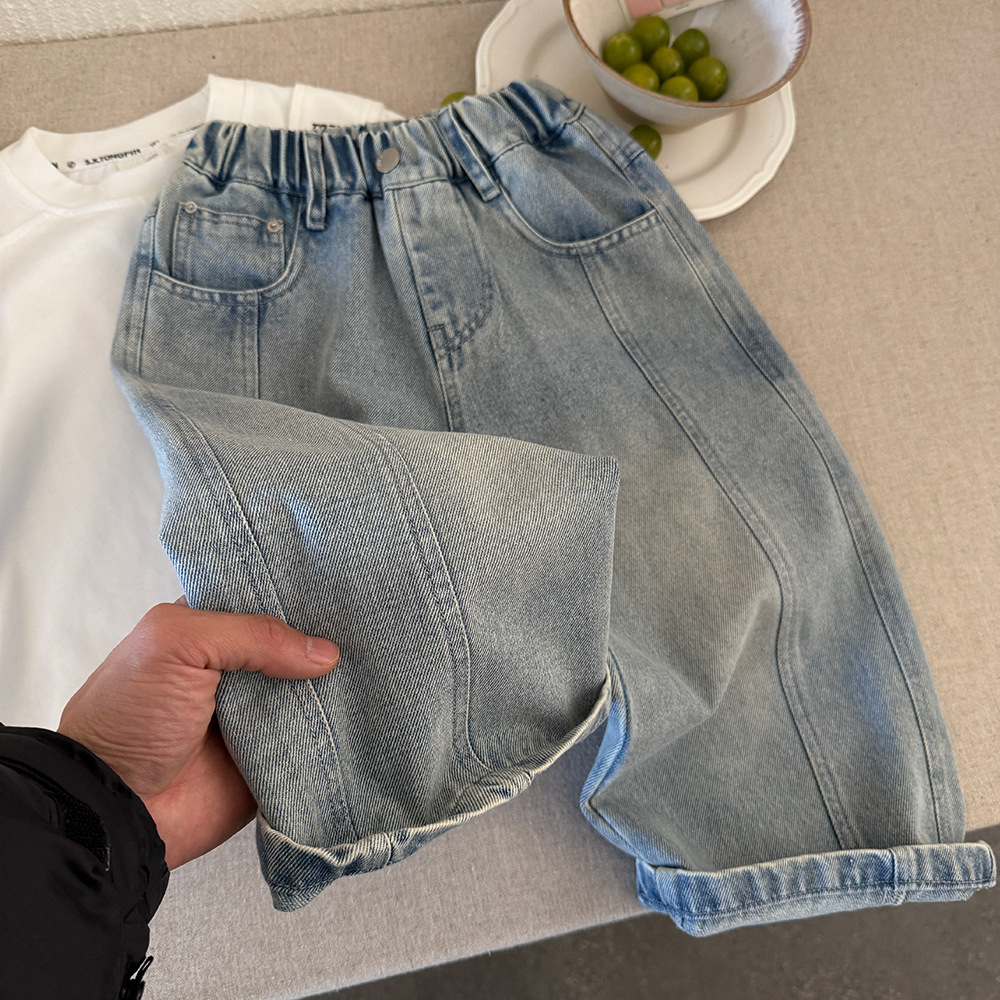 소년 한국식 와이드 레그 팬츠 2025 봄 새로운 올매치 웨스턴 스타일 스트레이트 루즈 소프트 데님 화이트 브러시 어린이 바지스토어 가기