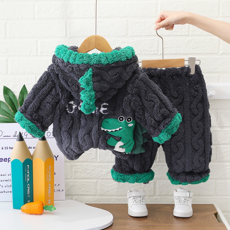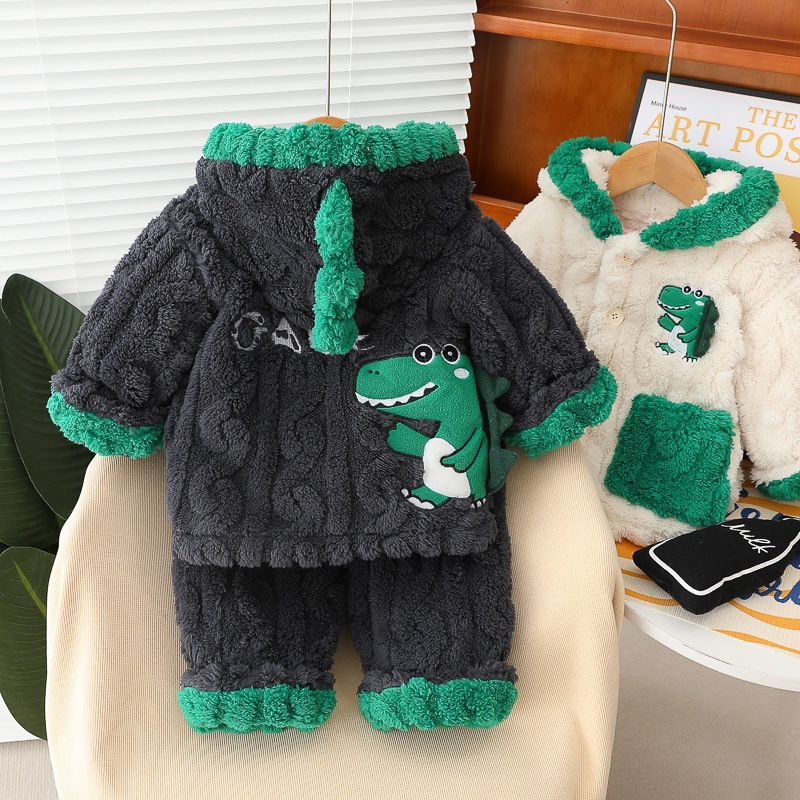 2025 새로운 어린이 겨울 홈 잠옷 아기 소년 겨울 두꺼운 공룡 후드 가디건 플러시 홈 의류스토어 가기