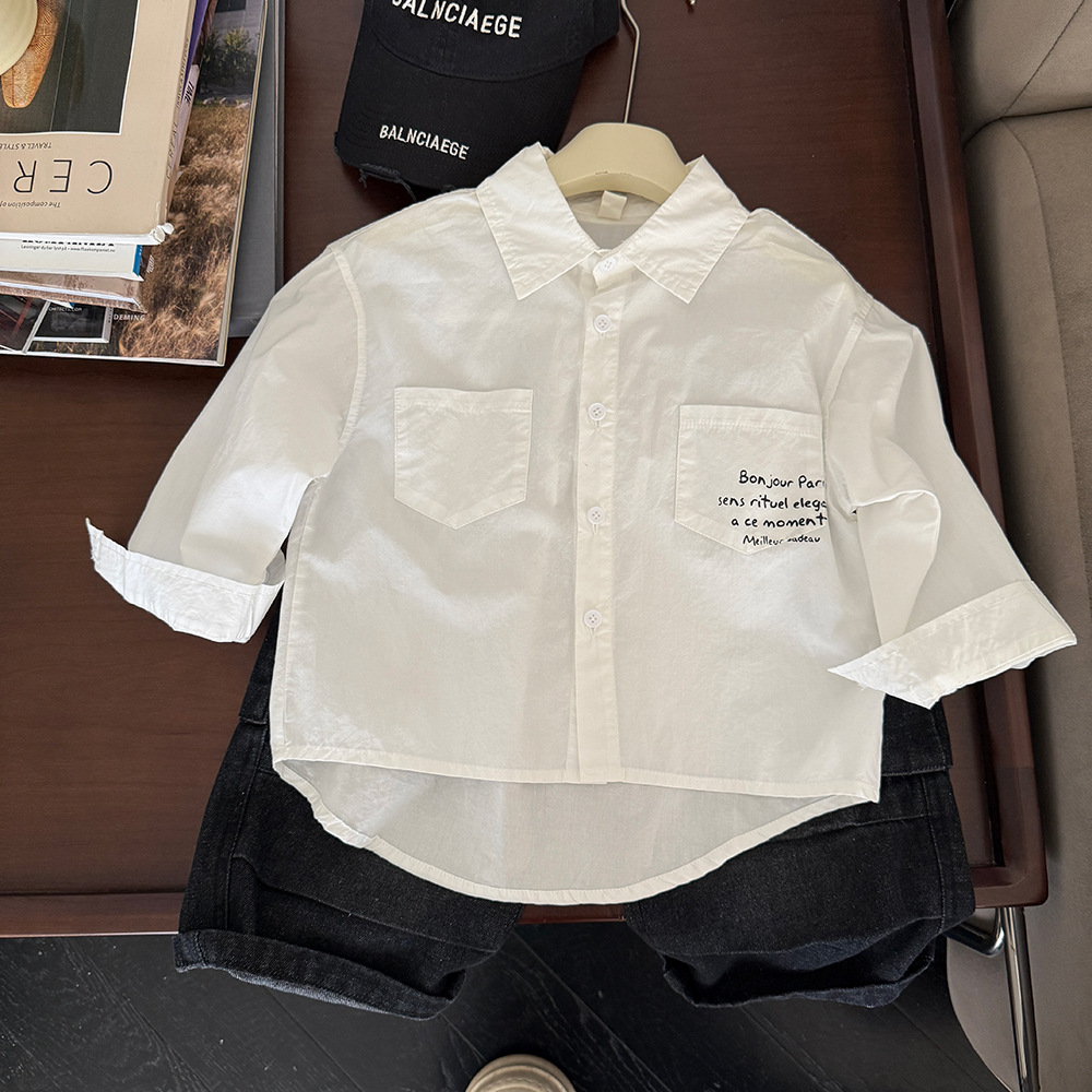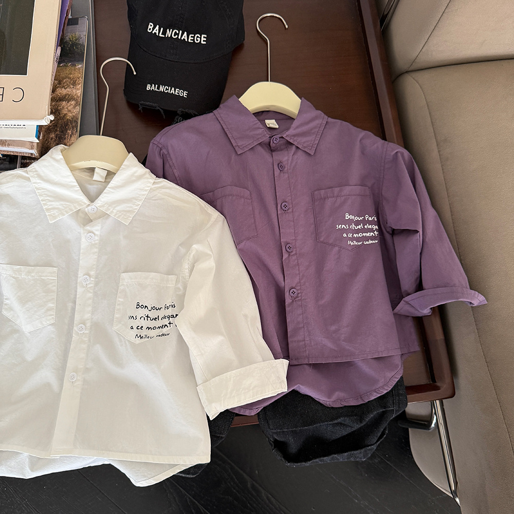 어린이 의류 봄 긴팔 셔츠 2025 새로운 소년 맞는 잘 생긴 느슨한 셔츠 소녀 유행 서양식 봄 탑