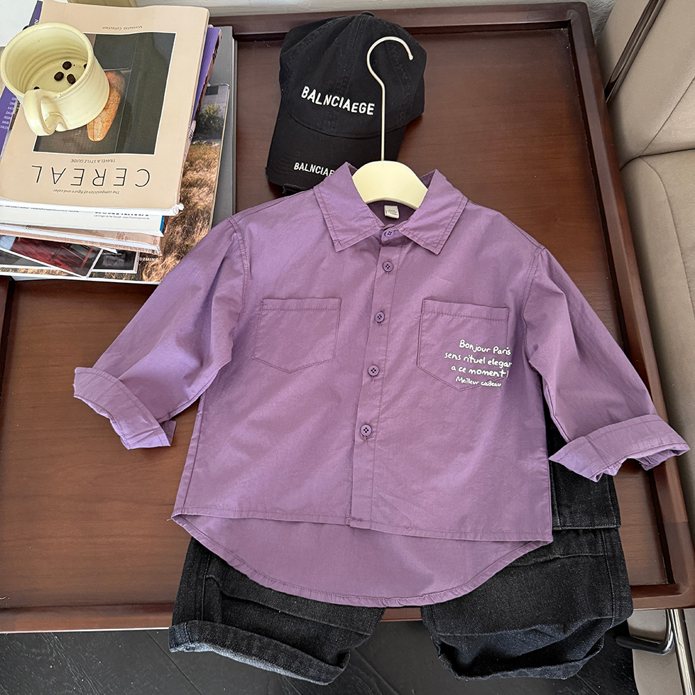 어린이 의류 봄 긴팔 셔츠 2025 새로운 소년 맞는 잘 생긴 느슨한 셔츠 소녀 유행 서양식 봄 탑스토어 가기