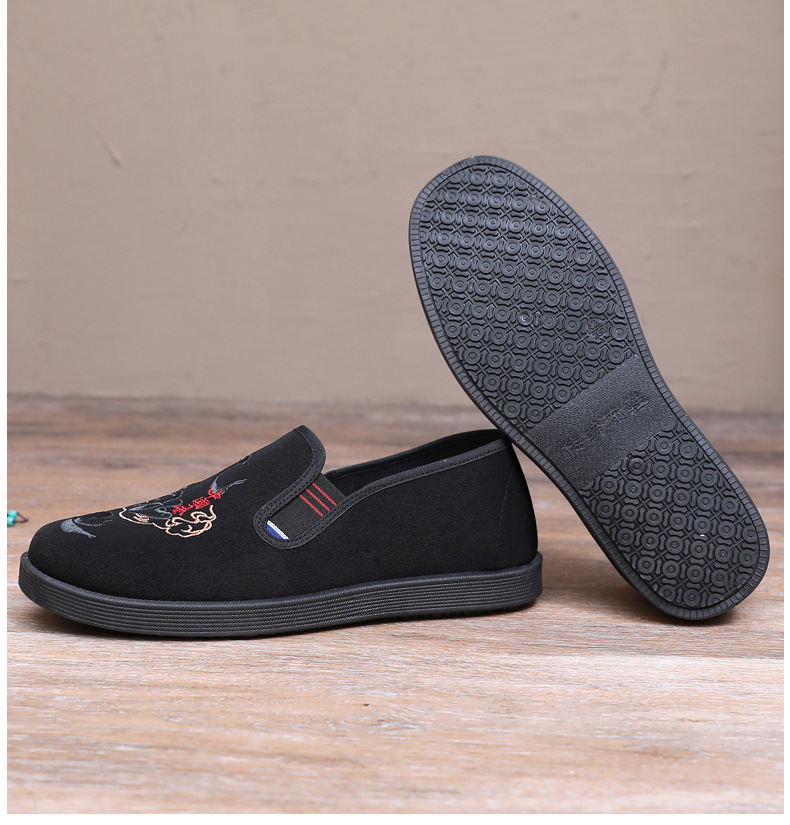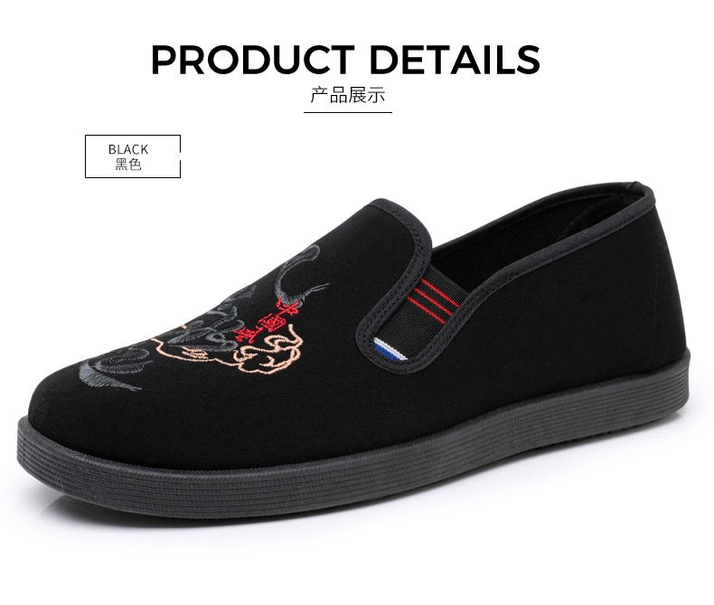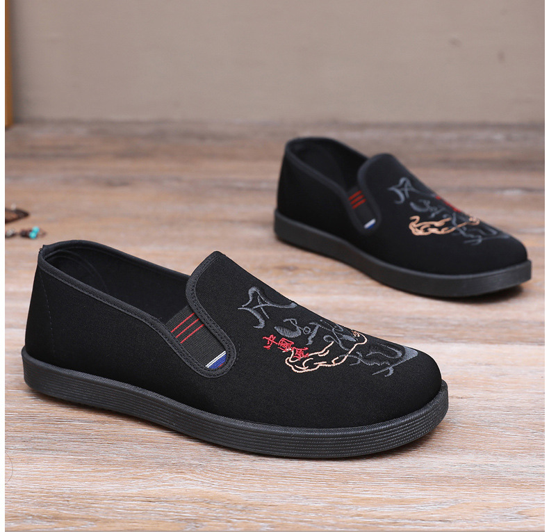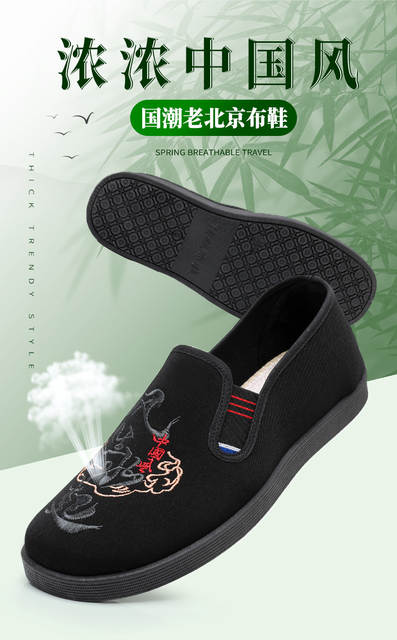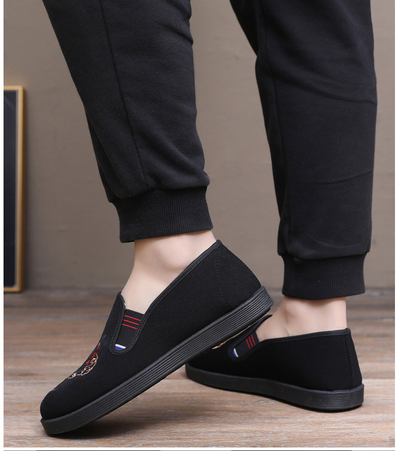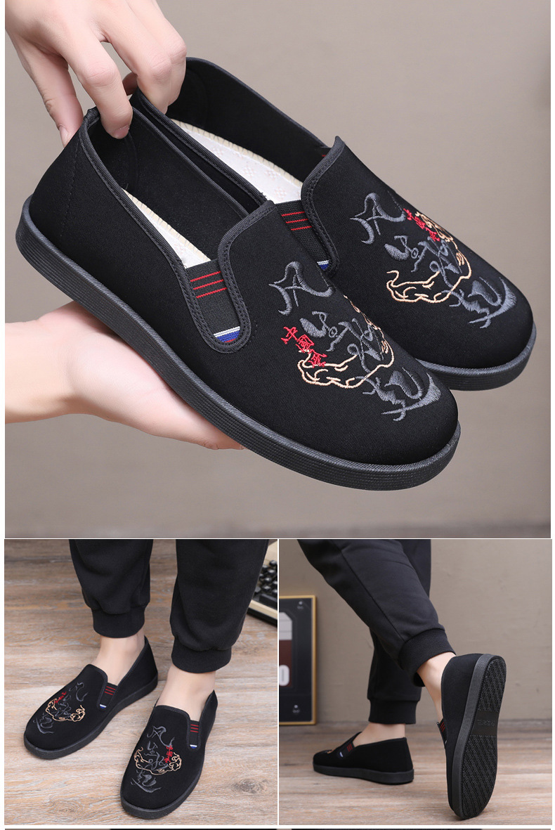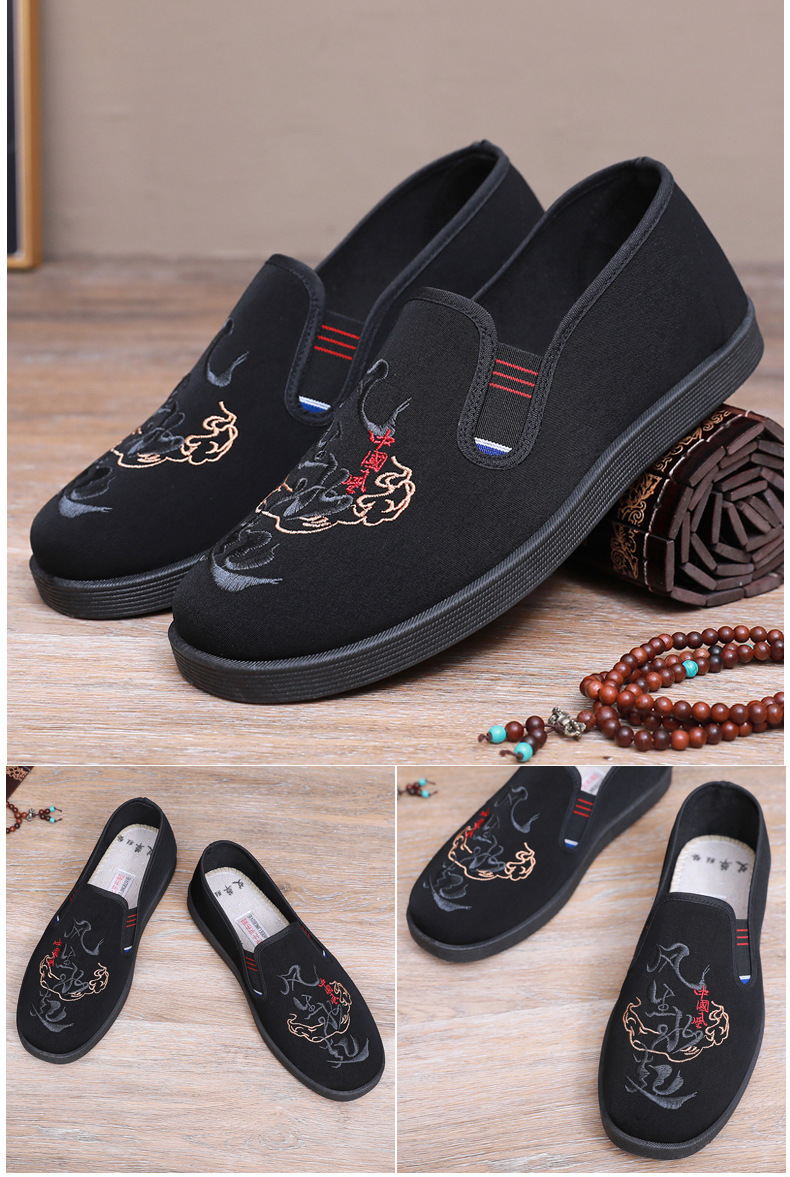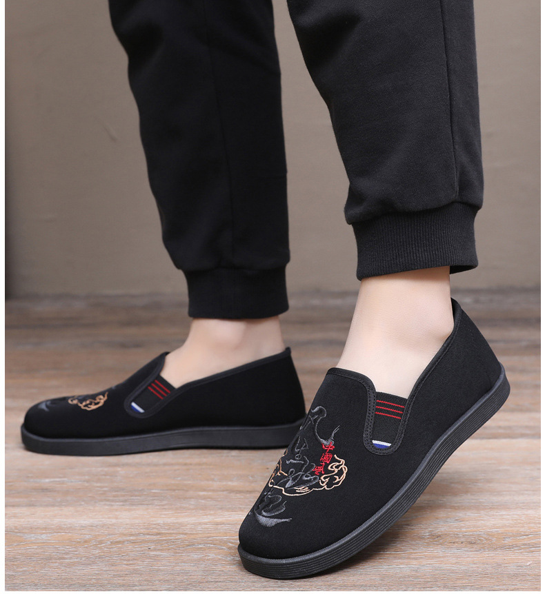 Guochao 남성 신발 오래 된 베이징 자수 천 신발 캐주얼 소프트 하단 아빠 신발 중국 스타일 Guofeng 게으른 한 페달 사회 신발스토어 가기