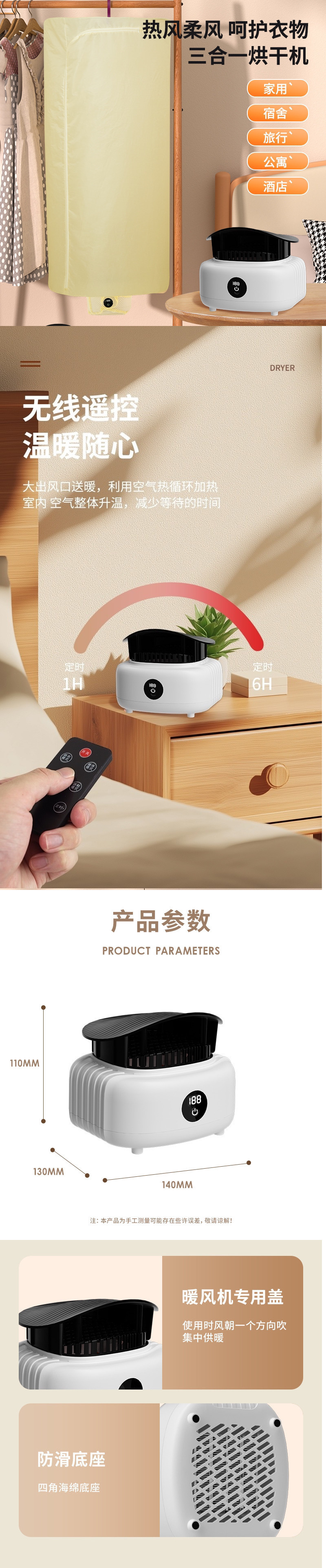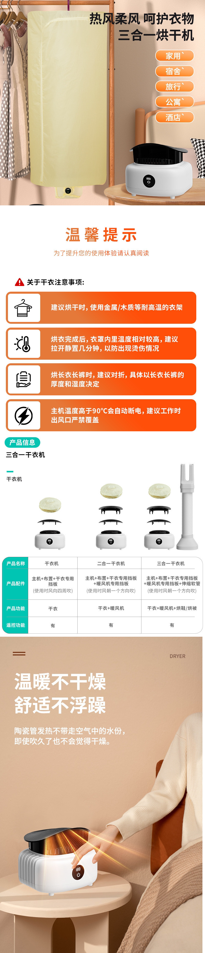 • 3-in-1 음이온 휴대용 건조기 공기 건조 완전 자동 접이식 가정용 소형 기숙사 의류 빠른 건조