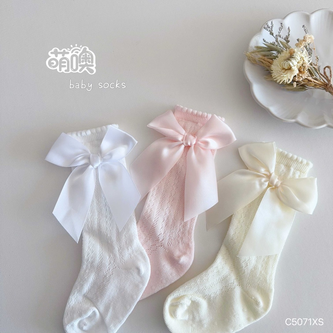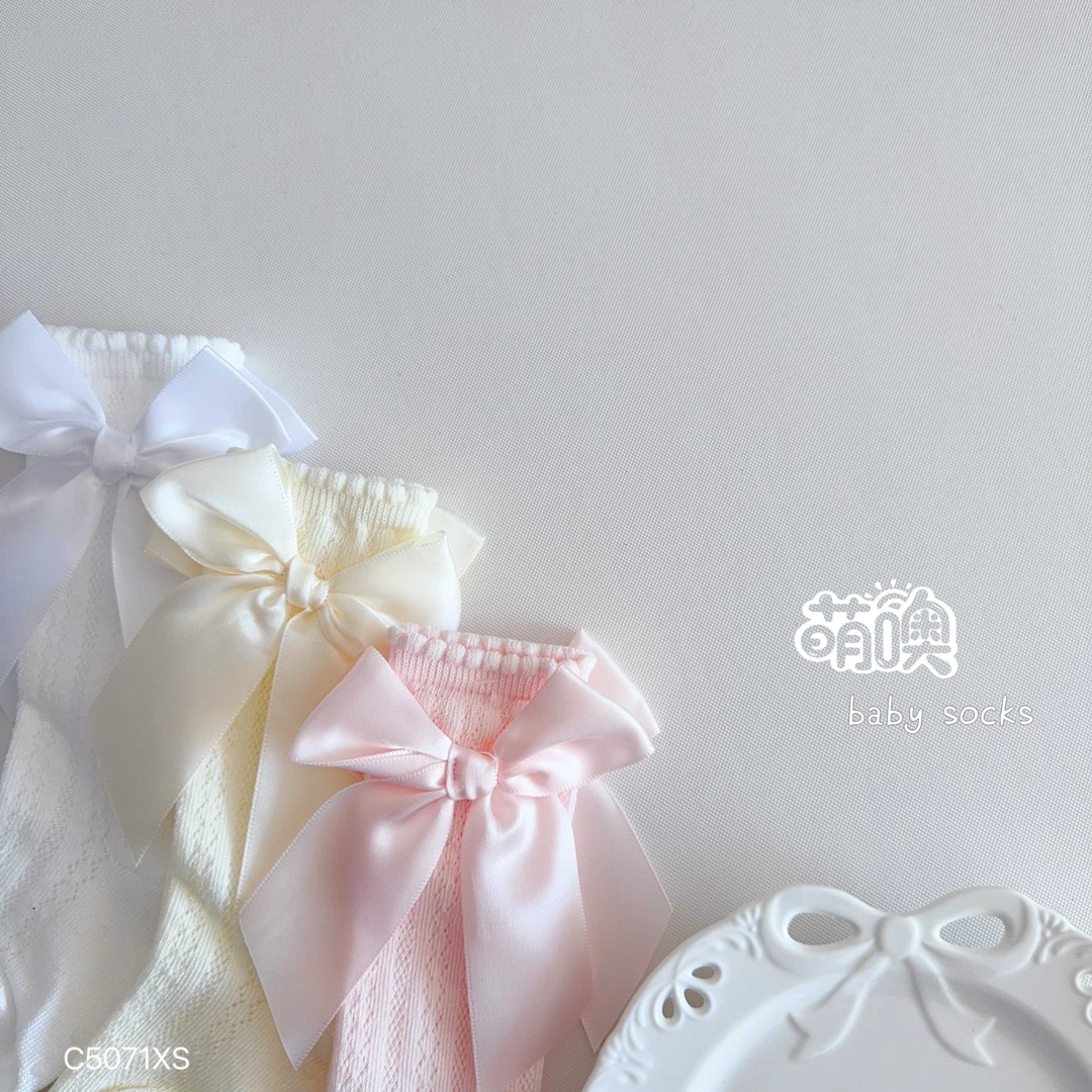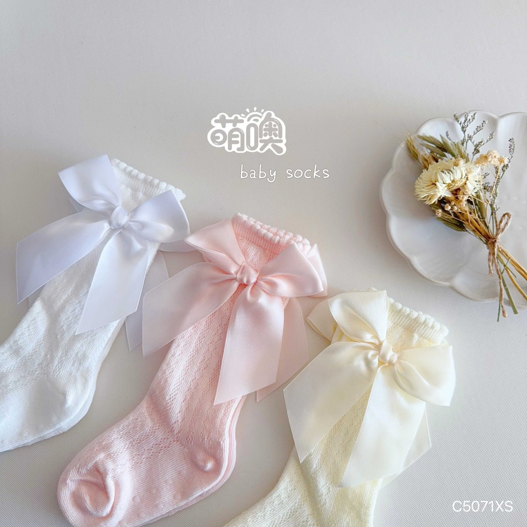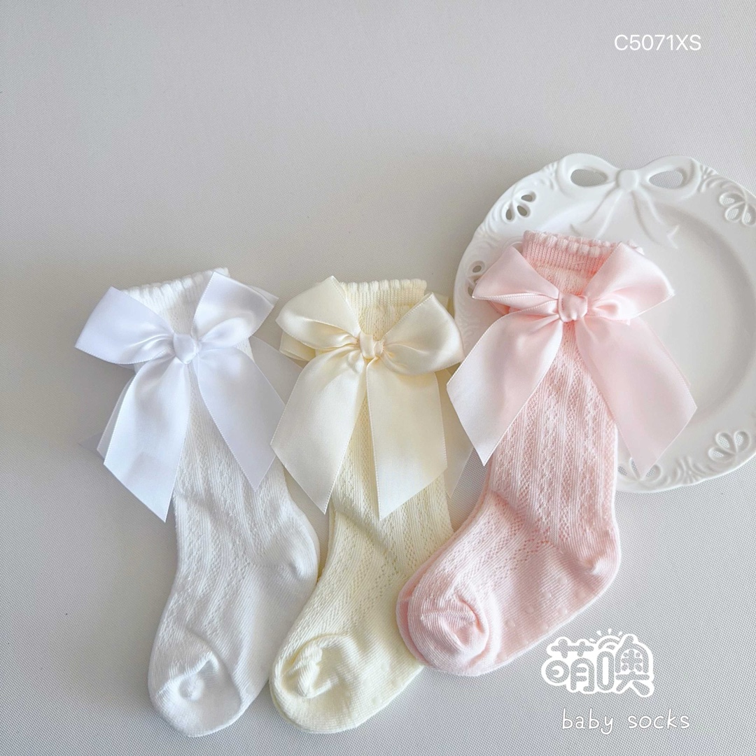 짠 디자이너 Mesh Bow Princess 양말 초박형 Combed Cotton Girls Over-the-Knee Stockings