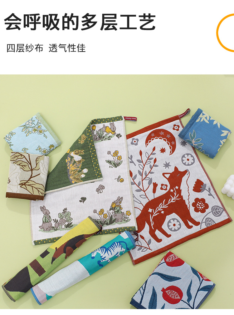 Guofeng 면화 거즈 사각형 4 층면 타월 클래스 손 선물 얼굴 수건 로고 공장 도매로 큰 사각형