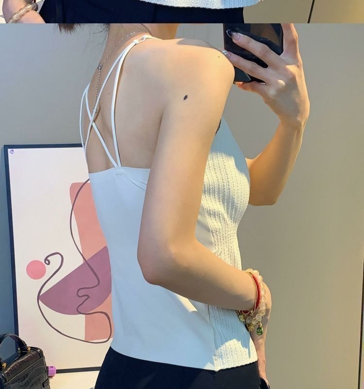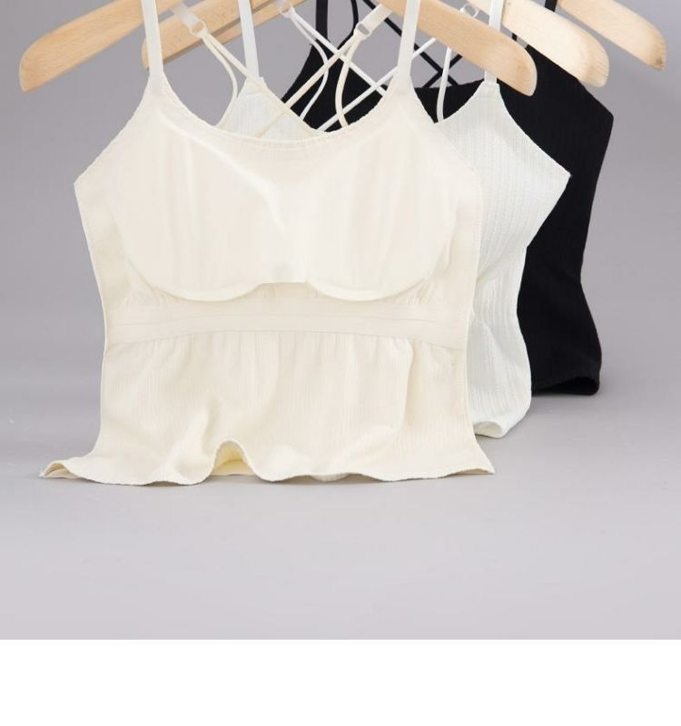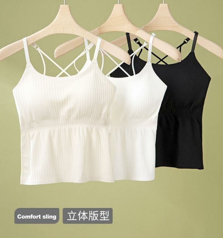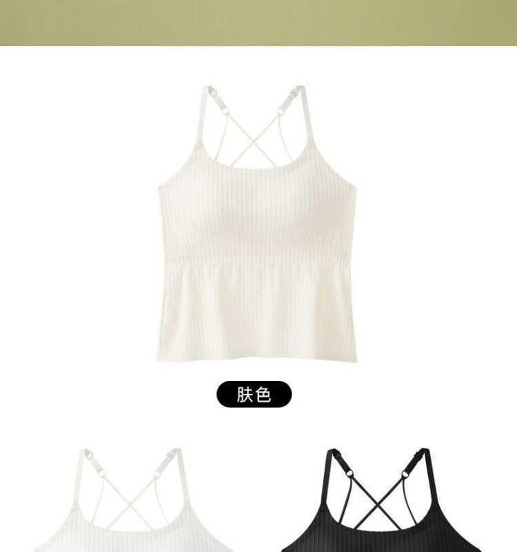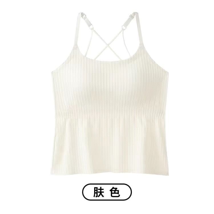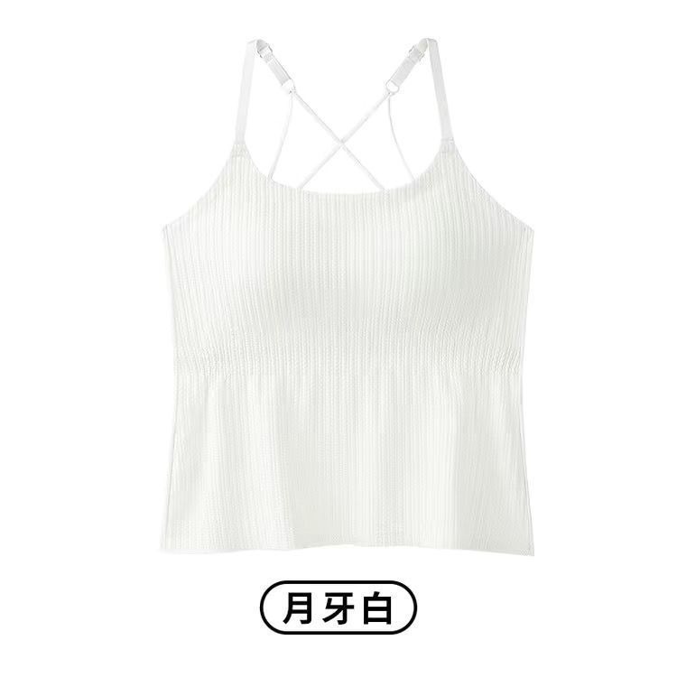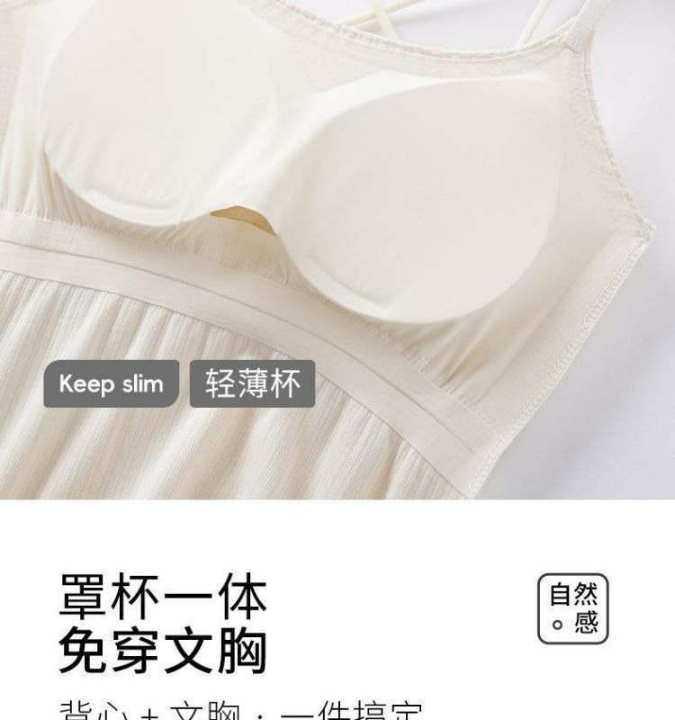 Four Seasons 슬리밍베이스 Camisole 여성용 비 마킹 아우터웨어 아름다운 백 솔리드 컬러 원피스 가슴 패드 롱 탑