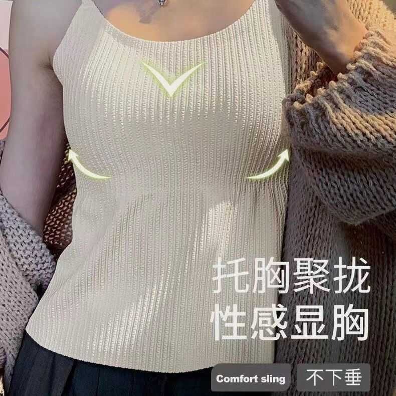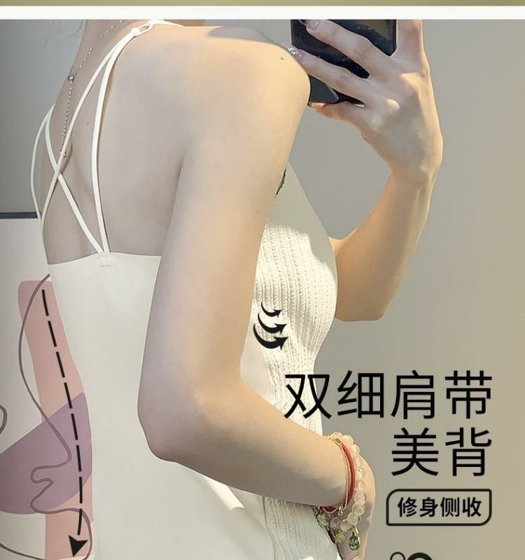 Four Seasons 슬리밍베이스 Camisole 여성용 비 마킹 아우터웨어 아름다운 백 솔리드 컬러 원피스 가슴 패드 롱 탑스토어 가기
