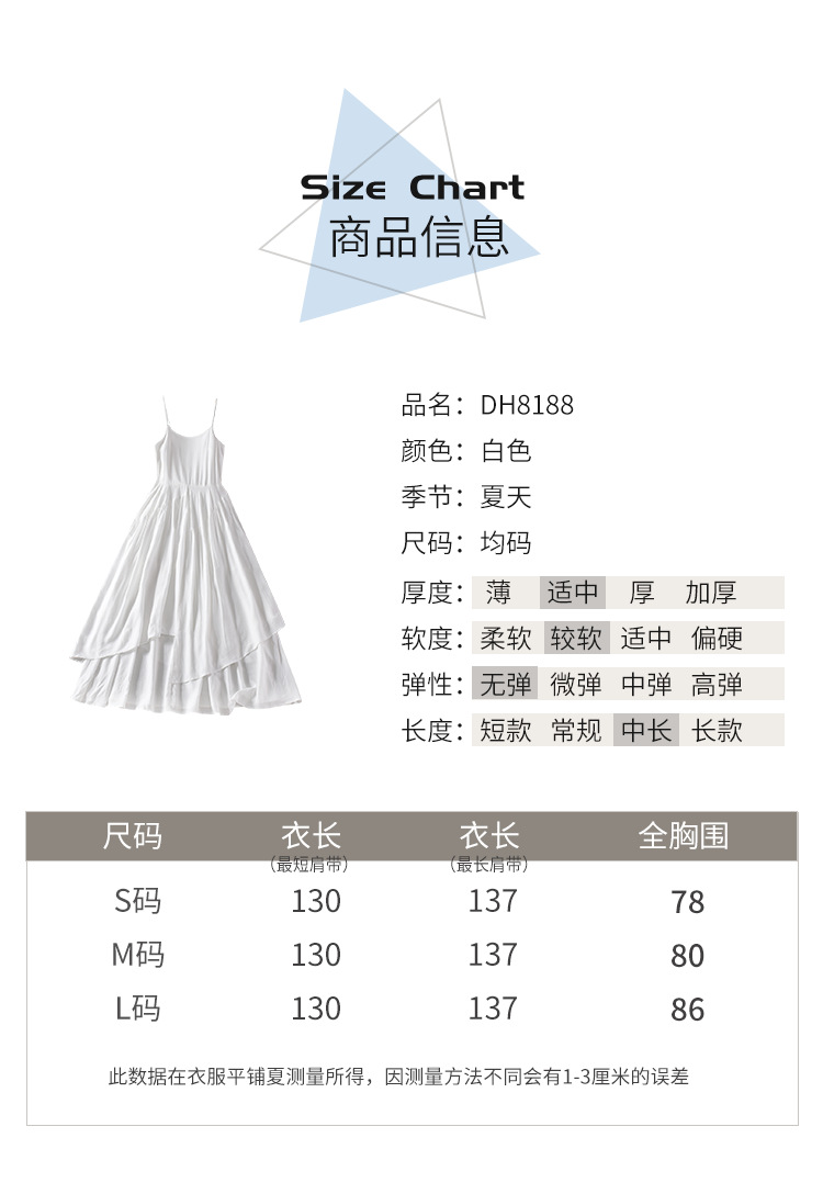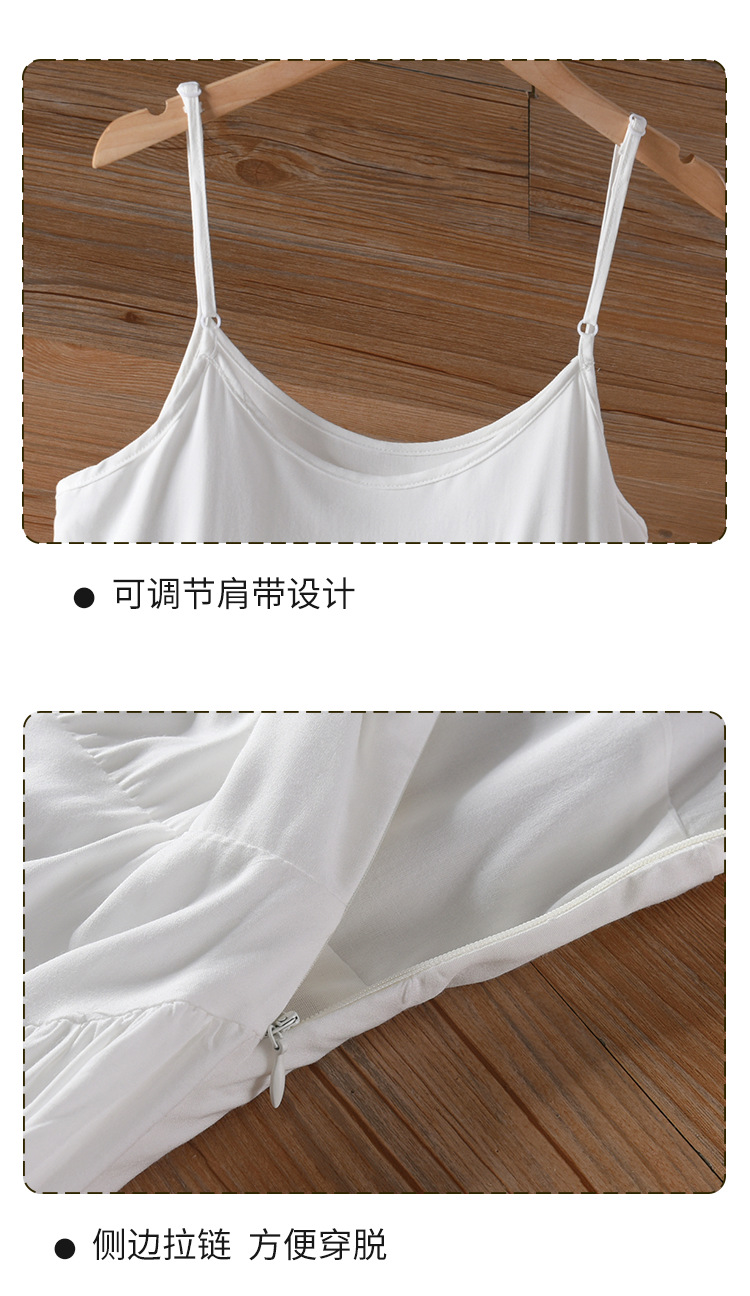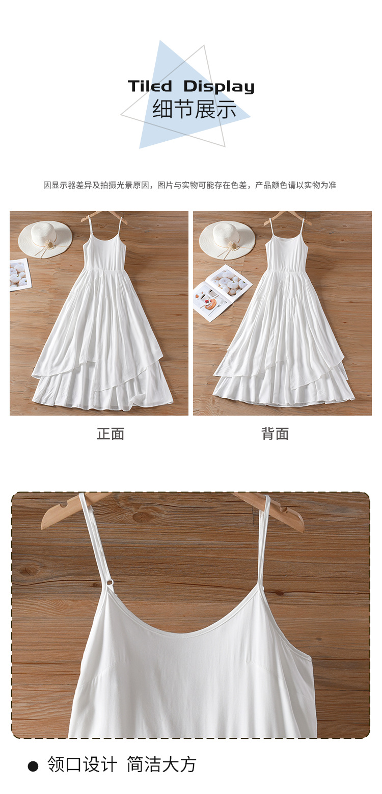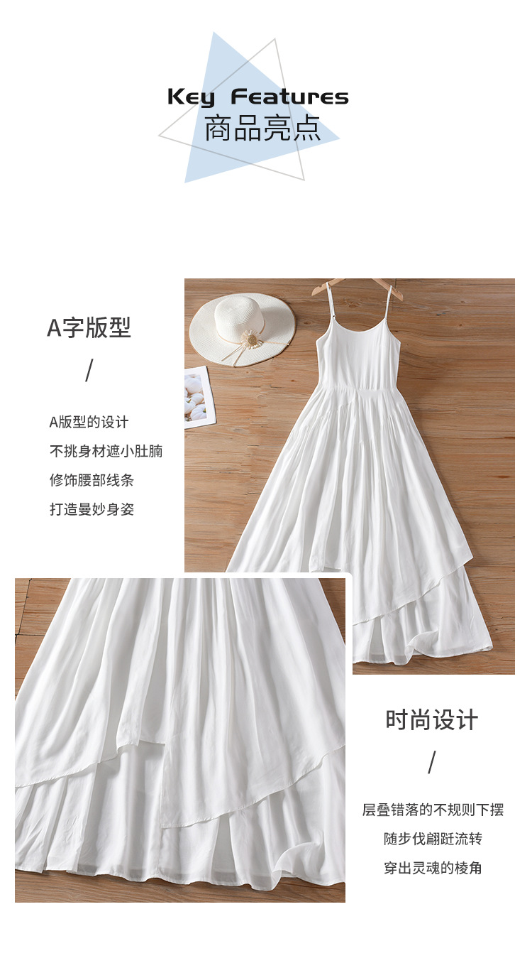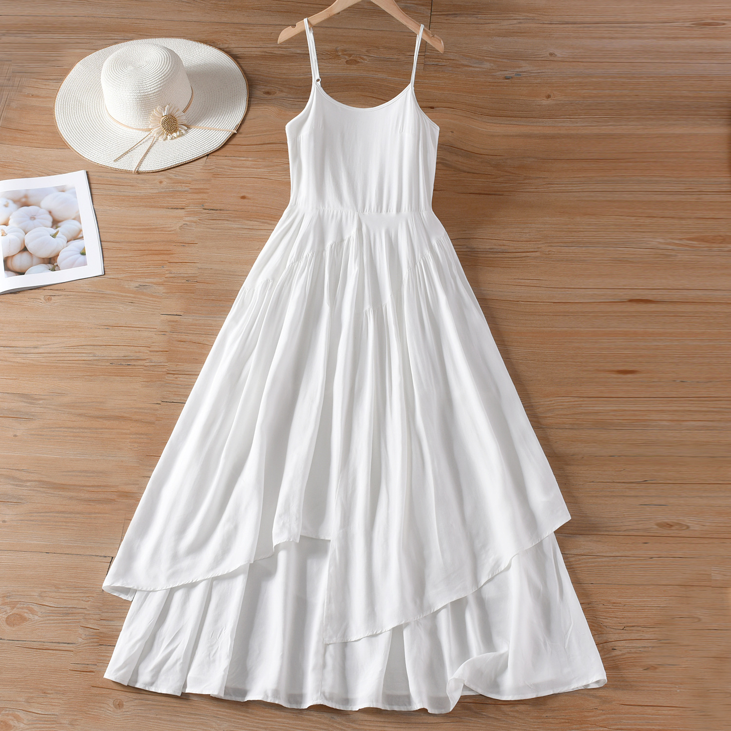 여성을위한 특별 제공 틈새 디자인 불규칙한 밑단 드레스 여름 새로운 흰색 면 실크 서스펜더 드레스