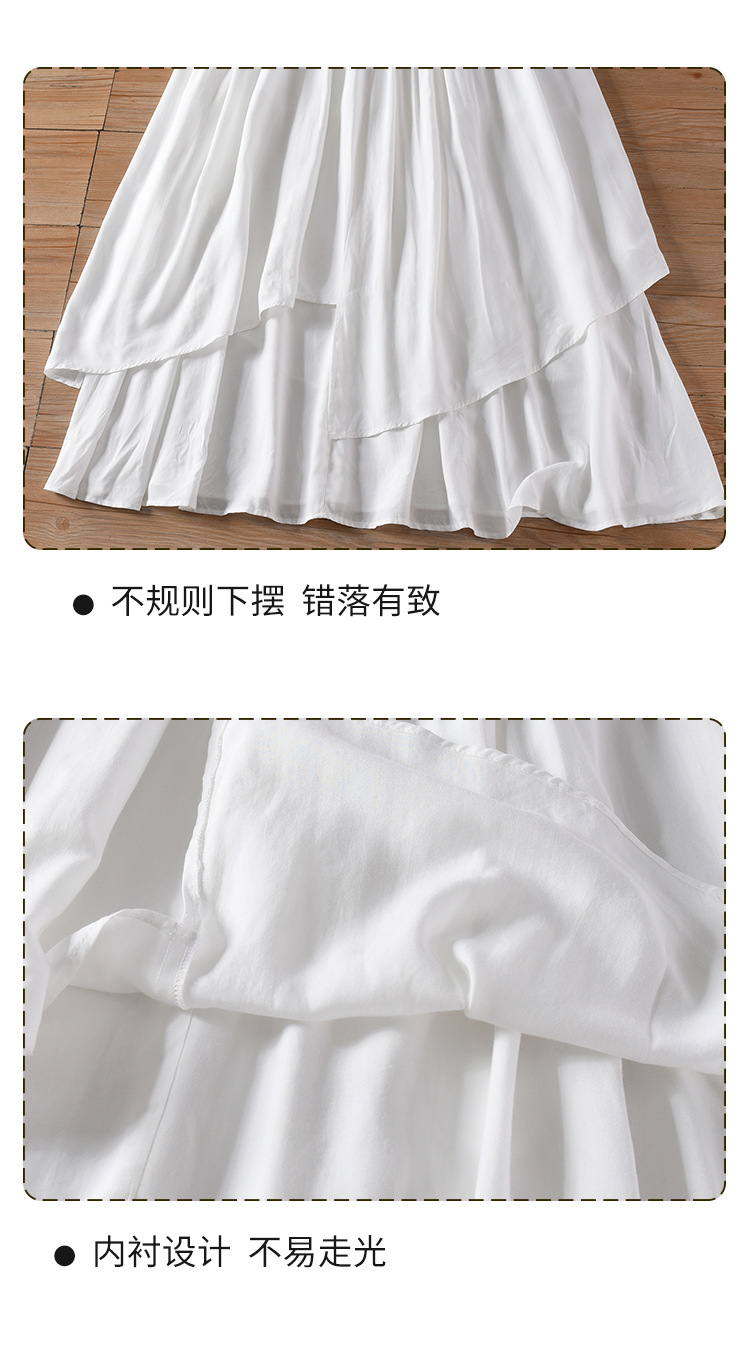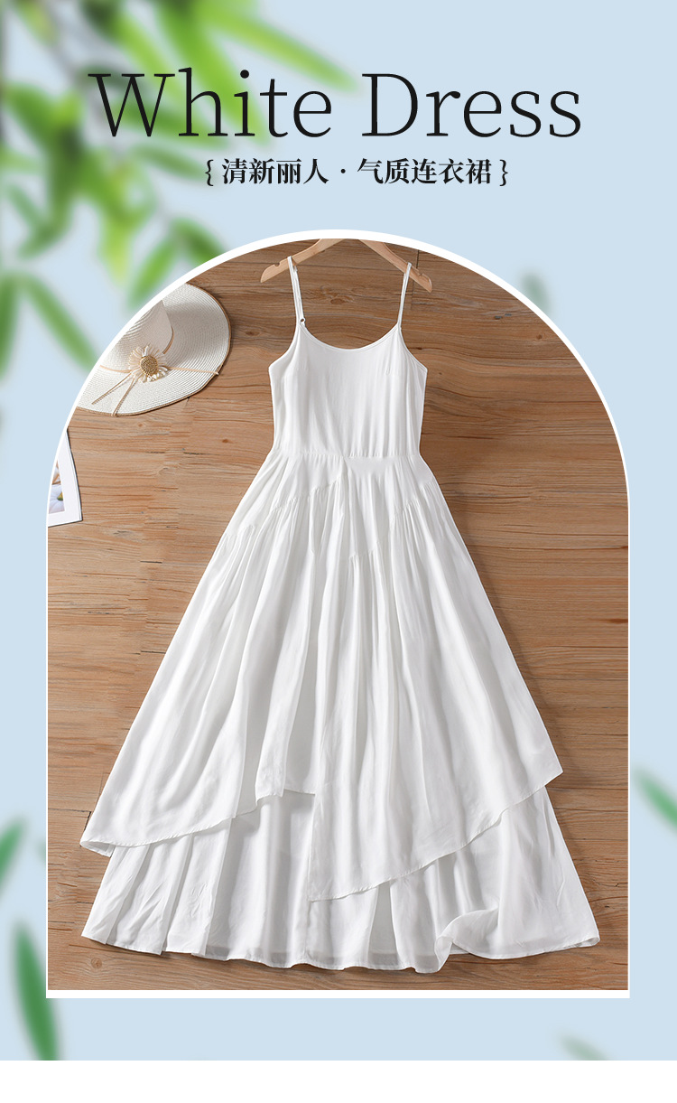 여성을위한 특별 제공 틈새 디자인 불규칙한 밑단 드레스 여름 새로운 흰색 면 실크 서스펜더 드레스스토어 가기
