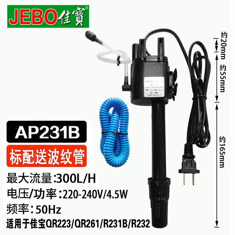 • Jiabao AP231/4.5W에는 입구 및 출구 파이프(벨로우 파이프 제공)가 포함되어 있습니다.