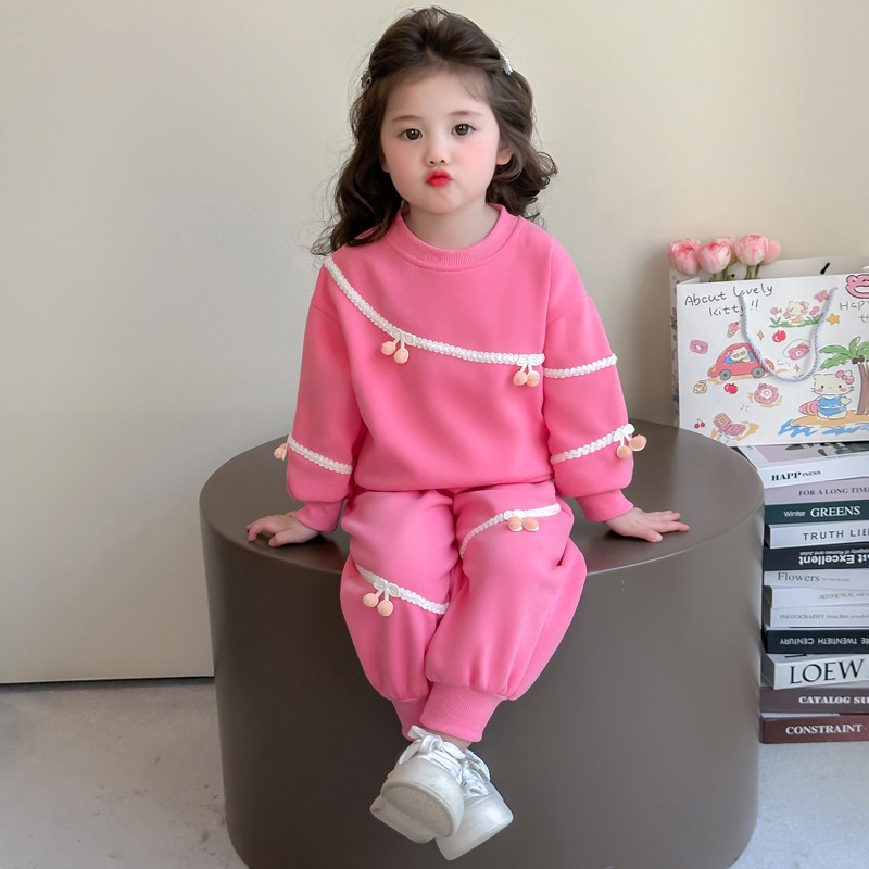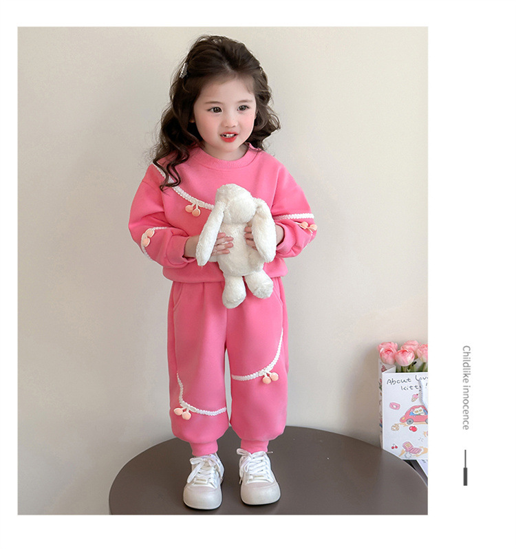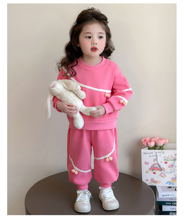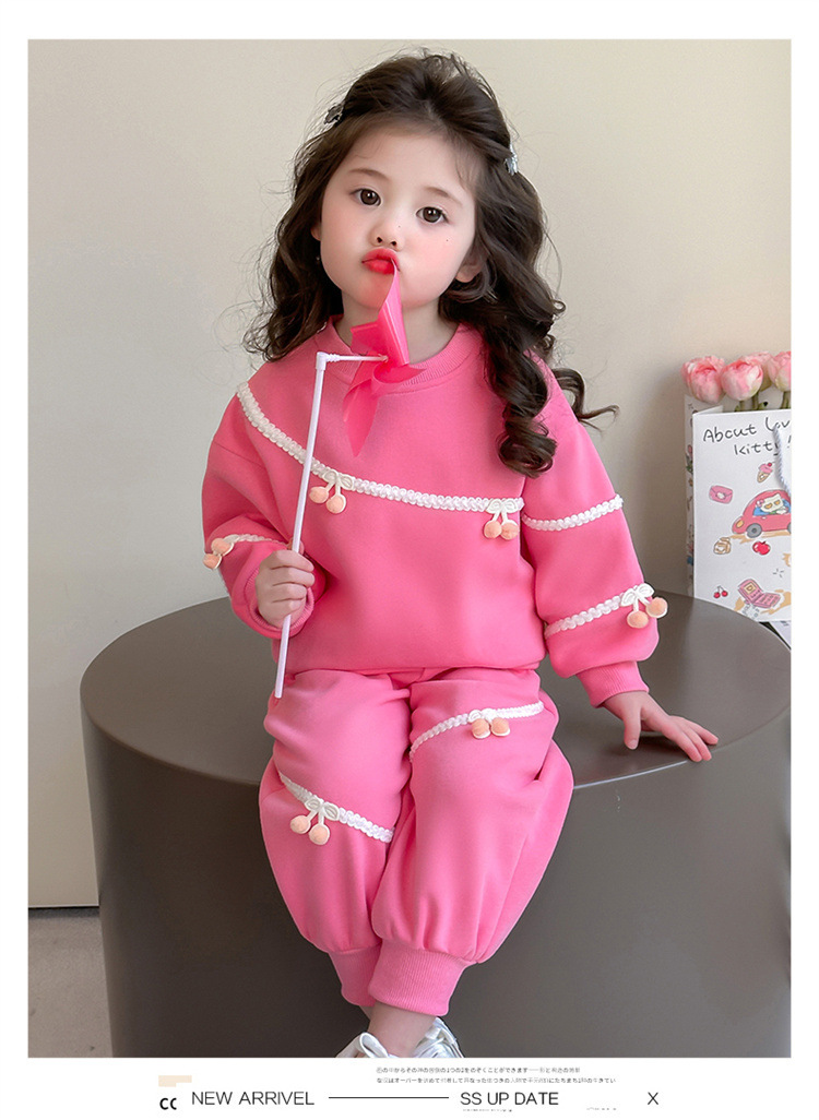 소녀 레이스 모피 공 세트 봄과 가을 2025 새로운 패션 소녀 세련된 땀 투피스 세트스토어 가기