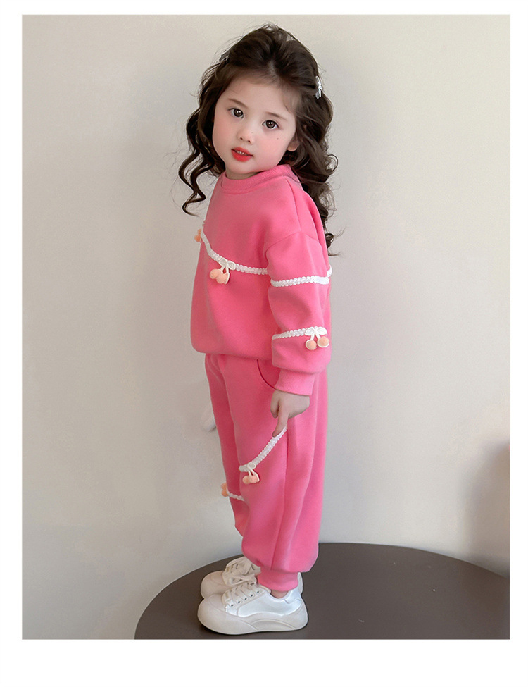 소녀 레이스 모피 공 세트 봄과 가을 2025 새로운 패션 소녀 세련된 땀 투피스 세트