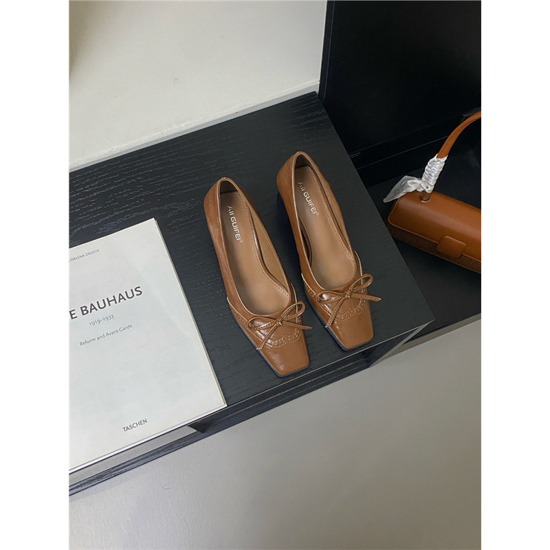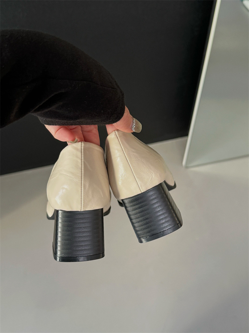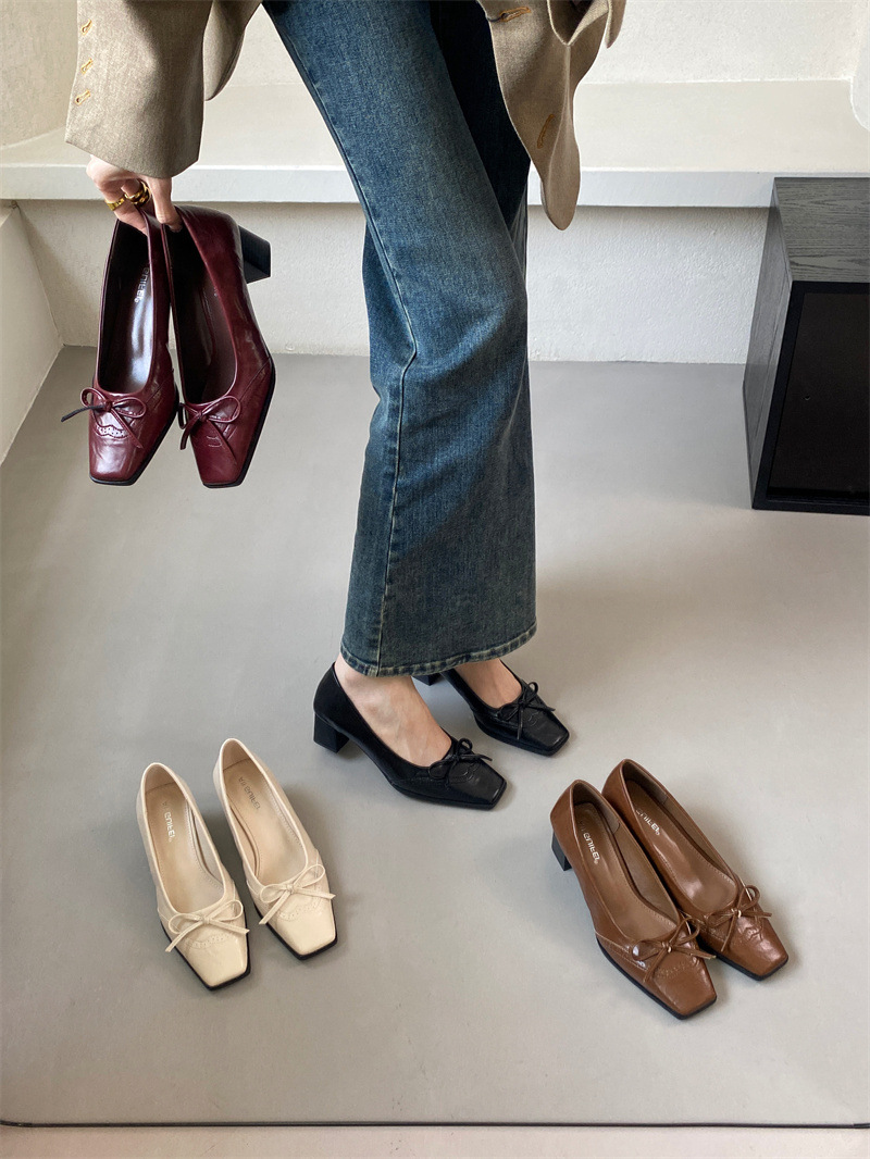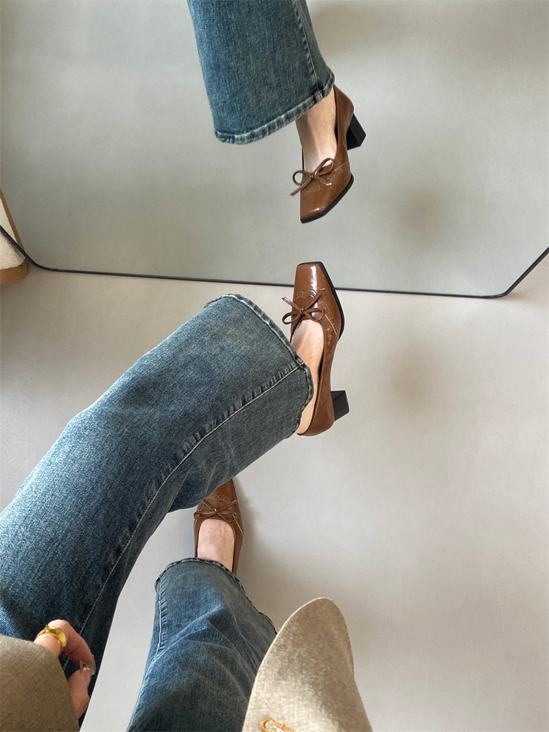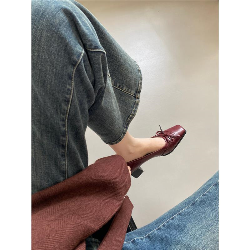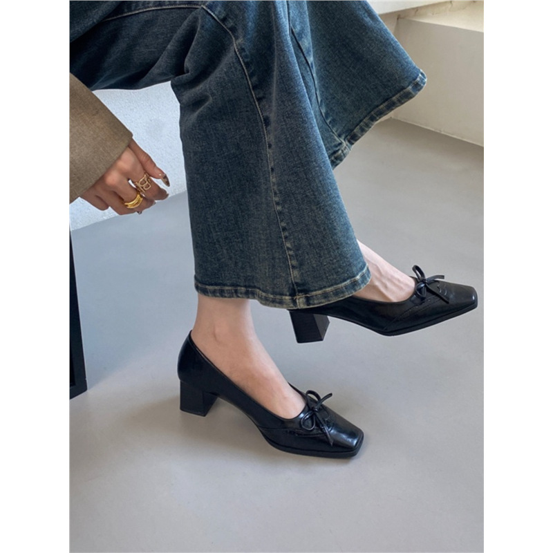 2025 예술적 레트로 활 스퀘어 발가락 가죽 신발 여성 통근 하이힐 싱글 레이어 신발 한 단계 두꺼운 패션 신발스토어 가기