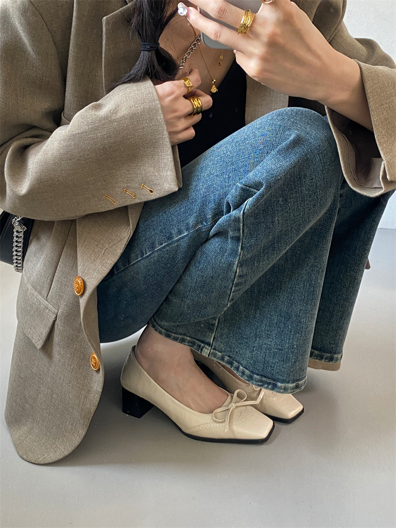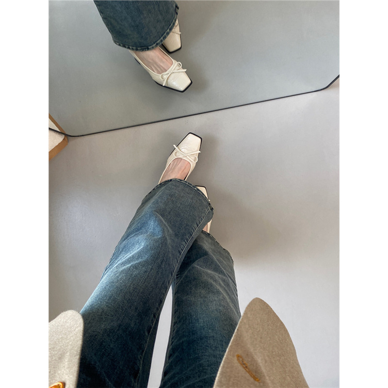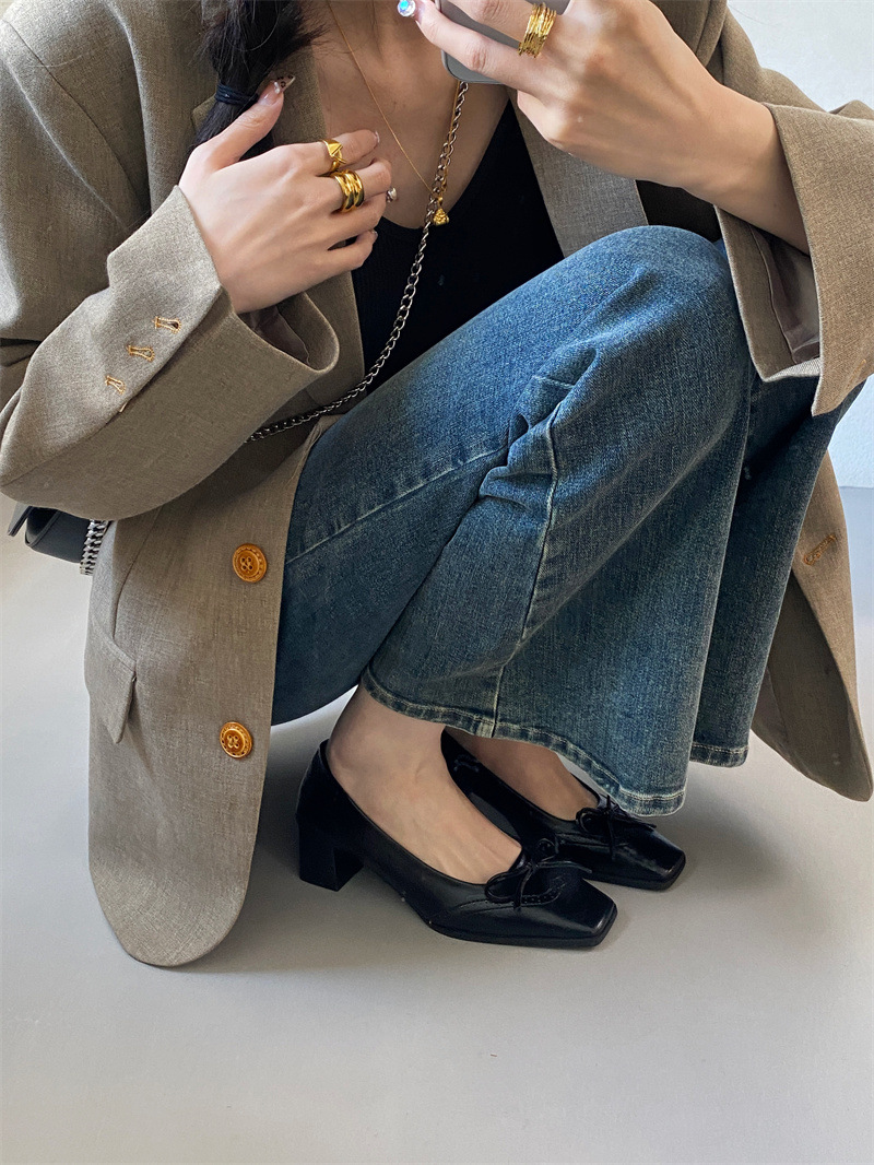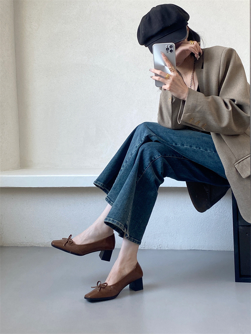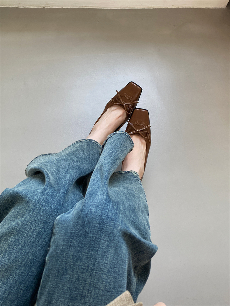 2025 예술적 레트로 활 스퀘어 발가락 가죽 신발 여성 통근 하이힐 싱글 레이어 신발 한 단계 두꺼운 패션 신발스토어 가기