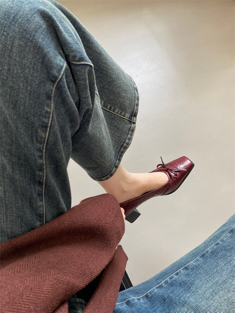 2025 예술적 레트로 활 스퀘어 발가락 가죽 신발 여성 통근 하이힐 싱글 레이어 신발 한 단계 두꺼운 패션 신발
