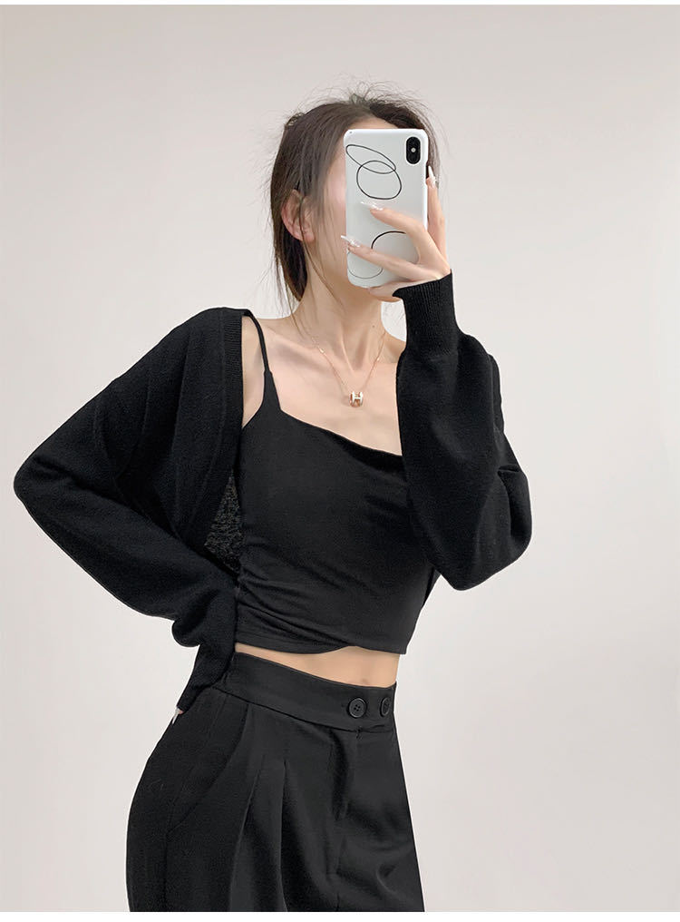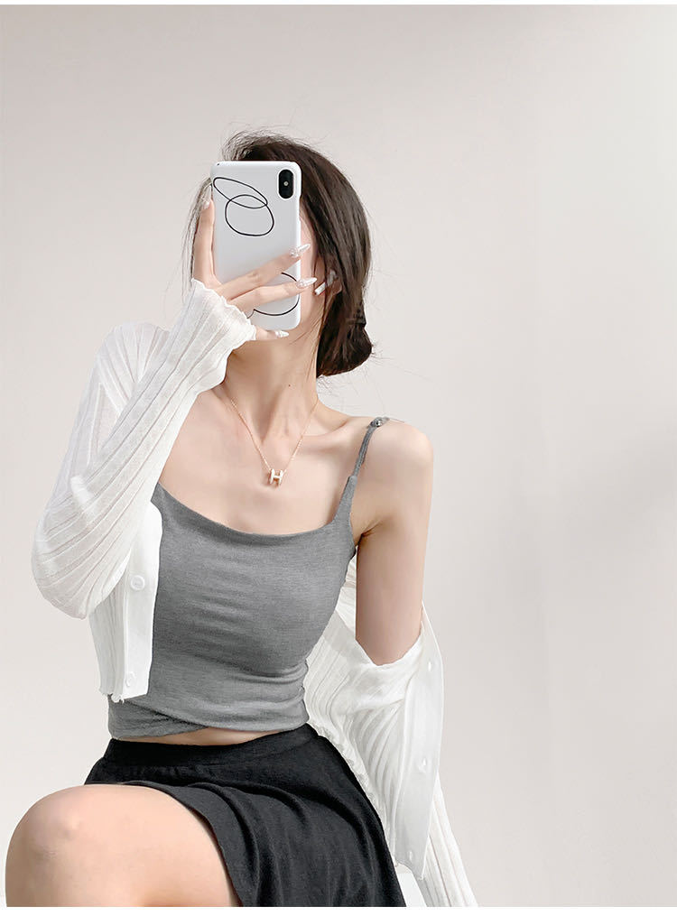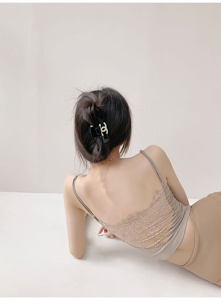 새로운 스타일 올 매치 가슴 패드 순수한 욕망 스퀘어 넥 내부 카미 솔 조끼 여성의 봄과 가을 레이스 아름다운 등 슬리밍 외복 탑