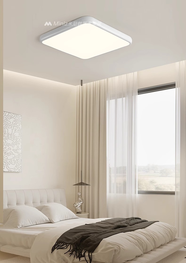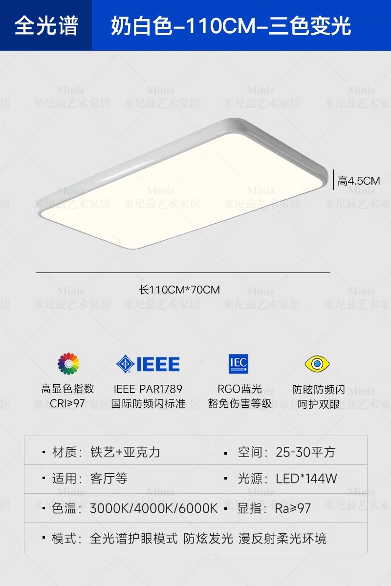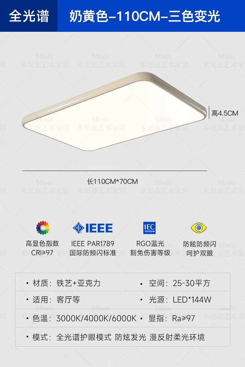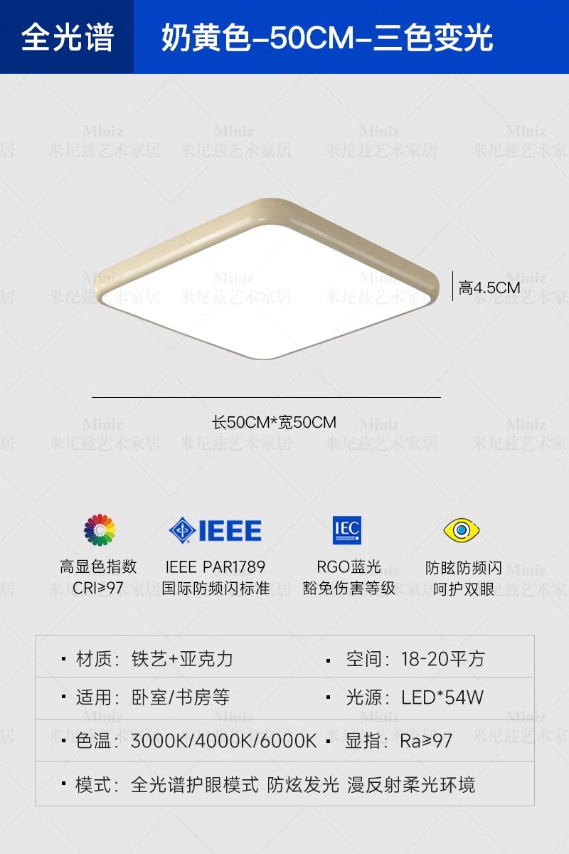 전체 스펙트럼 눈 보호 크림 바람 거실 천장 램프 복고풍 미니멀리스트 직사각형 조용한 바람 홀 메인 램프스토어 가기