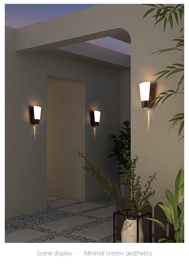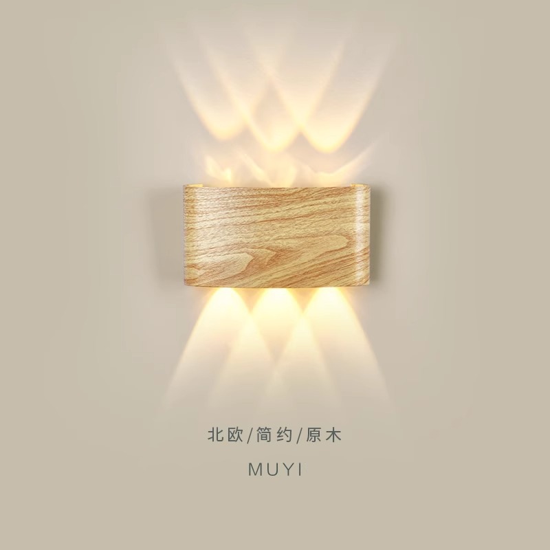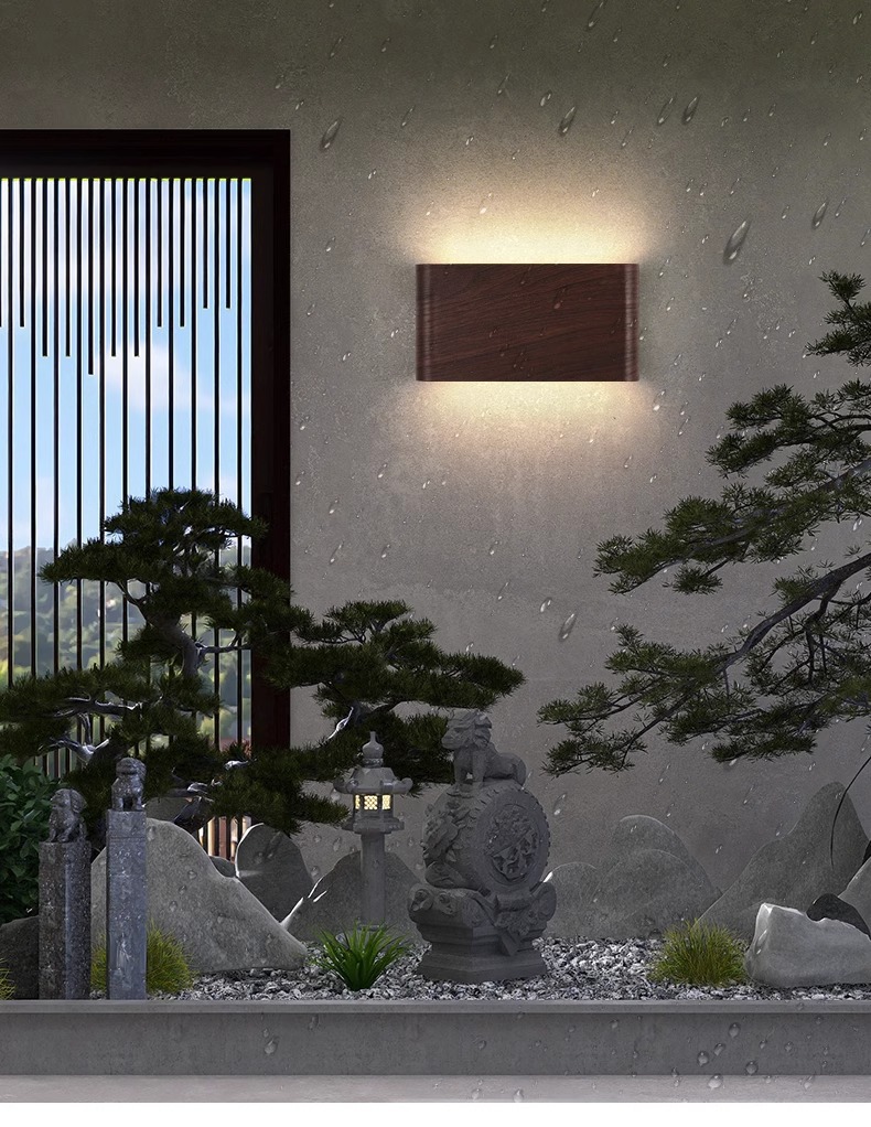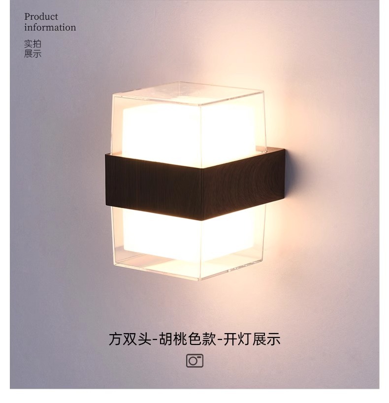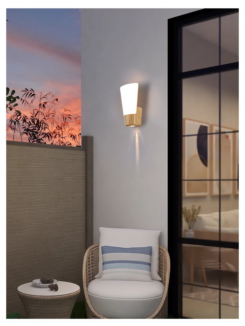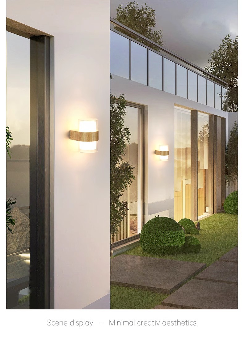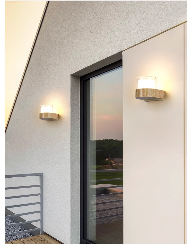 야외 벽 램프 IP54 방수 공원 광장 벽 램프 창조적 인 북유럽 나뭇결 색상 안뜰 외부 벽 장식 램프