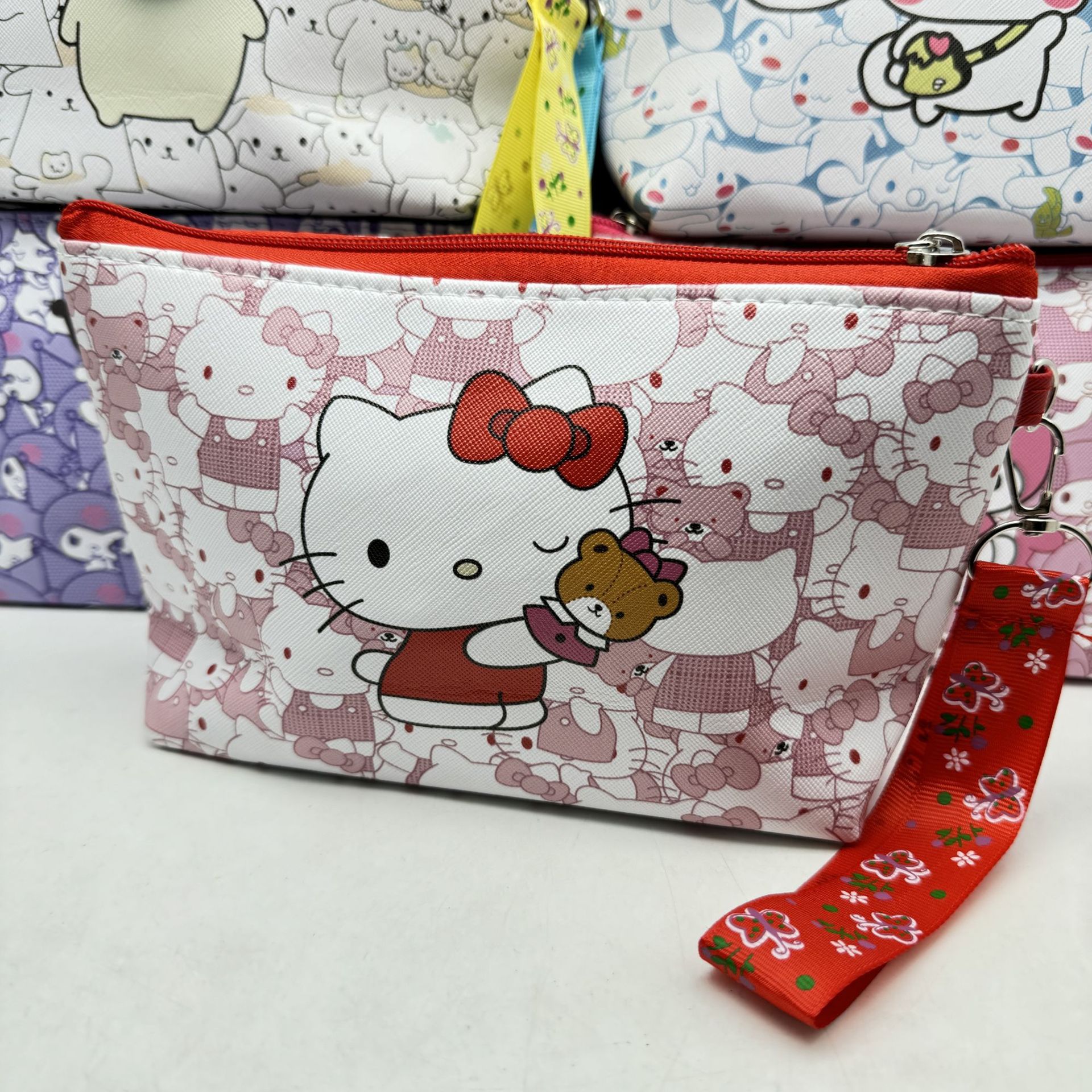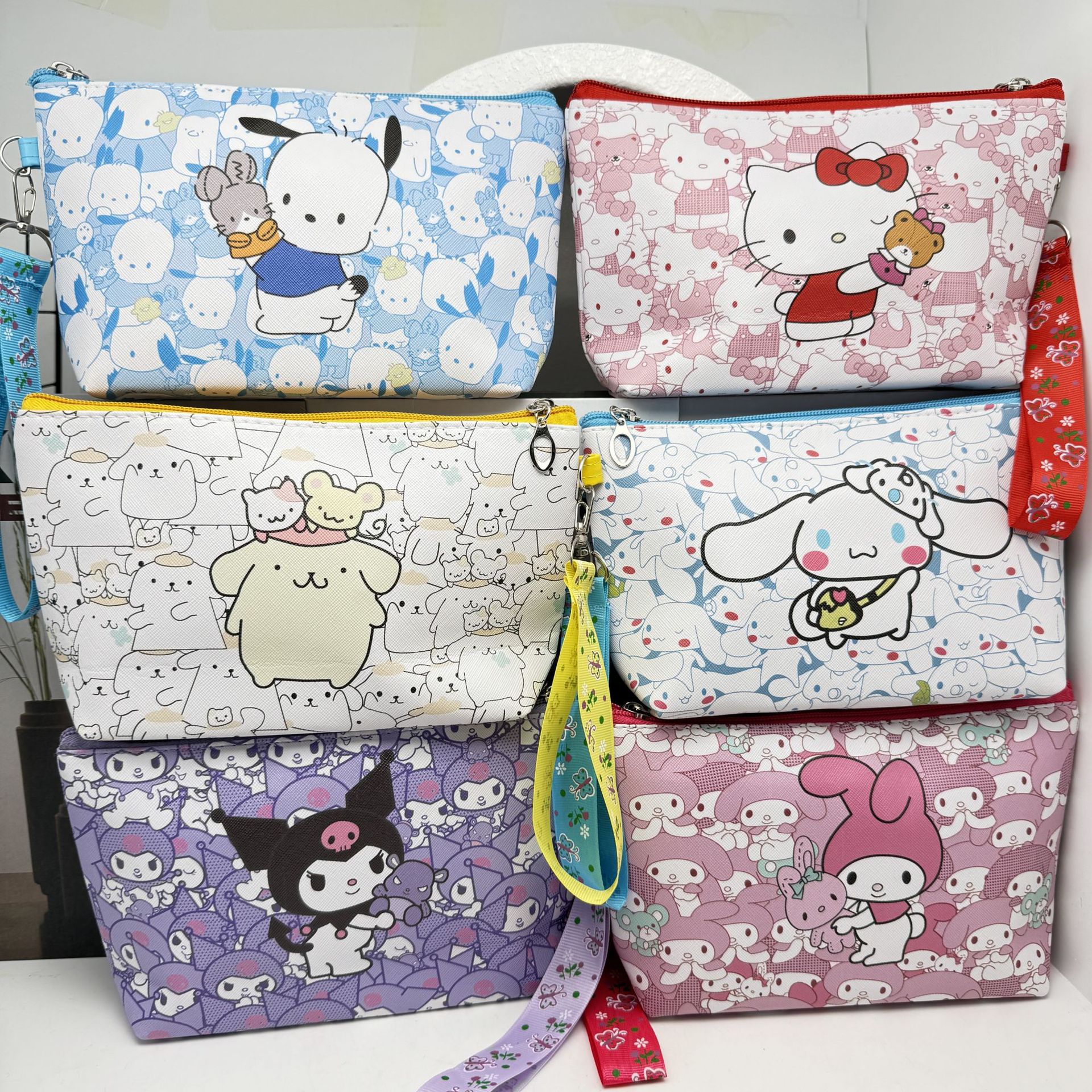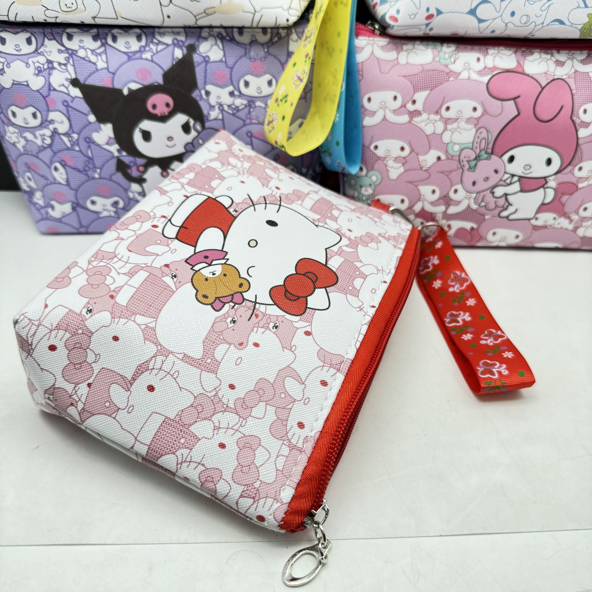 산리오 PU 화장품 가방 대용량 저장 가방 여행 휴대용 만화 화장실 가방 스킨 케어 보관 가방