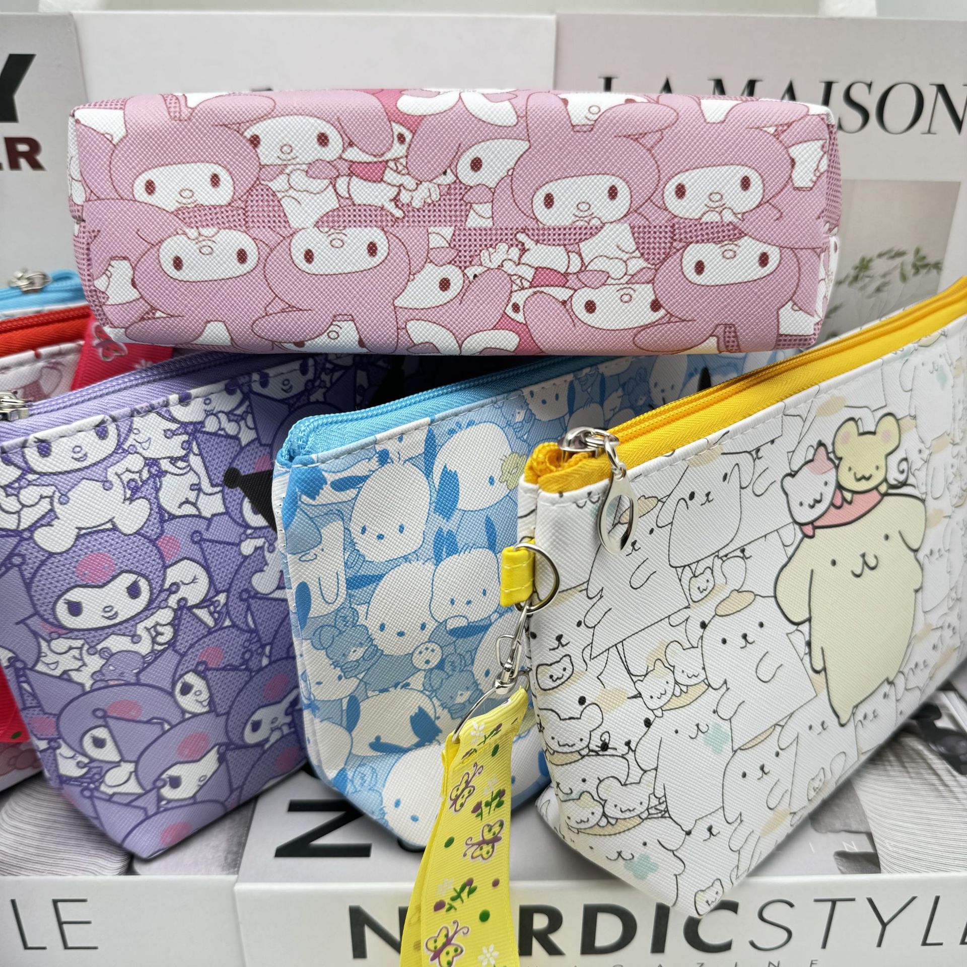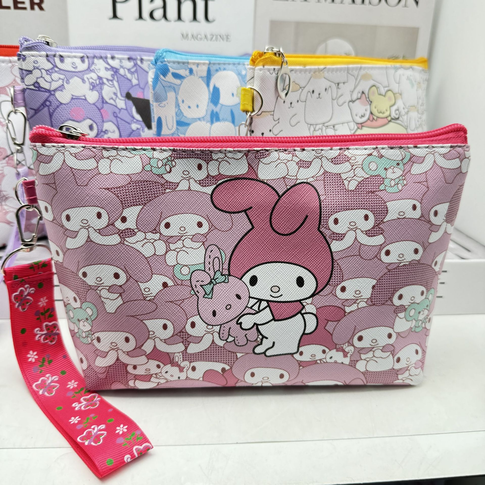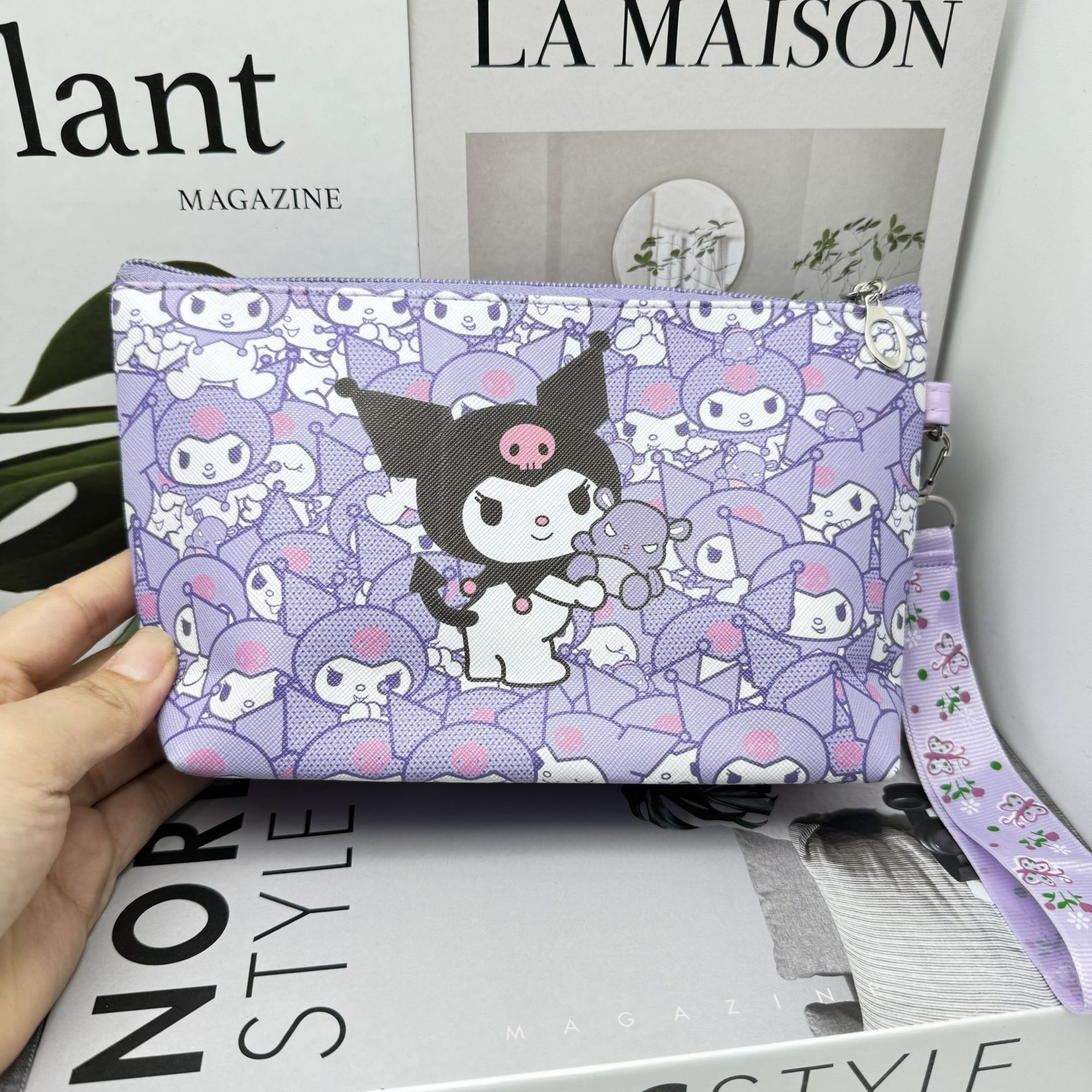 산리오 PU 화장품 가방 대용량 저장 가방 여행 휴대용 만화 화장실 가방 스킨 케어 보관 가방