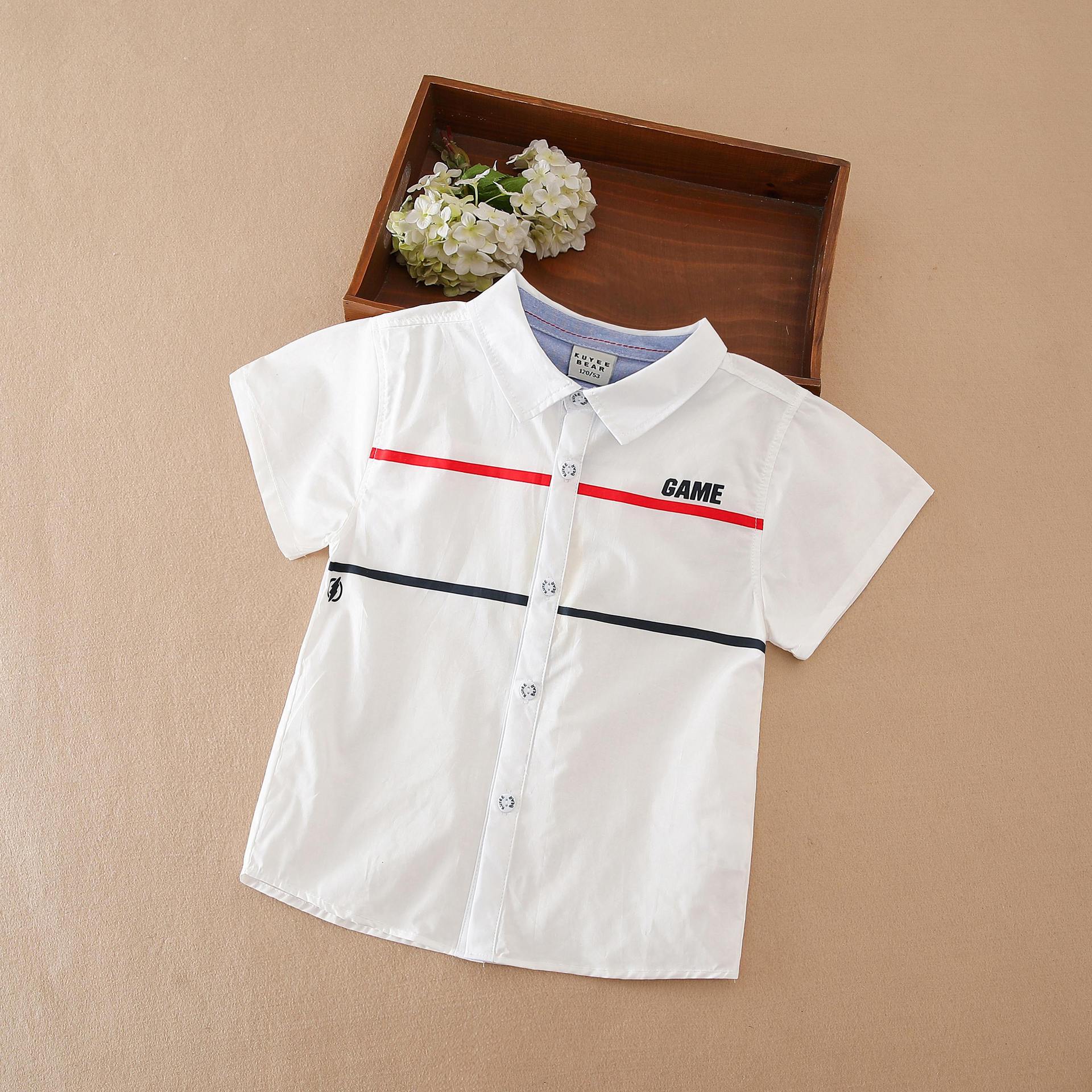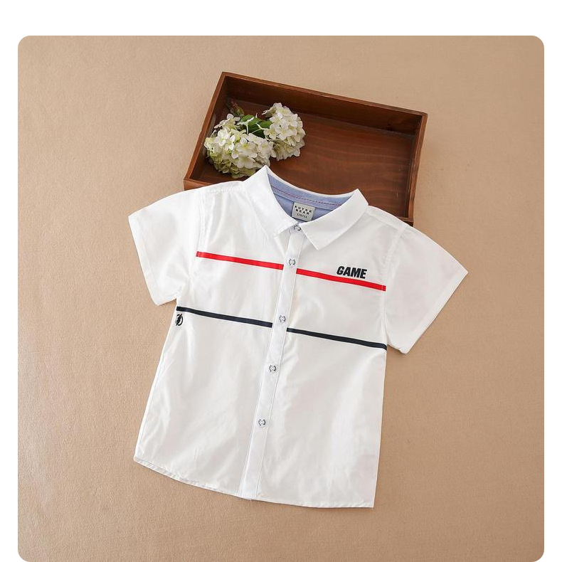 소년 셔츠 2025 여름 캐주얼 대학 스타일 옷깃 짧은 소매 셔츠 소년의 스트라이프 탑 중 및 대형 어린이 학교 유니폼스토어 가기