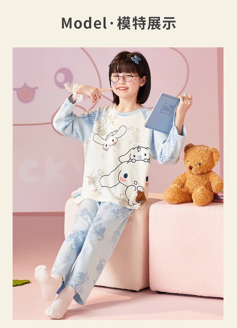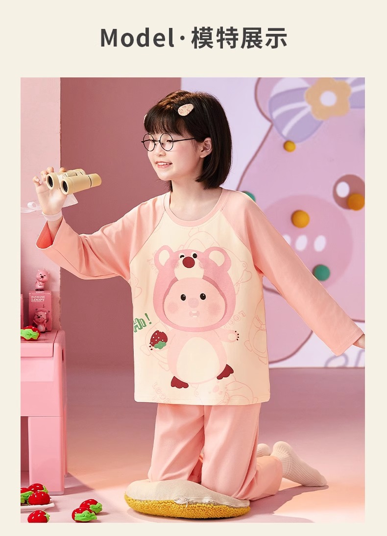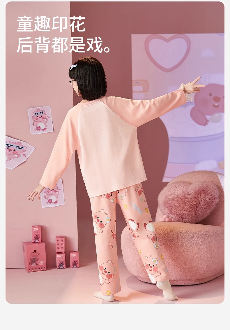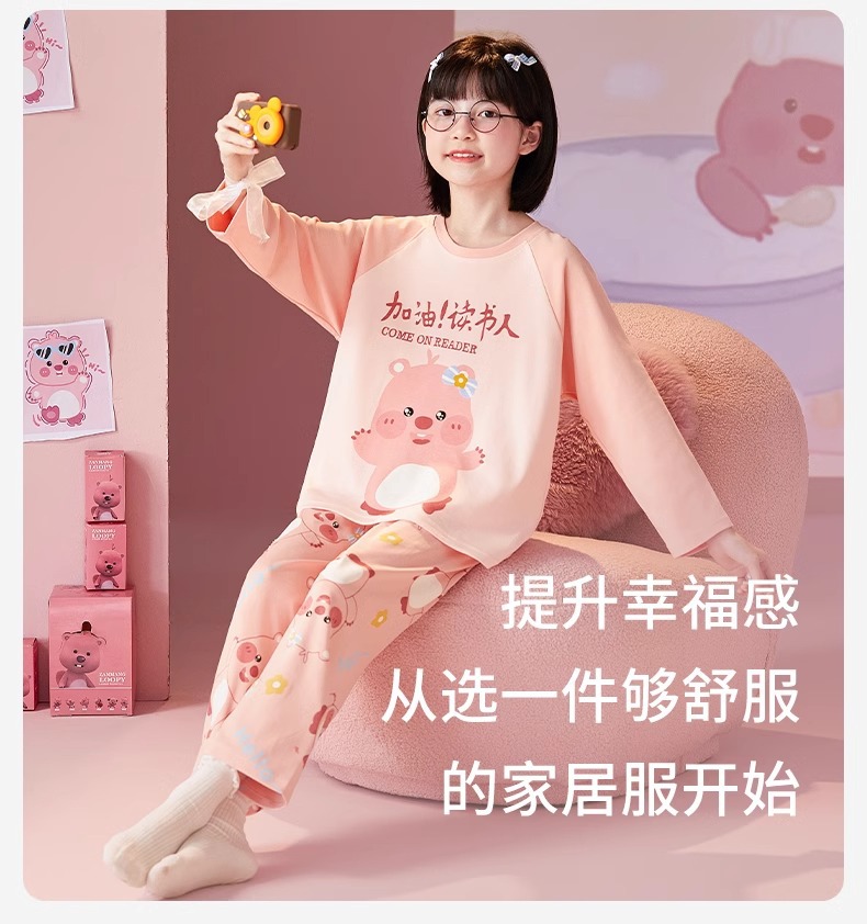 여아 잠옷 긴 소매 순수 코튼 봄과 가을 새로운 스타일 달콤한 만화 루피 중학교 학생 홈 옷 세트스토어 가기