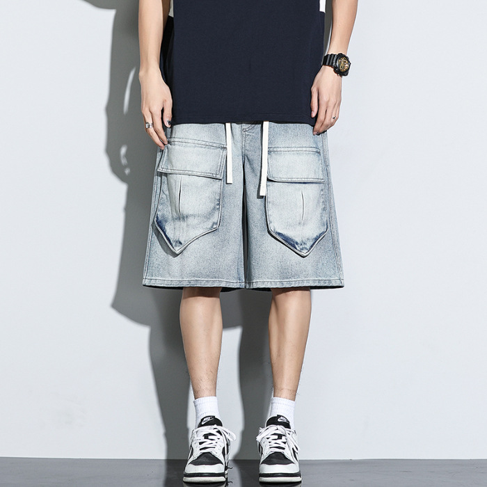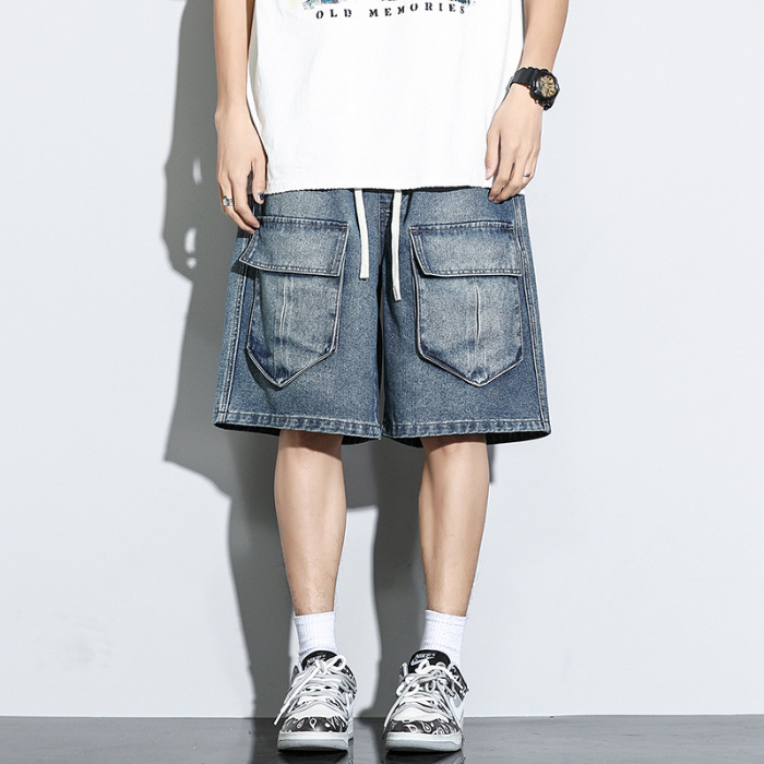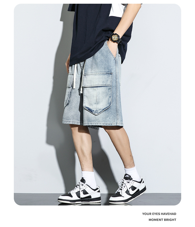 2025 봄 여름 신상 루즈 스트레이트 홍콩 스타일 청바지 남성 기본 다용도 멀티 컬러 신축성 있는 워싱 미드팬츠