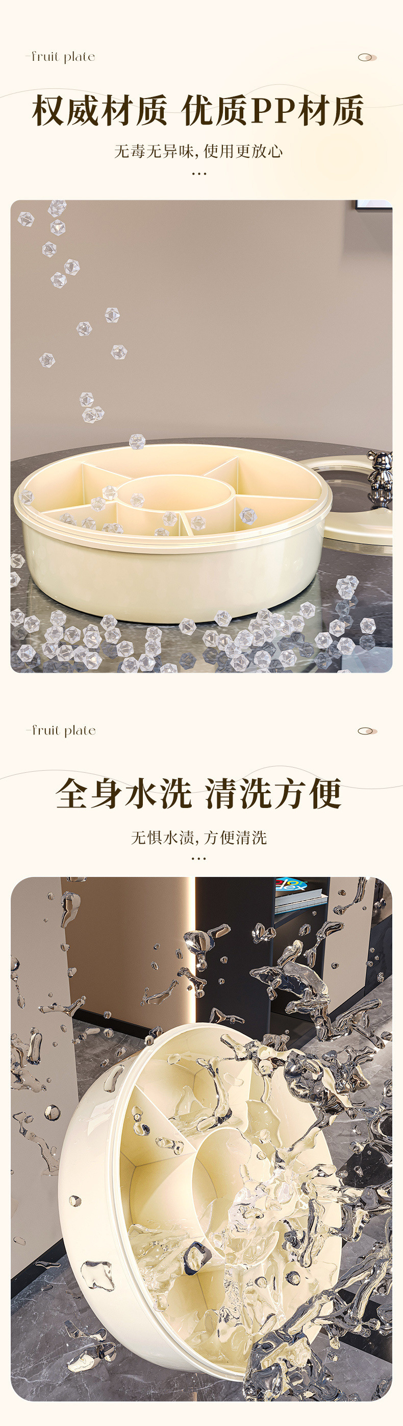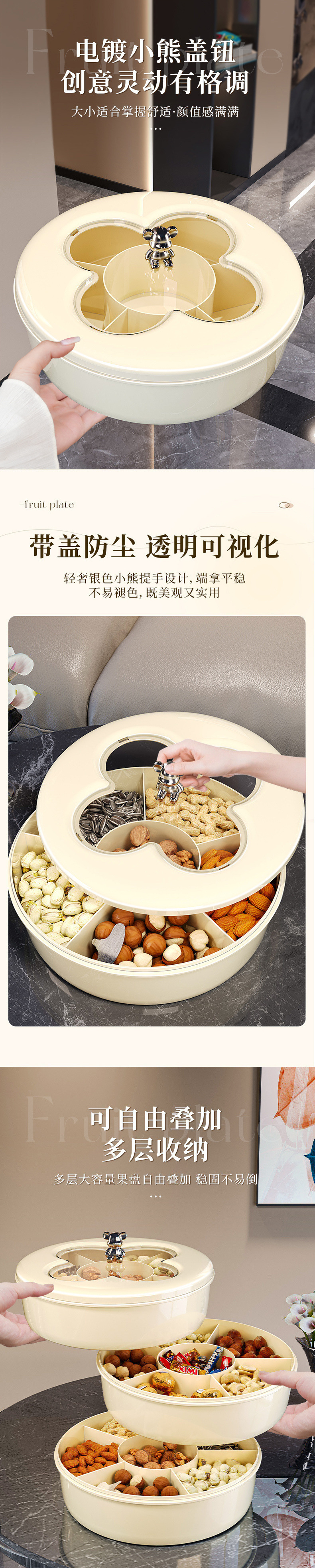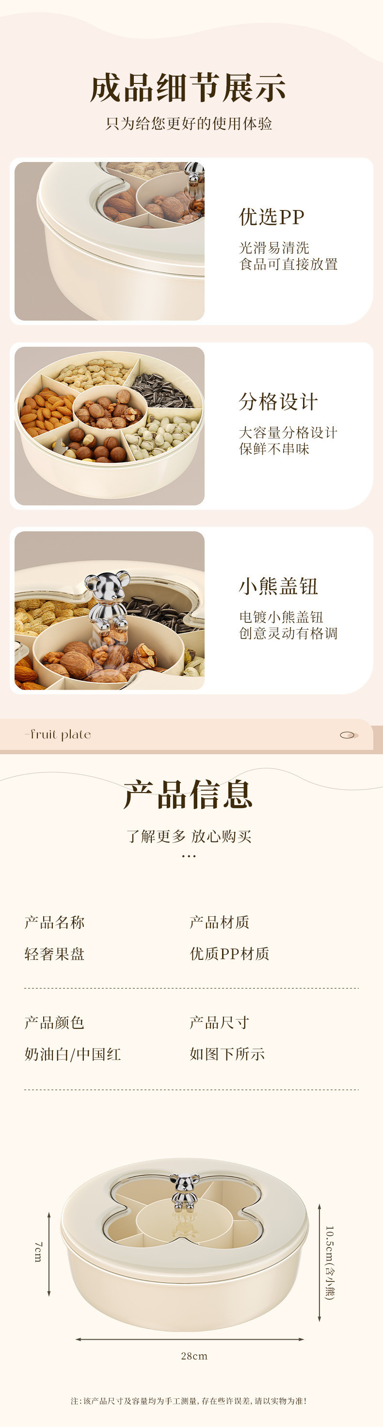 • 라이트 럭셔리 크림 화이트 [둥근 스타일] 밀봉된 말린 과일 접시 - 손잡이 없음 [칸막이 수납/방진 커버 포함] 1팩